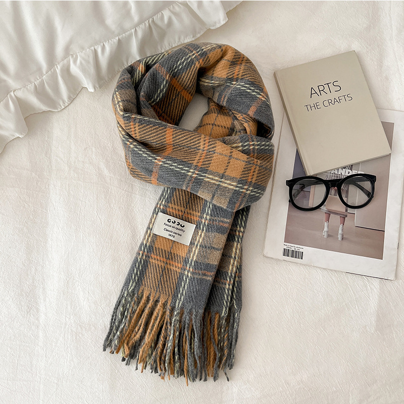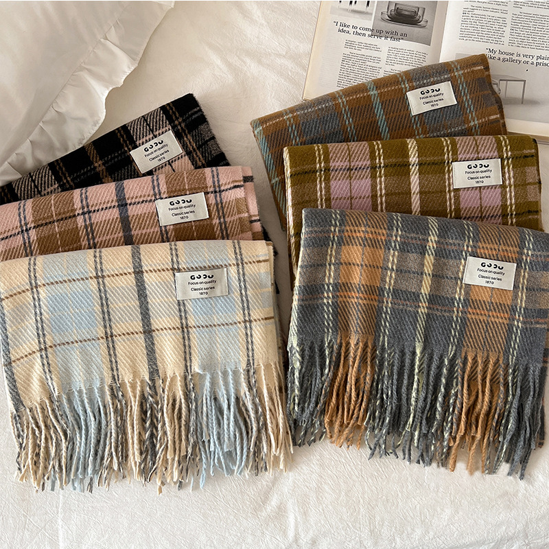 새로운 스카프 여성의 가을 겨울 두꺼운 따뜻한 모방 양 격자 무늬 목도리 학생과 커플을위한 한국 패션 영국 컬러 파인 격자 무늬스토어 가기