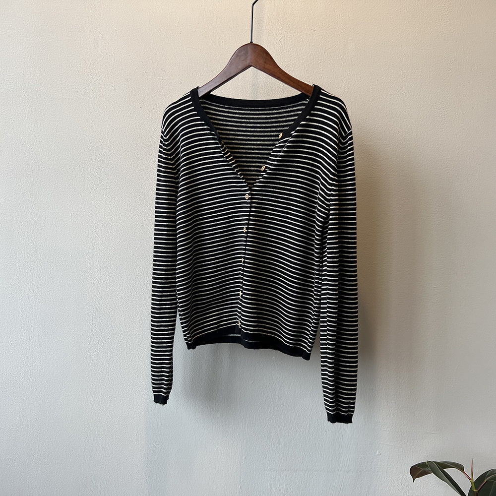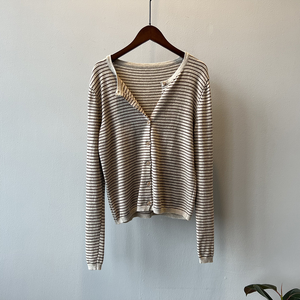 Yanshuang 한국 스타일 대비 스트라이프 니트 카디건 여성 가을 신작 라운드 넥 다용도 얇은 스웨터 재킷 P168