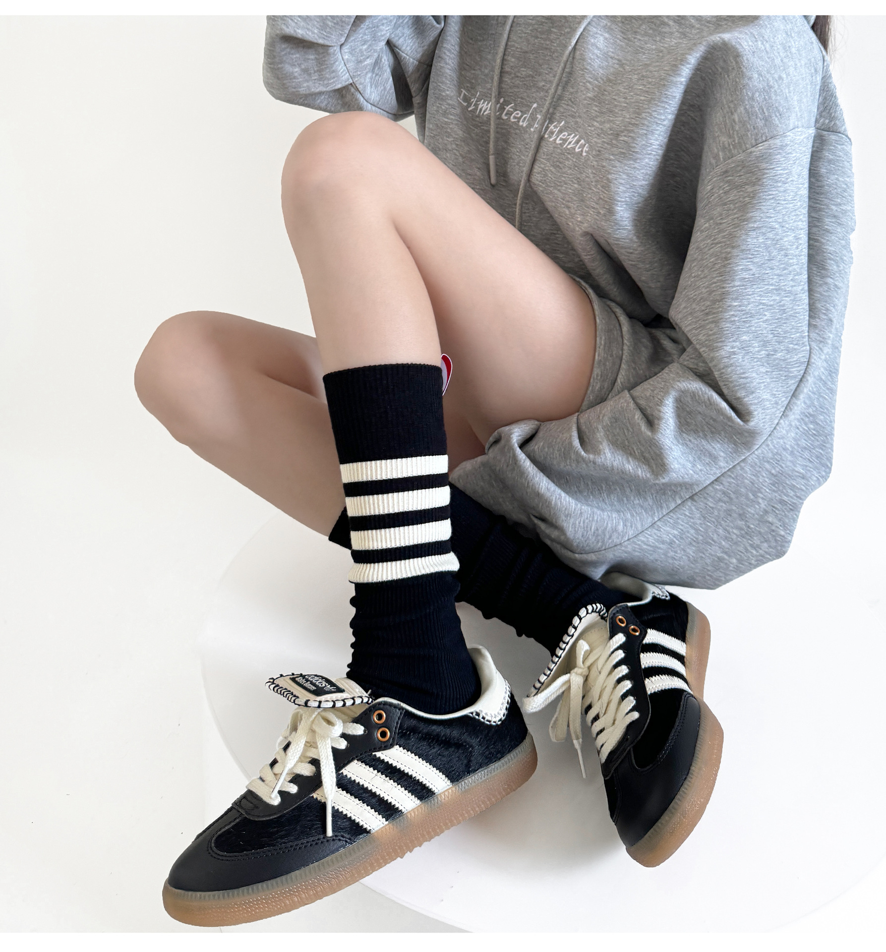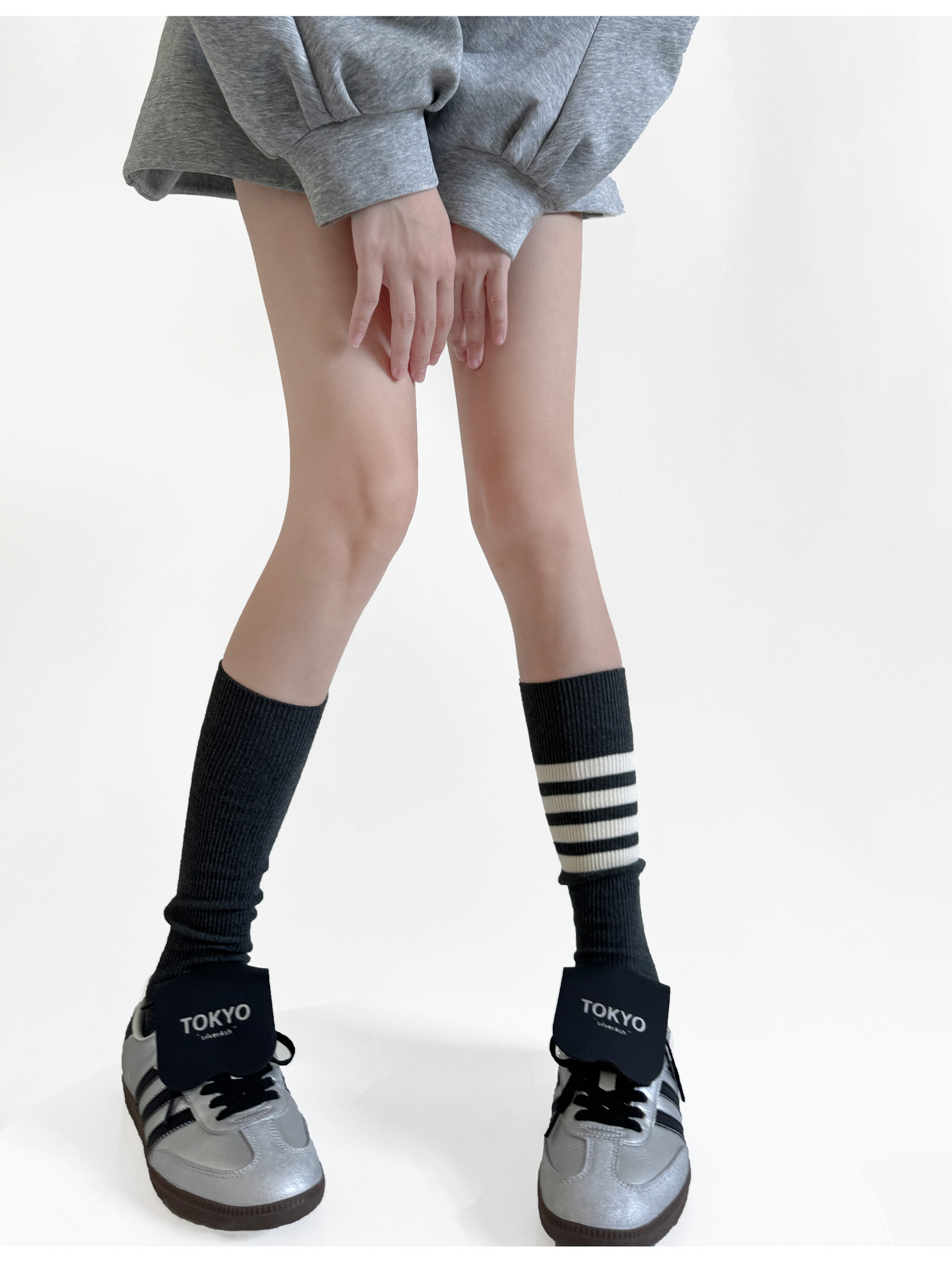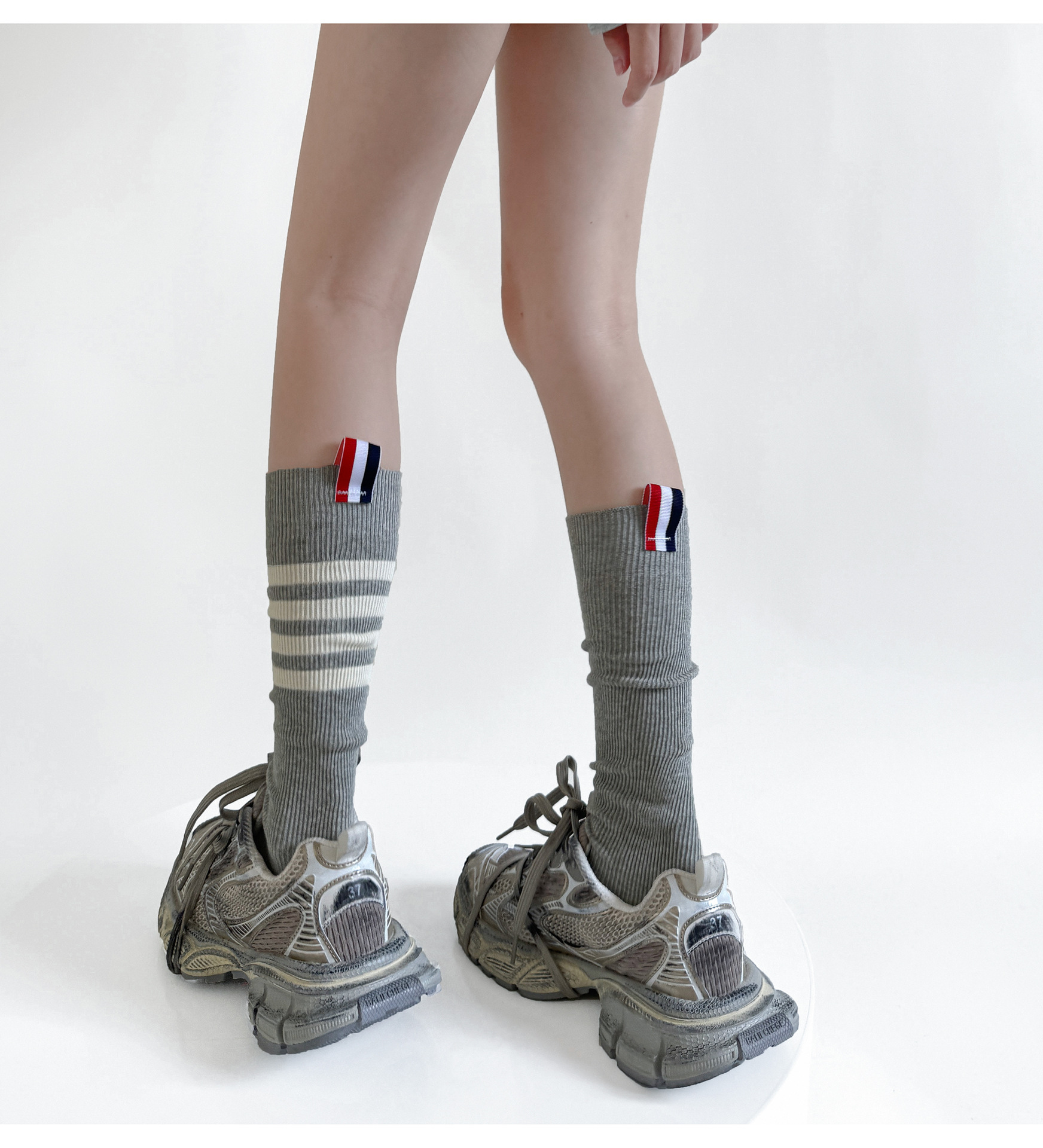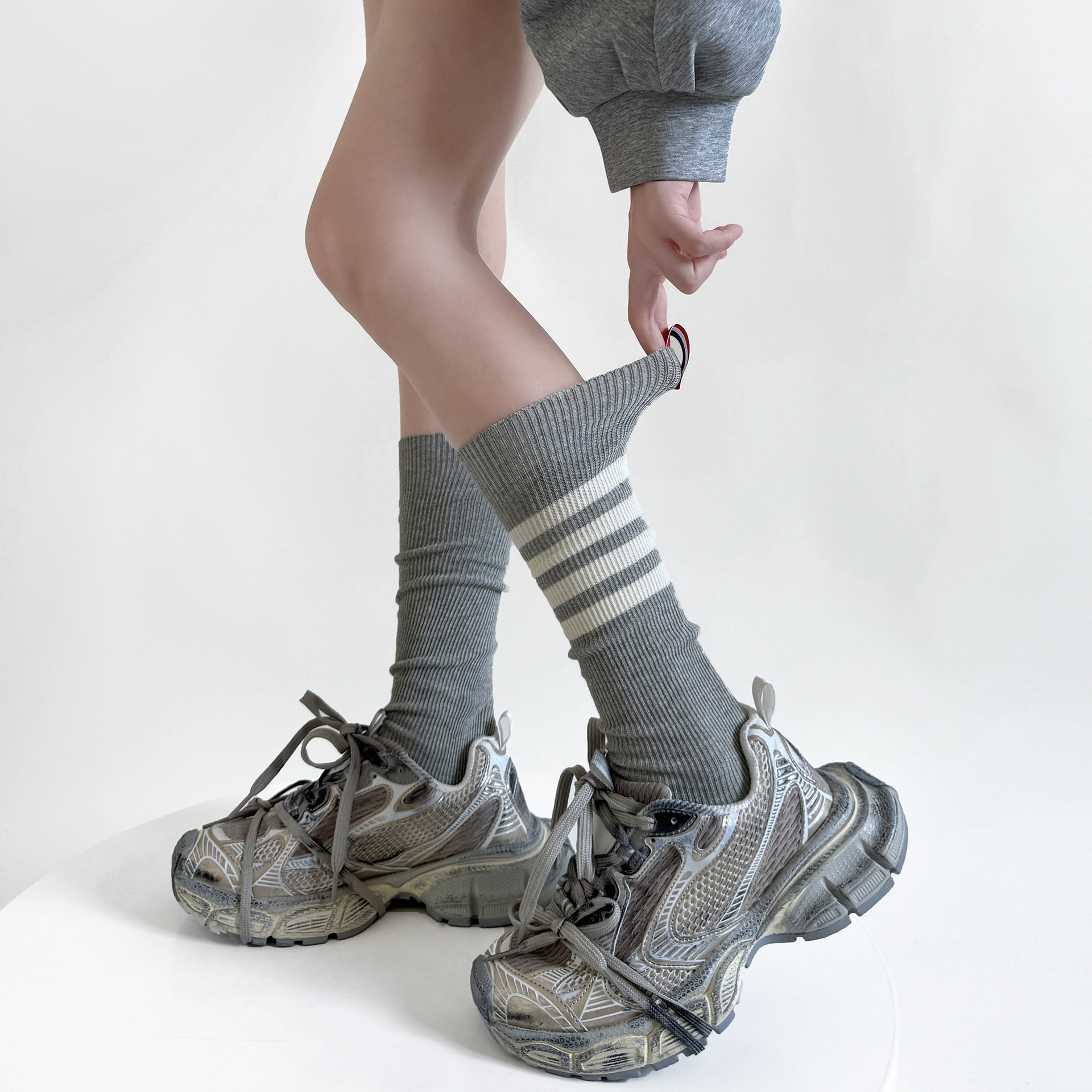 봄과 가을 그레이 4 바 줄무늬 얕은 양말 TB 얇은 스트립 스택 양말 여자 올매치 캐주얼 JK 일본식 코튼 양말스토어 가기
