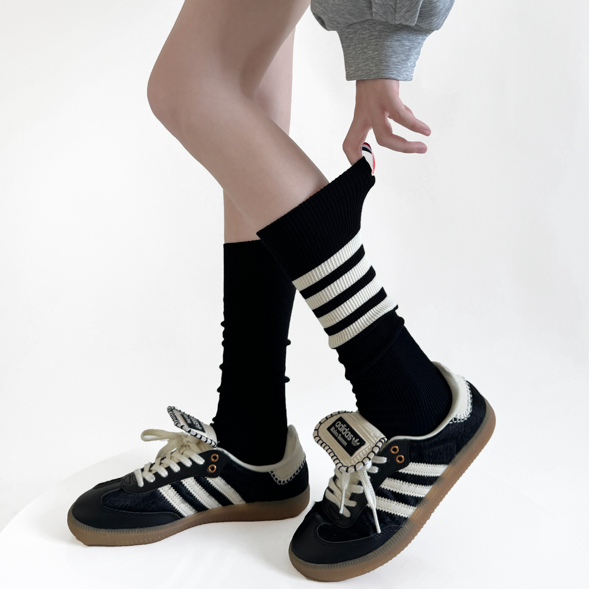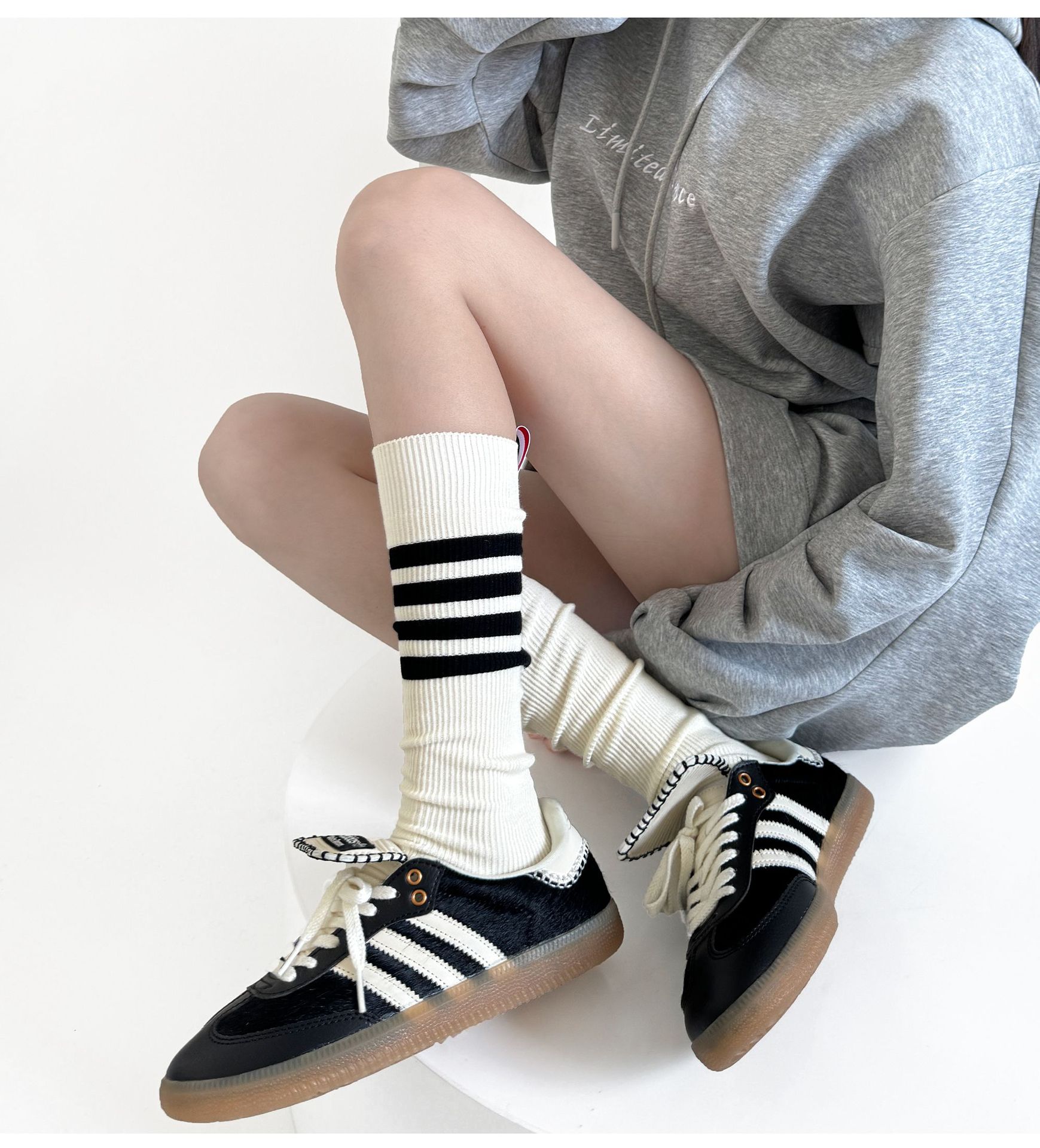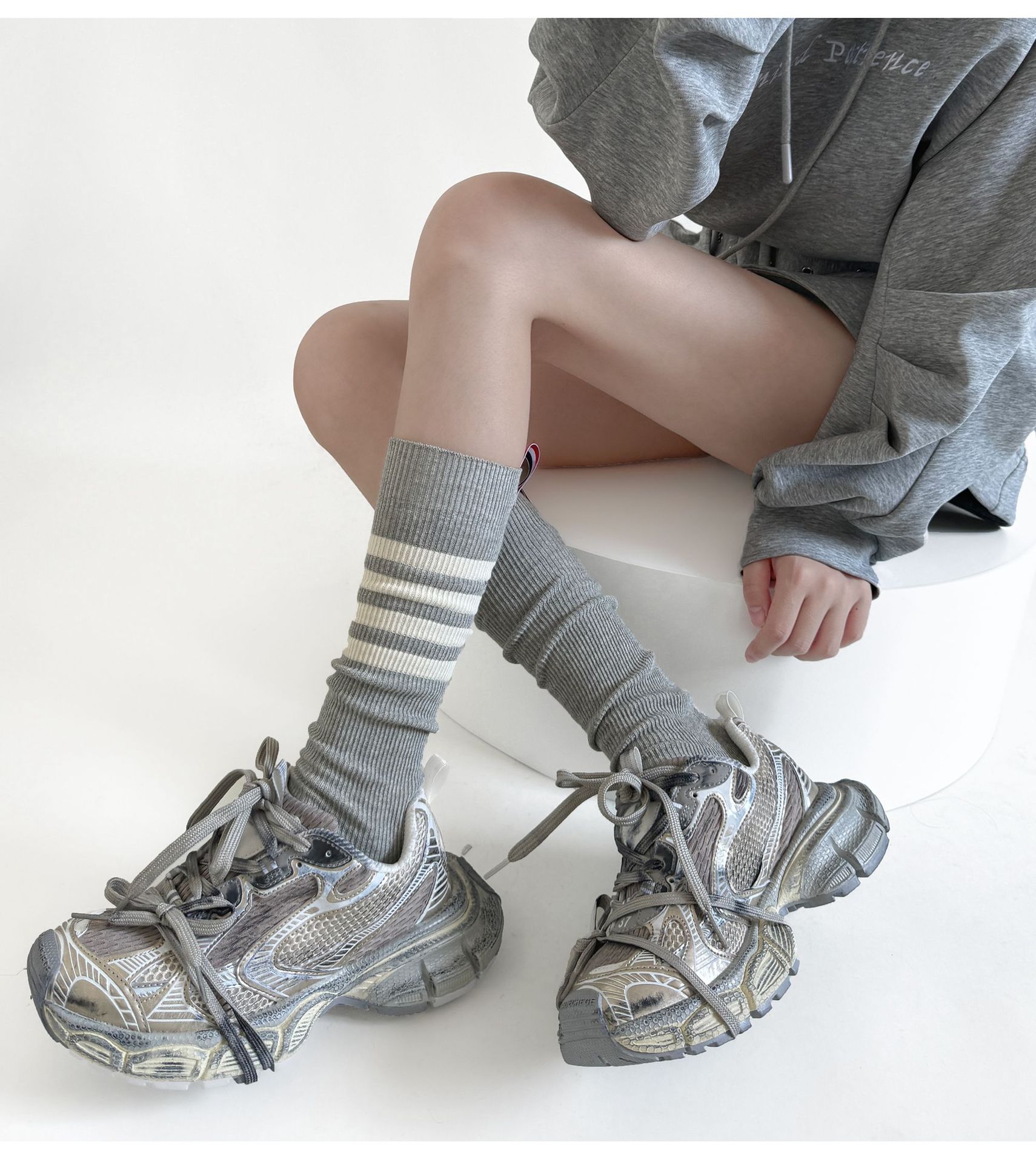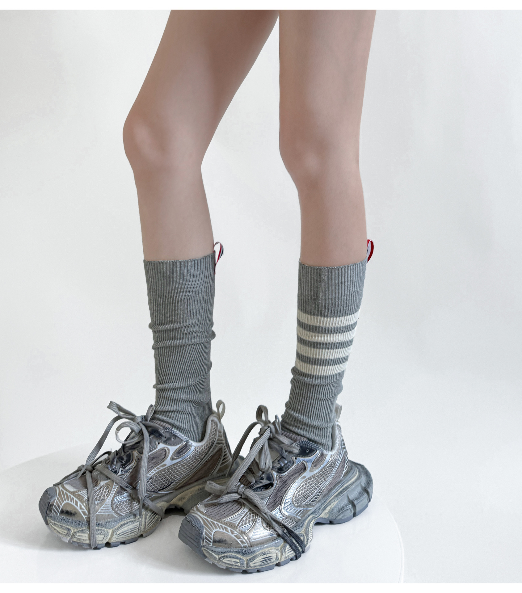 봄과 가을 그레이 4 바 줄무늬 얕은 양말 TB 얇은 스트립 스택 양말 여자 올매치 캐주얼 JK 일본식 코튼 양말