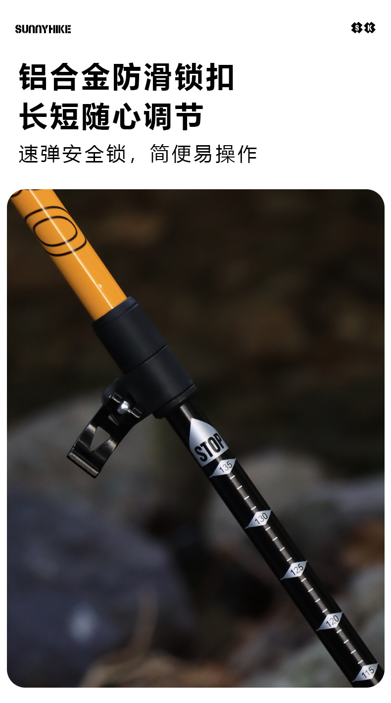 야외 알루미늄 합금 외부 잠금 텔레스코픽 클라이밍 스틱 울트라 라이트 하이킹 탄소 알루미늄 탄소 섬유 클라이빙 스틱 미끄럼 방지 클라이밍 스틱