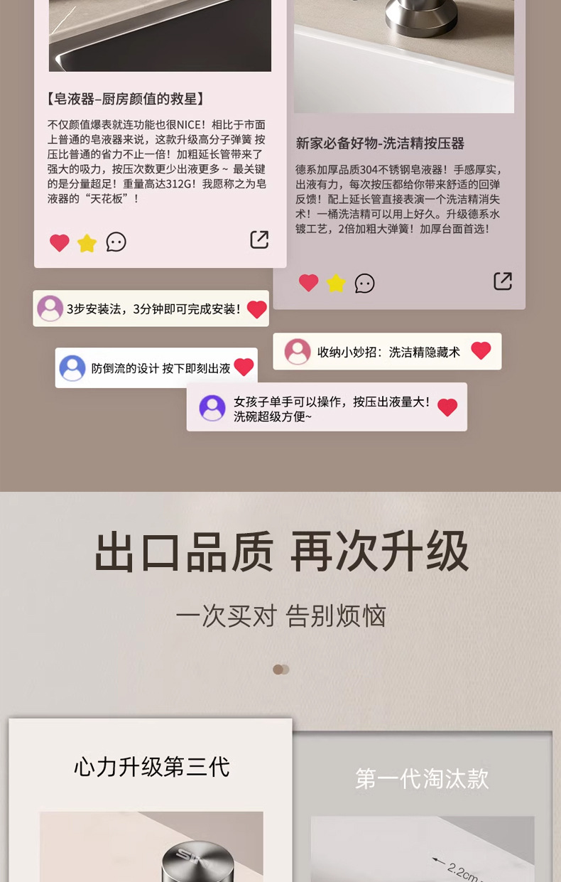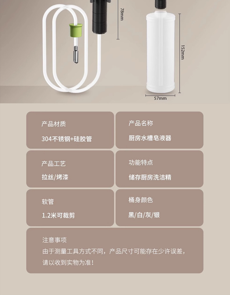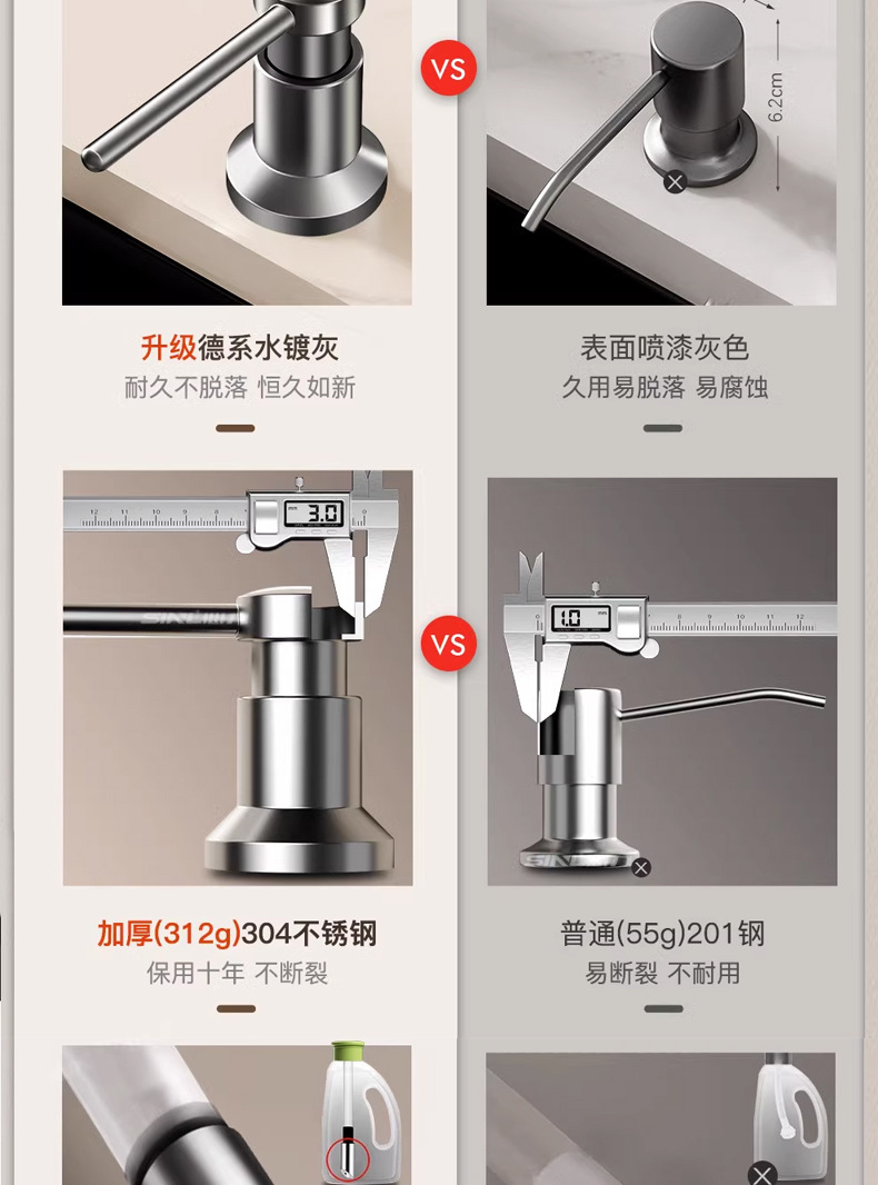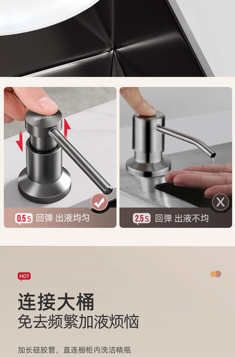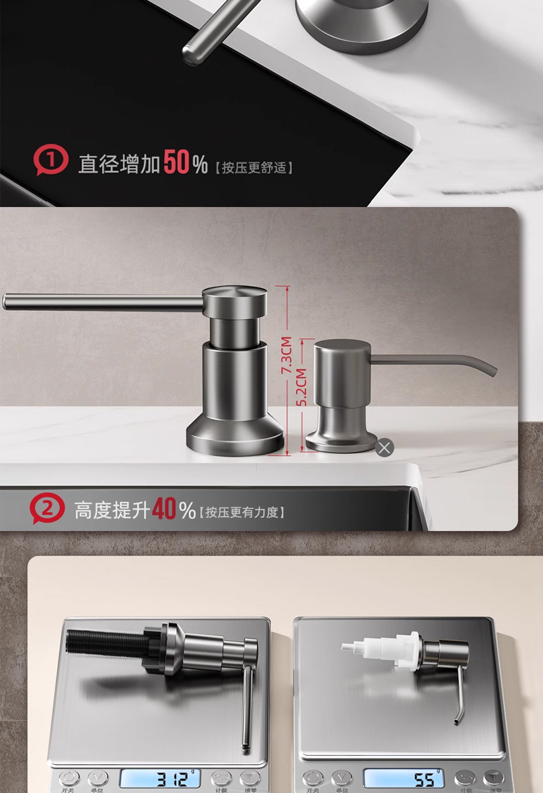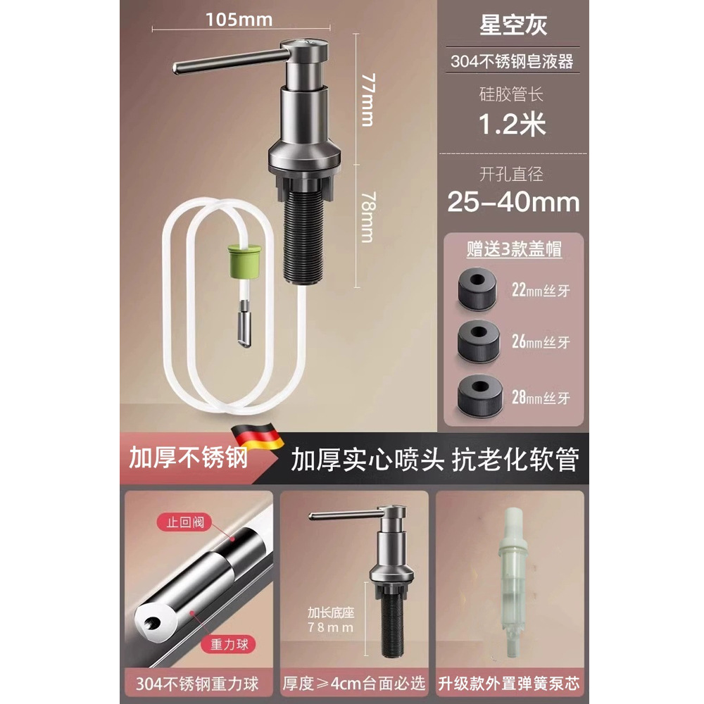 家用商用加厚304不锈钢按压皂液器 洗碗池水槽洗洁精延长器给皂器