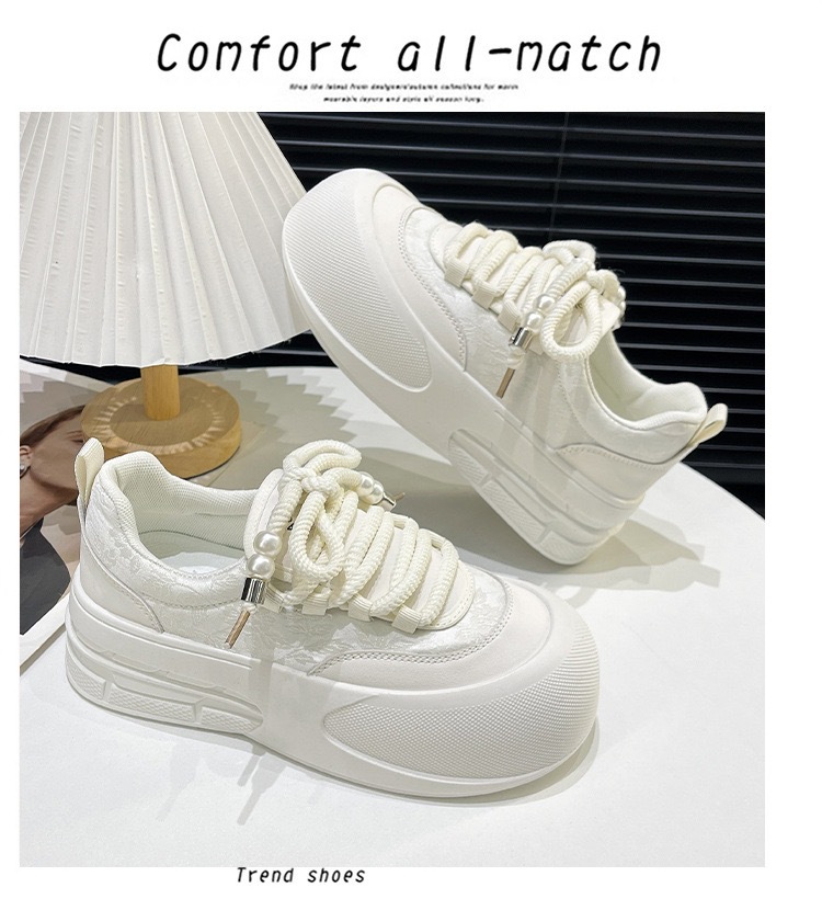 전국 패션 복고풍 큰 머리 빵 신발 여성의 2024 봄 새로운 두꺼운 밑창 색상 매칭 캐주얼 학생 경량 흰색 신발스토어 가기