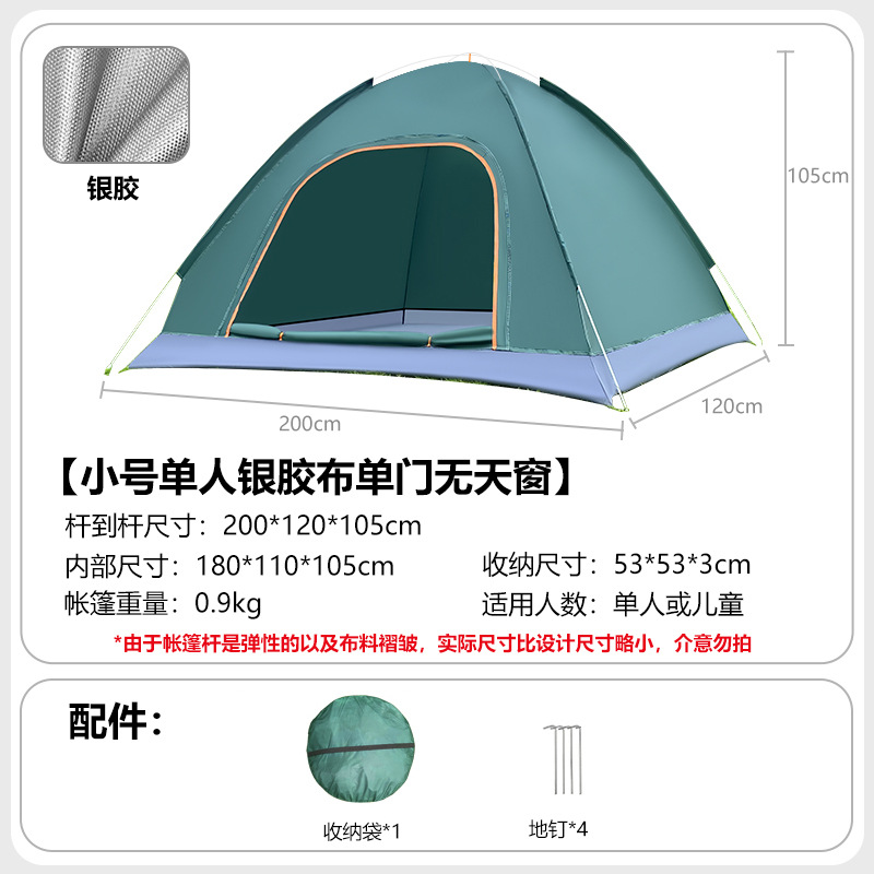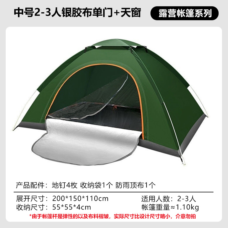 • 업그레이드된 중형 2-3인용 은박 테이프 + 양문형 도어 + 양쪽 측면 창문 + 천창 [다크 그린]