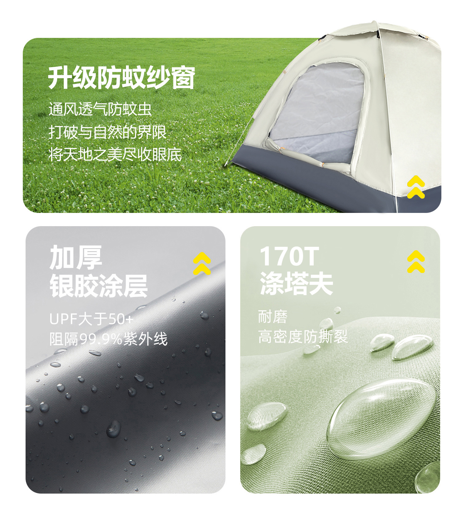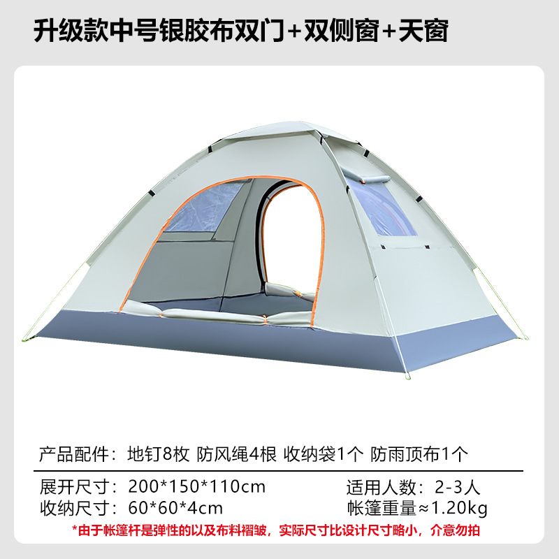 • 업그레이드된 중형 2-3인용 은박 테이프 + 양문형 + 양측면 창문 + 천창 [미색]