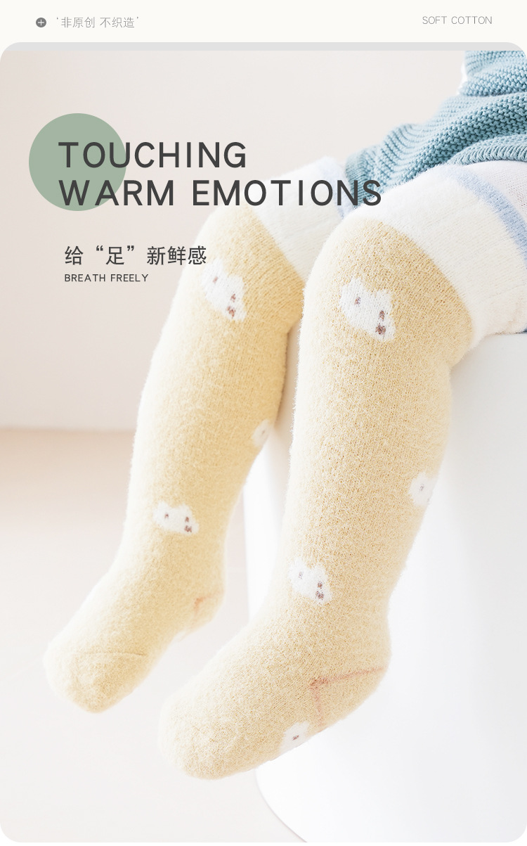 가을 겨울 아기 롱삭스, 테리 두꺼운 만화 캐릭터 아기 미끄럼 방지 점착 바닥 양말, 무릎 위 유아용 양말스토어 가기