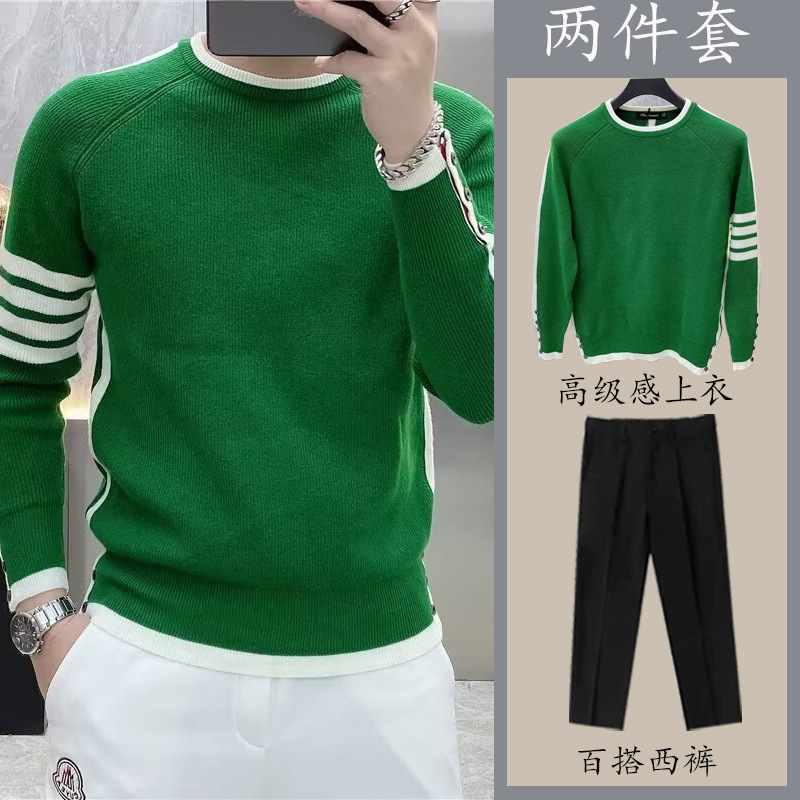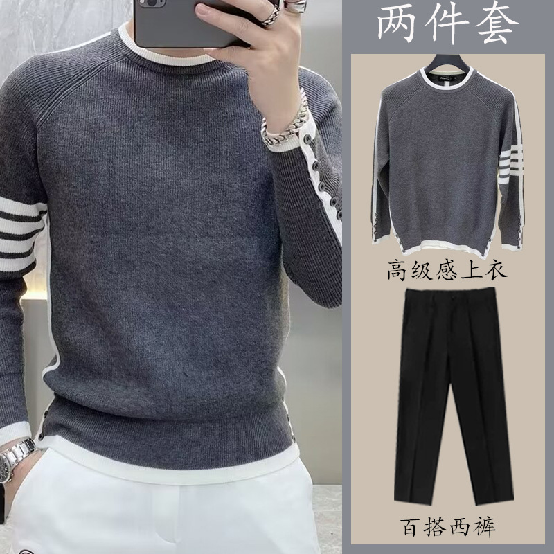 겨울 라운드 넥 스웨터 남자 트렌디 한 Ins 니트 스웨터 한국 스타일 느슨한 캐주얼 두꺼운 컬러 매칭 스웨터 세트 올 매치