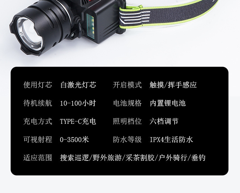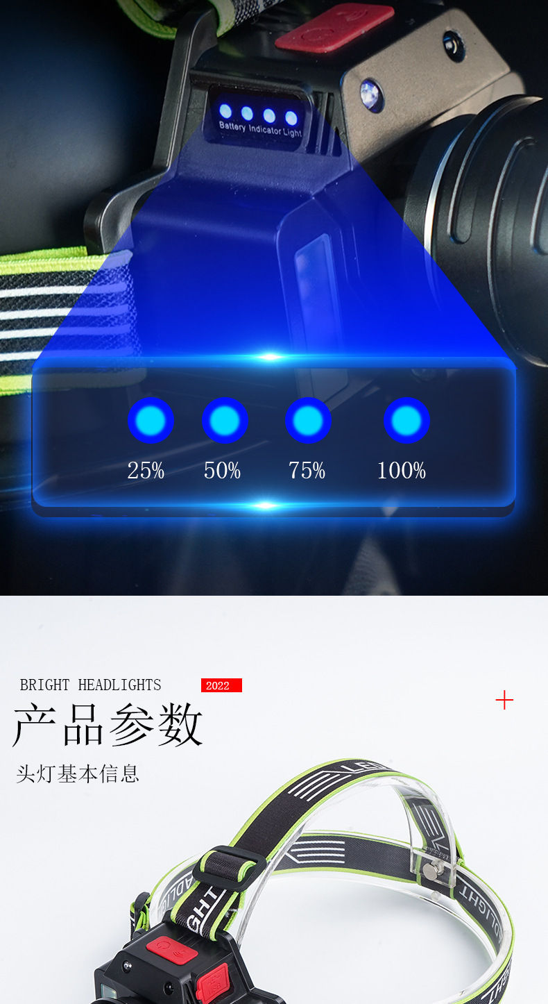 국경 주도 강한 빛 전조등 내장 배터리 야외 슈퍼 밝은 머리 장착 야간 조명 USB 충전식 비상 충전 보물