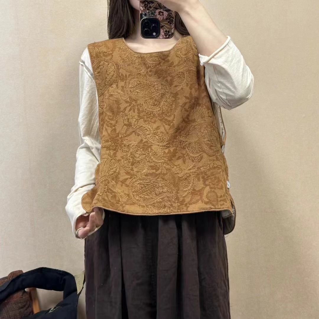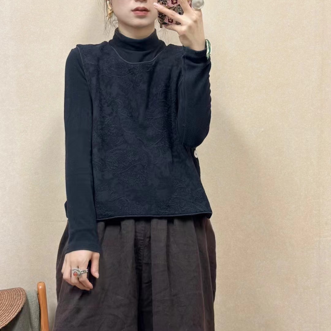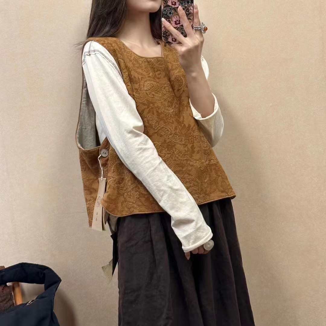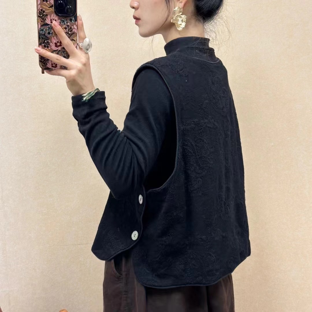 가을 2024 Guofeng 아트 느슨한 중공업 자수 높은 세트 리넨 솔리드 컬러 올 매치 레트로 스타일 틈새 말 클립 여성스토어 가기