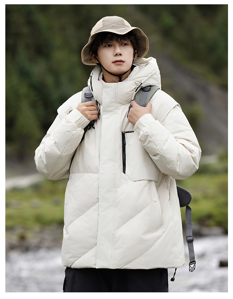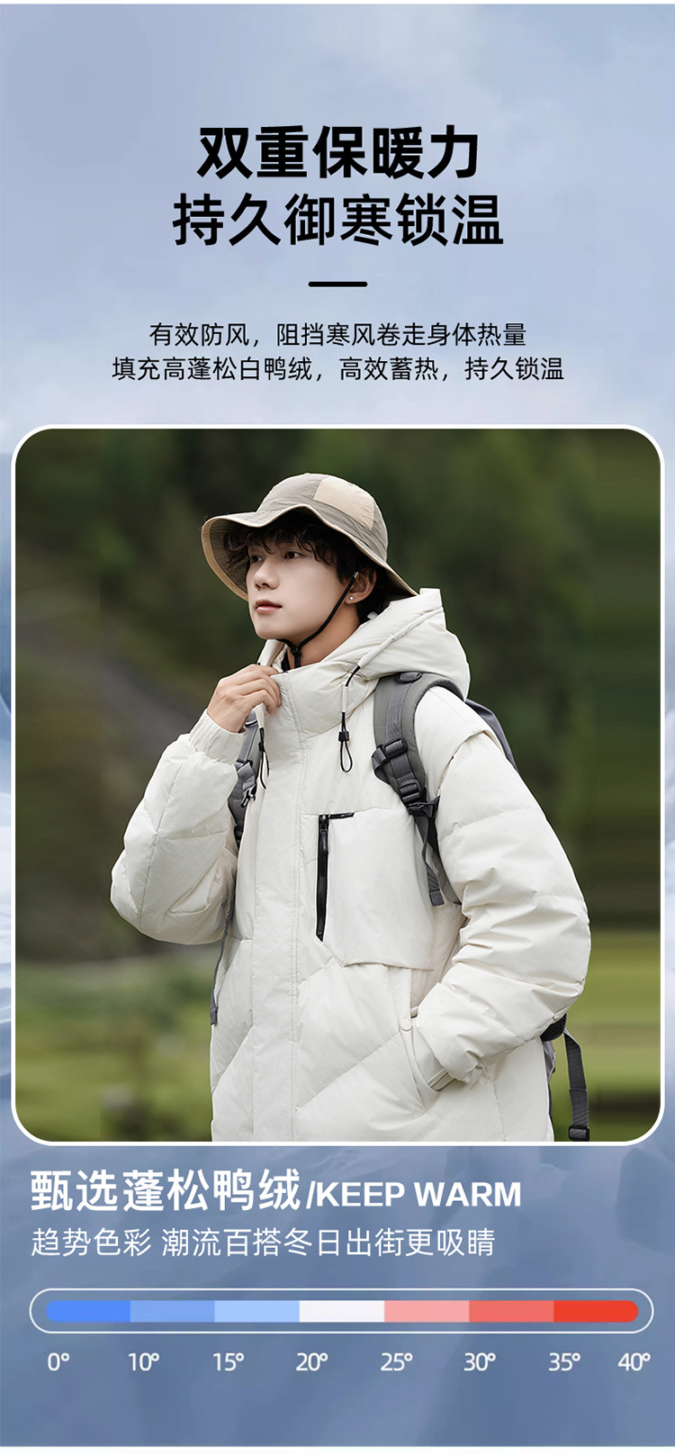 90 벨벳 하이 퀄리티 다운 재킷 겨울 새로운 화이트 덕 다운 짧은 자켓 남성 분리형 슬리브 조끼 등산 세트스토어 가기