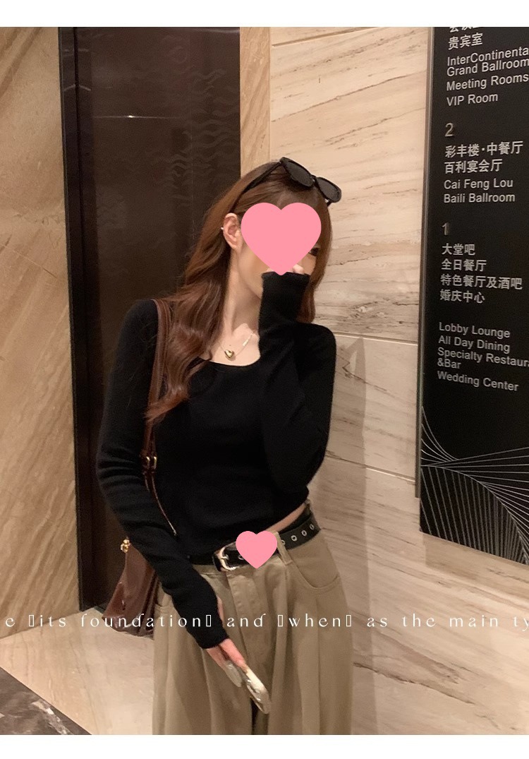 低领打底衫女2024新款春秋灰色毛衣修身方领针织衫感内搭上衣
