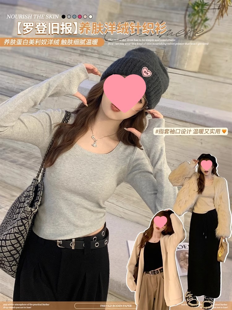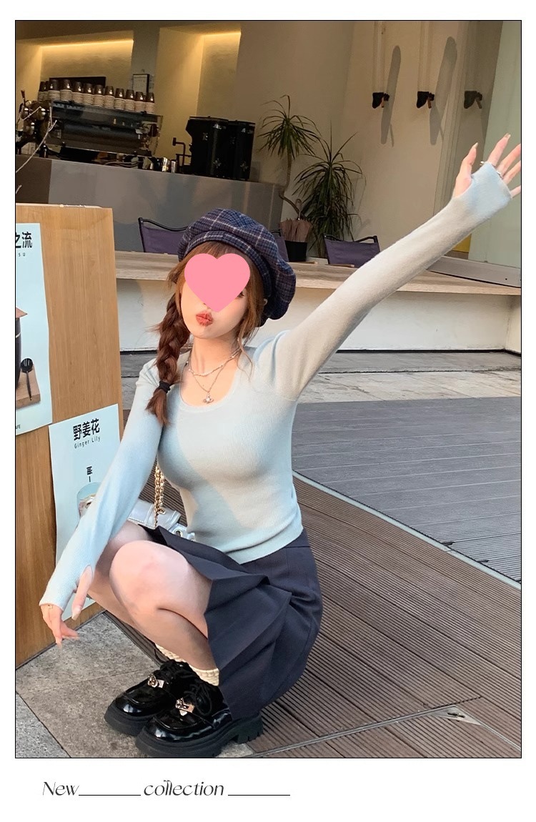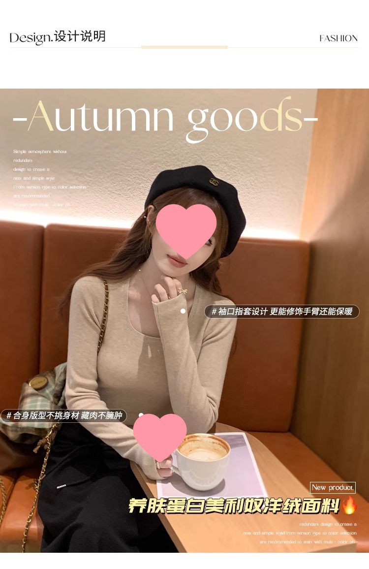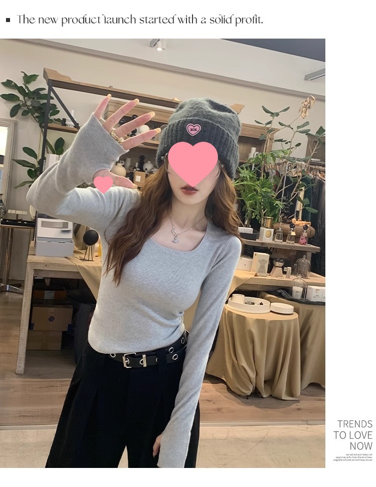 낮은 칼라 보토밍 셔츠 여성의 2024 년 새로운 봄과 가을 회색 스웨터 슬림 핏 스퀘어 칼라 니트 셔츠 센스 내부 탑스토어 가기