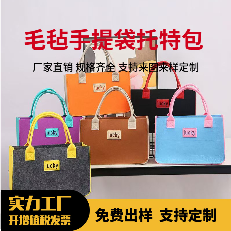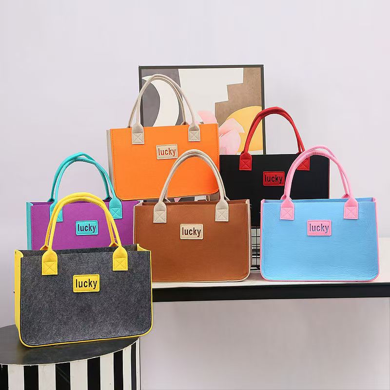 폭발성 대비 컬러 펠트 백 핸드백 고급 센스 대용량 펠트 토트 백 간단한 솔리드 컬러 쇼핑백스토어 가기