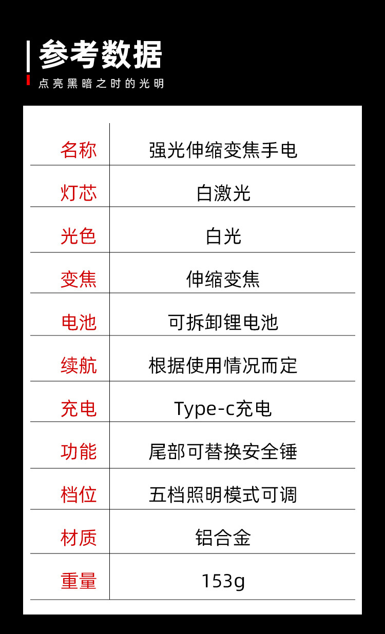 비상 손전등 흰색 레이저 줌 충전식 벨트 구명 해머 절단 로프 야외 조명 차량 용품
