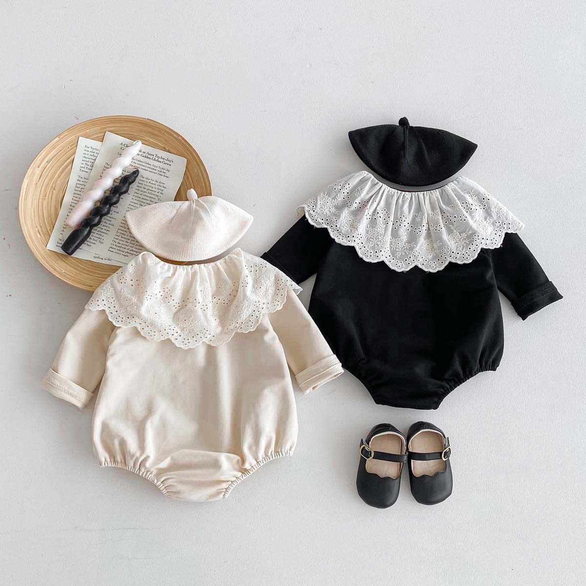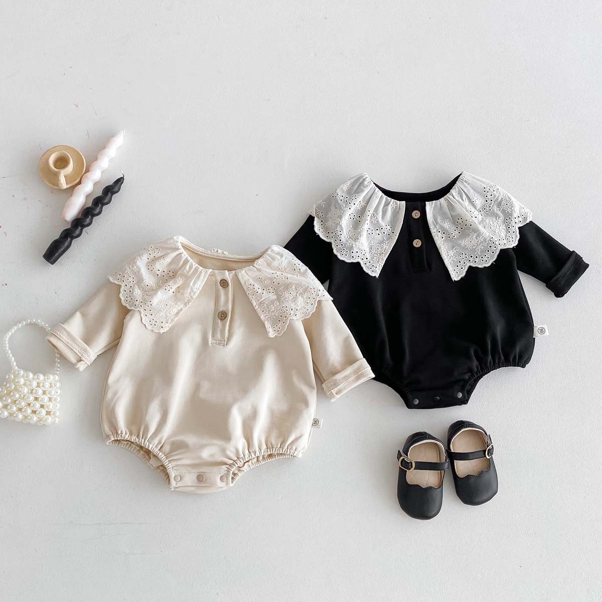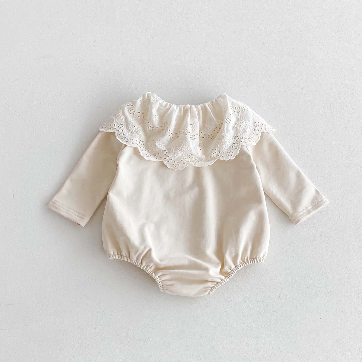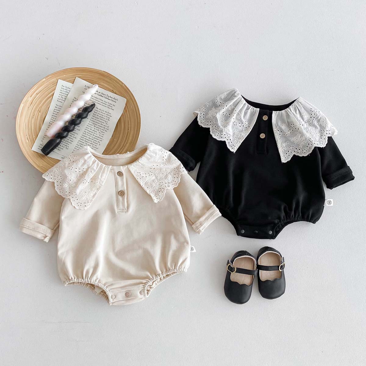 아기의 봄과 가을 붐 수트 여성 아기의 큰 옷깃 긴 소매 삼각형 붐 수트 신생아 한국식 풀오버 붐 수트