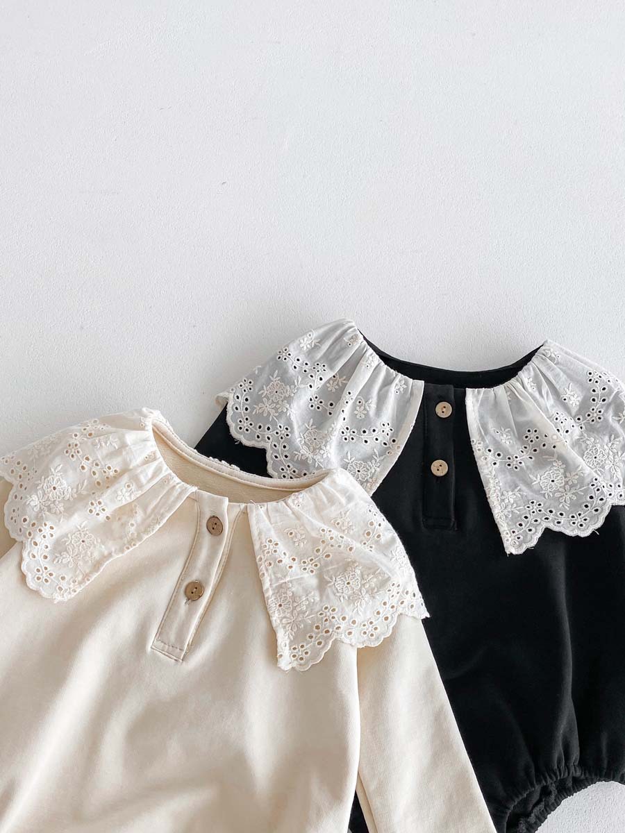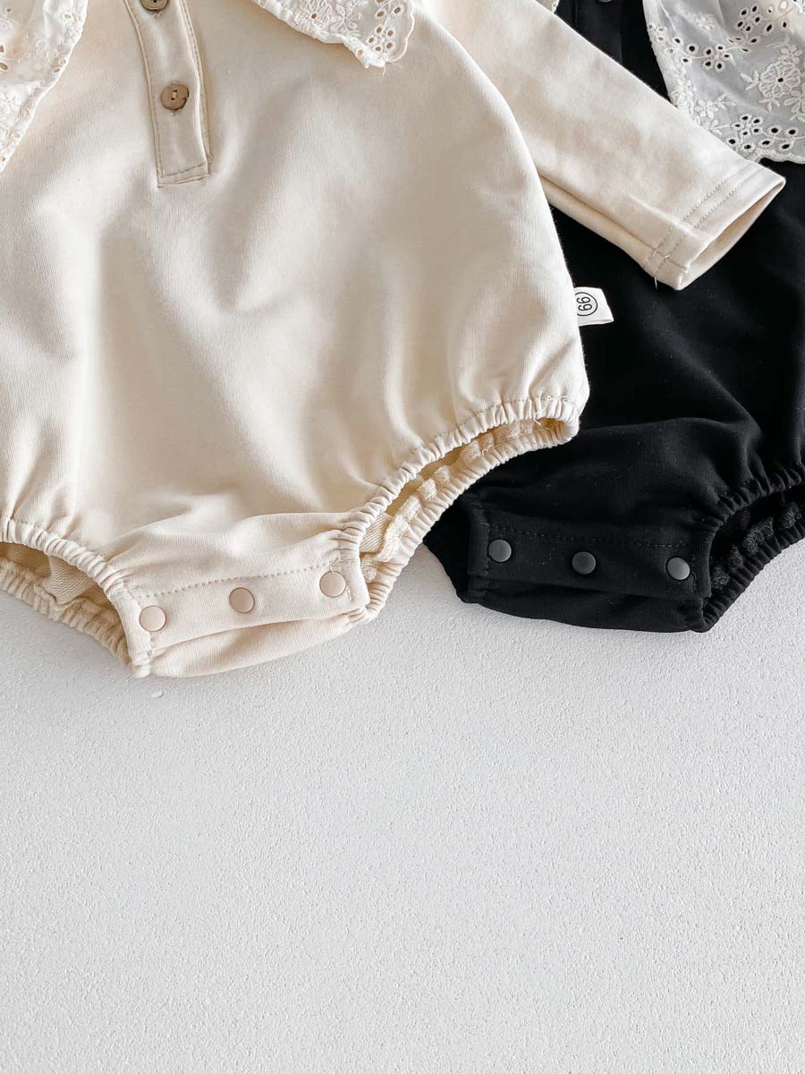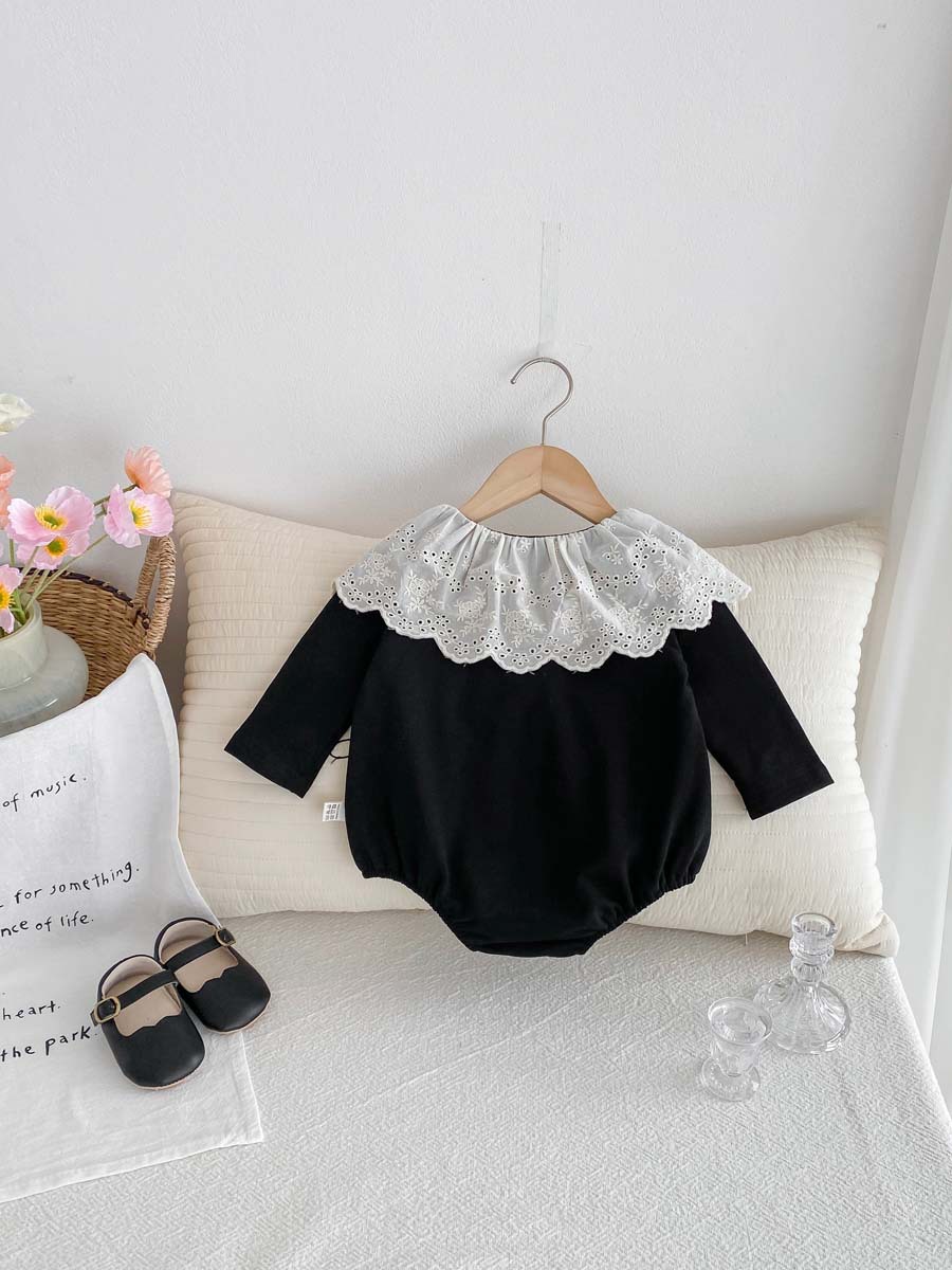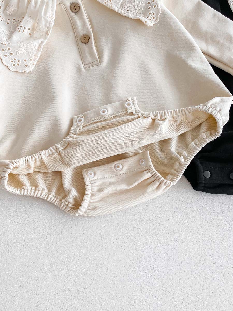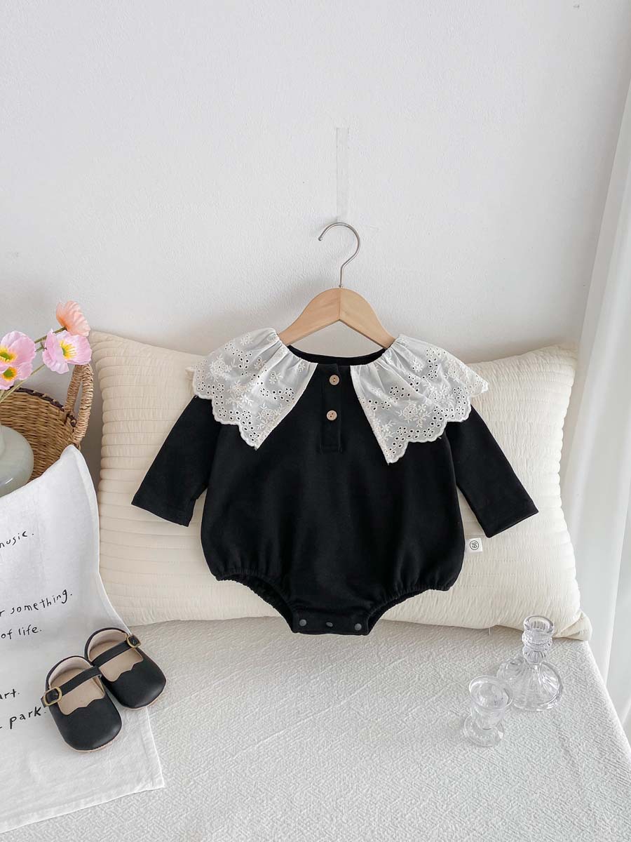 아기의 봄과 가을 붐 수트 여성 아기의 큰 옷깃 긴 소매 삼각형 붐 수트 신생아 한국식 풀오버 붐 수트