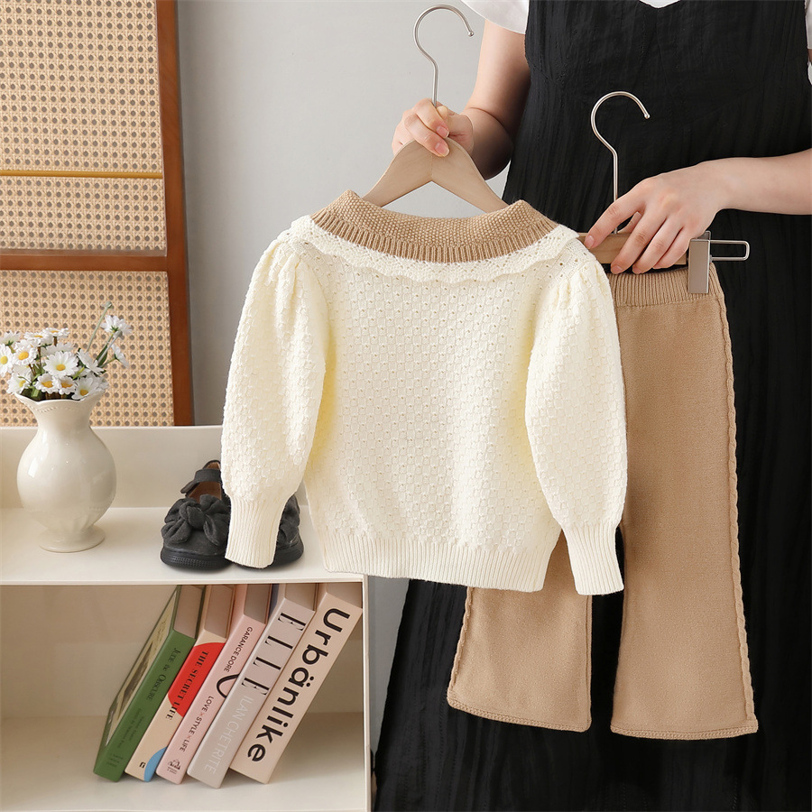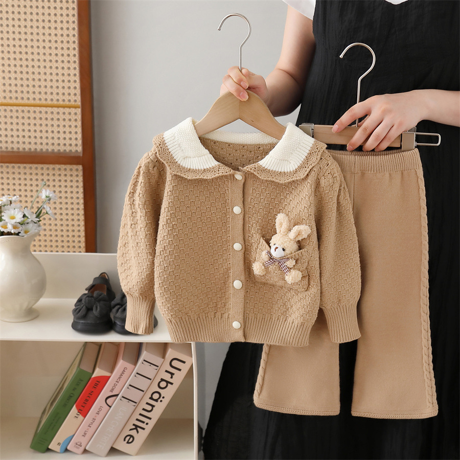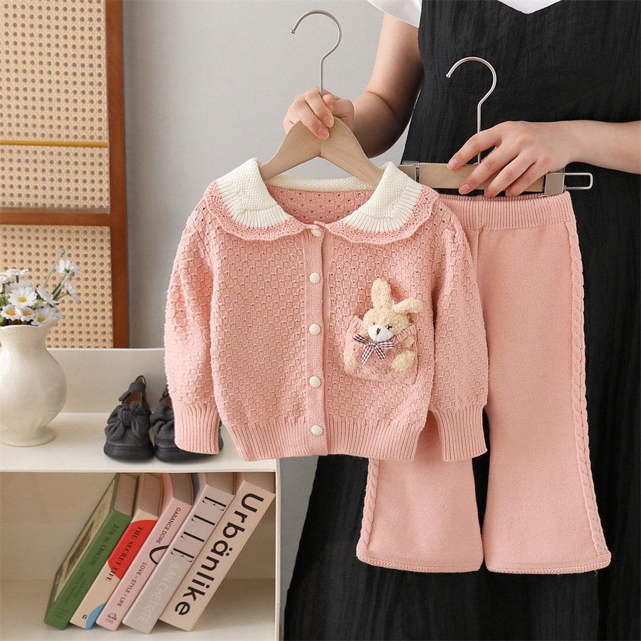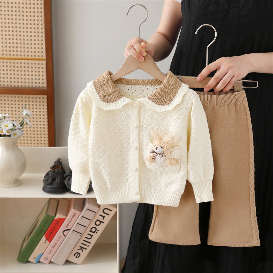 여아용 스웨터 재킷 2024 가을 겨울 신상 니트 세트 만화 곰 소녀 바지 세트스토어 가기