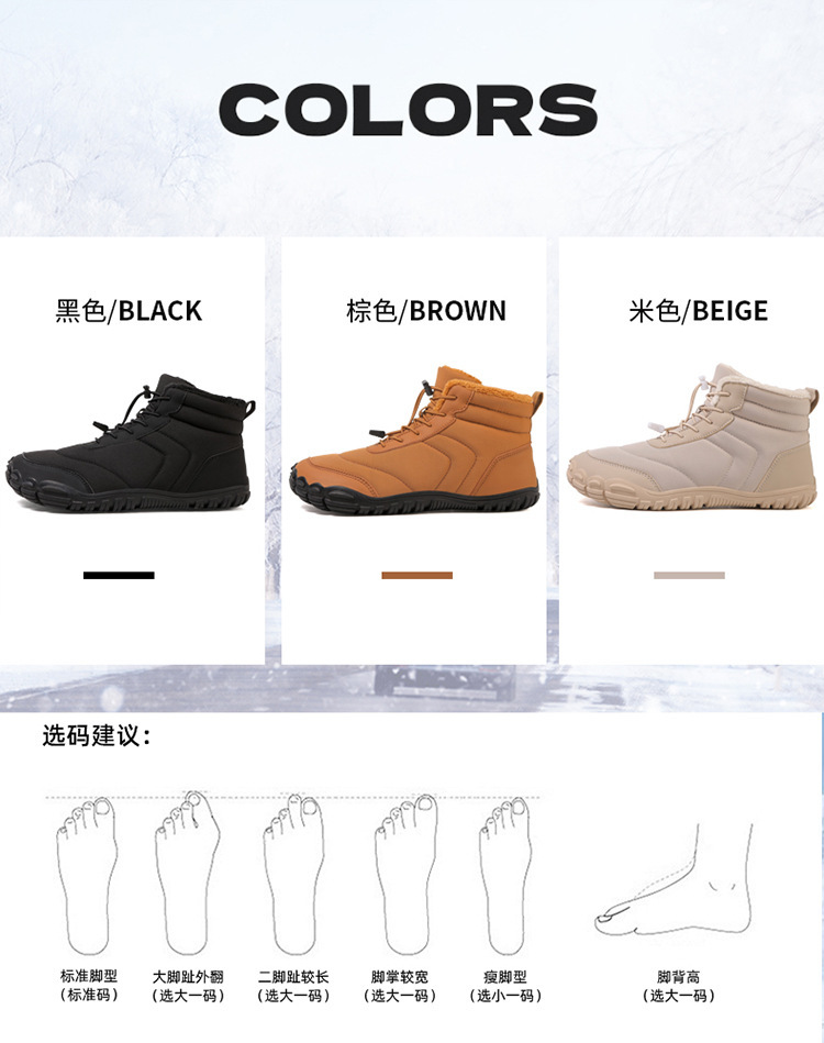 국경 간 겨울 다섯 손가락 코튼 슈즈 남성 및 여성 하이 탑 스노우 부츠 기모 두꺼운 따뜻한 미끄럼 방지 물 튀는 방수 하이킹 등반스토어 가기