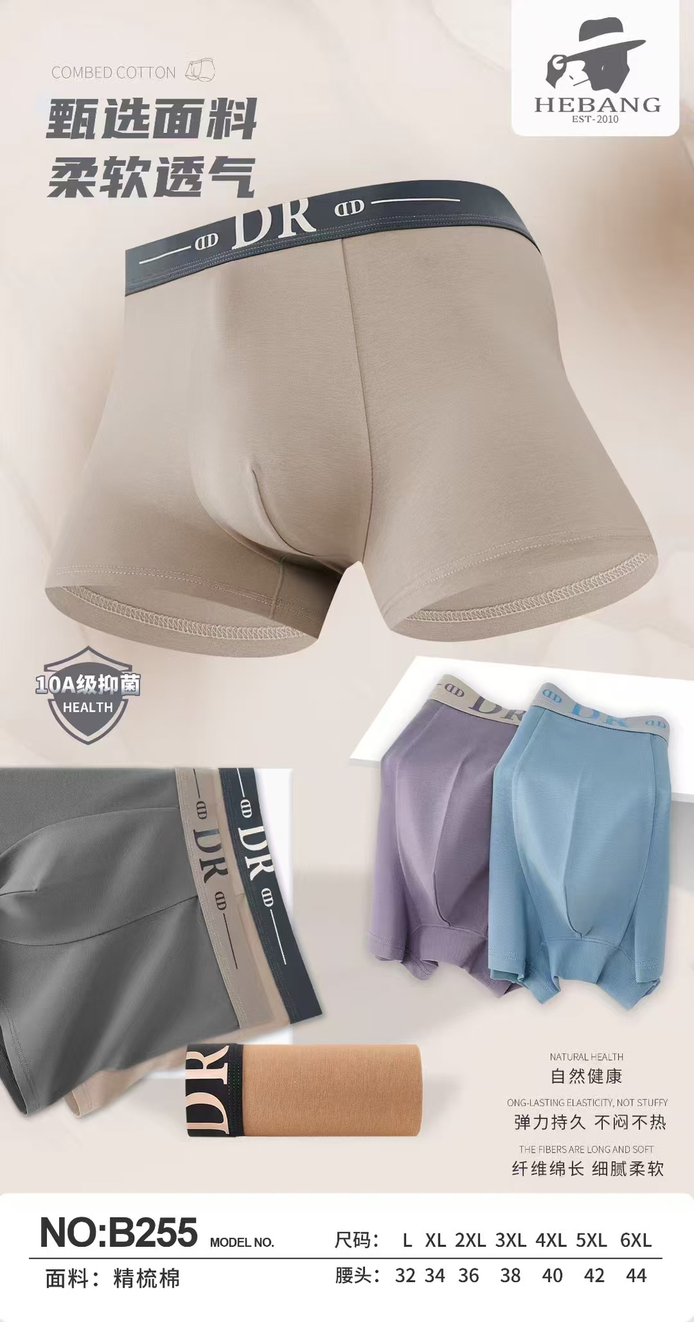 96% 면 남성용 순면 사각팬티, 대비색 레터 프린트, 코마면 사각팬티, 뚱뚱한 남성용 대형 사이즈스토어 가기