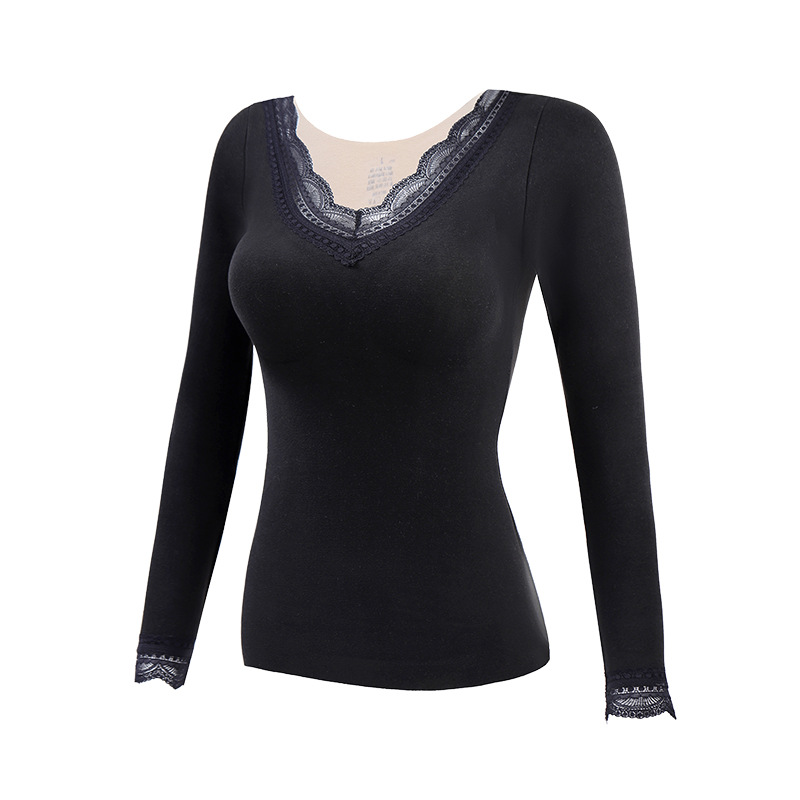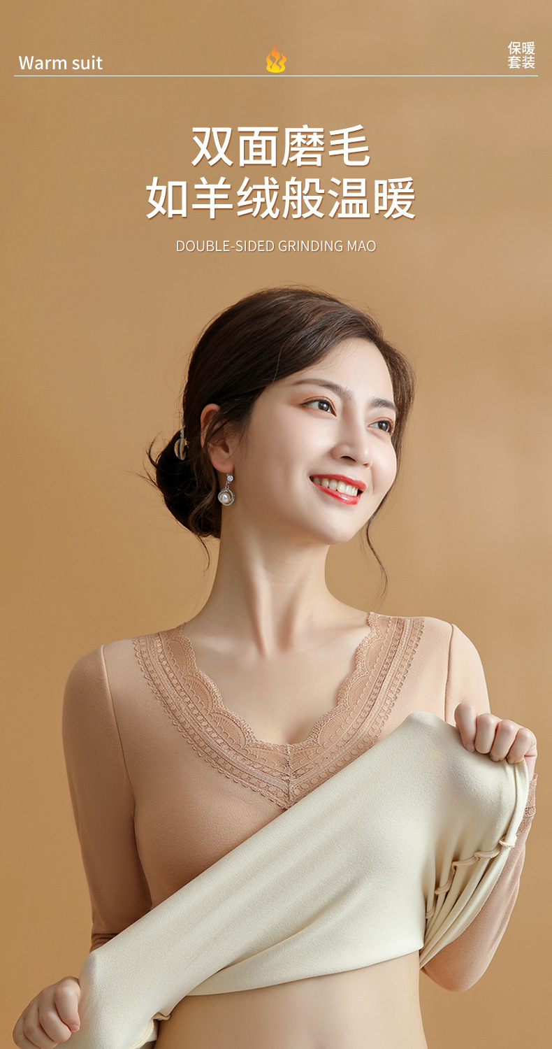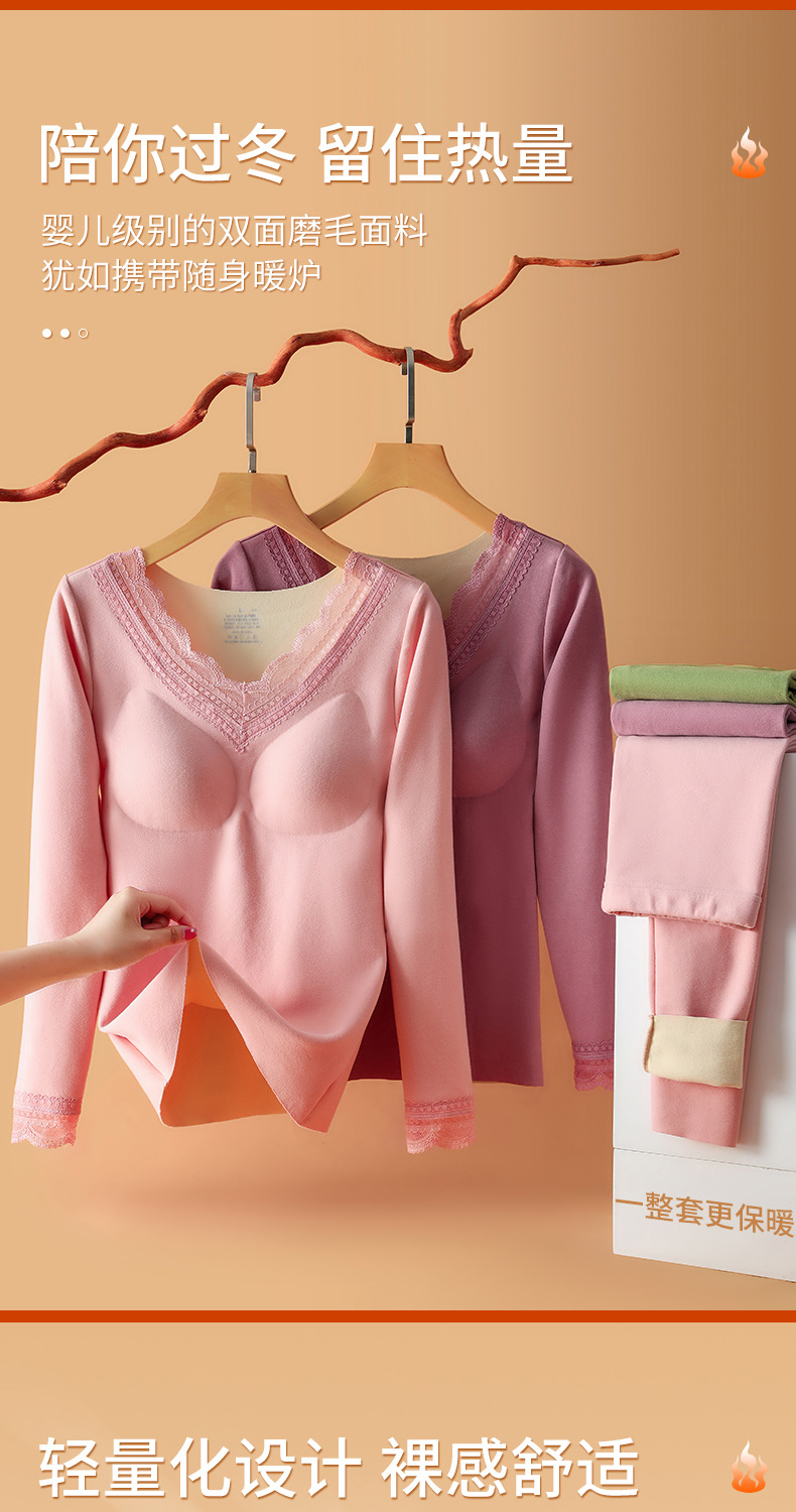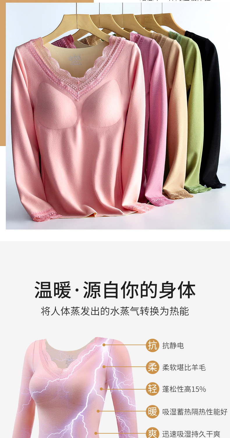 데롱 가슴 패드 내장 보온 내의 여성용 양면 기모 이너웨어 여성용 브라 없이 착용 가능 가을옷 무봉제 외출용