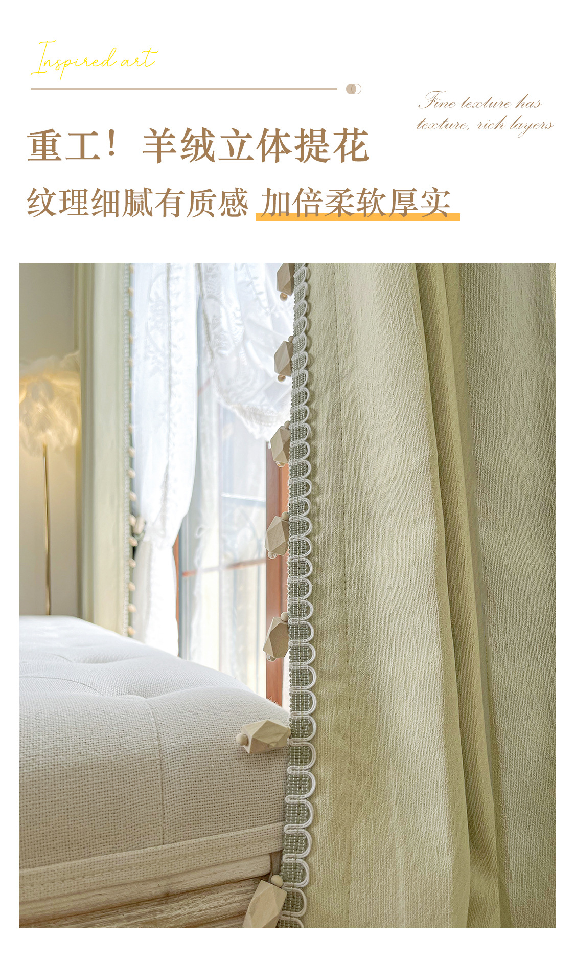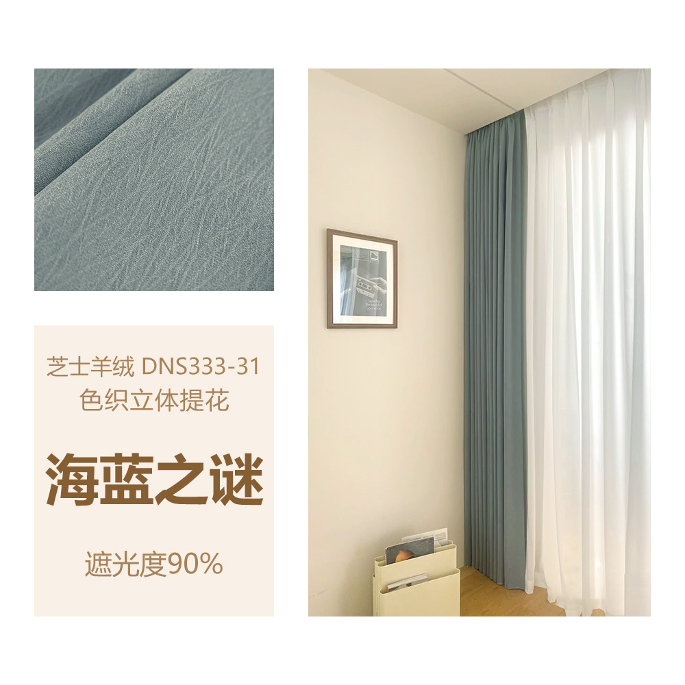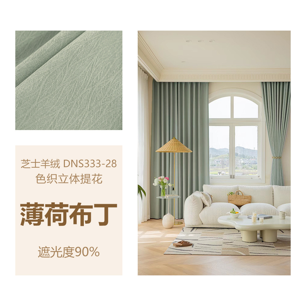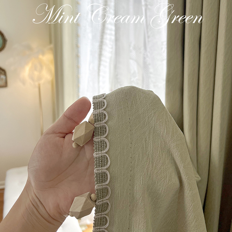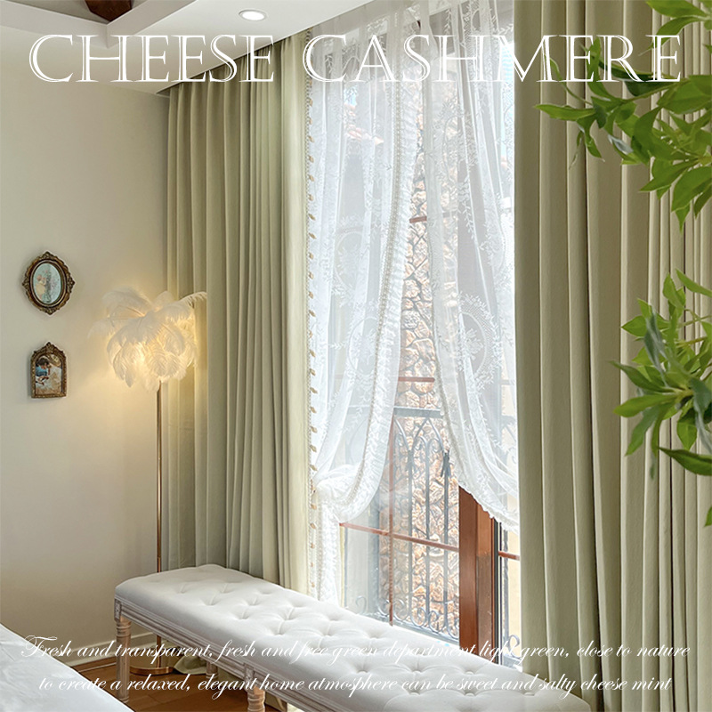 밀크 그린 프렌치 솔리드 컬러 정맥 짜임새 치닐 치즈 캐시미어 커튼 베이 창 작은 신선한 감각스토어 가기
