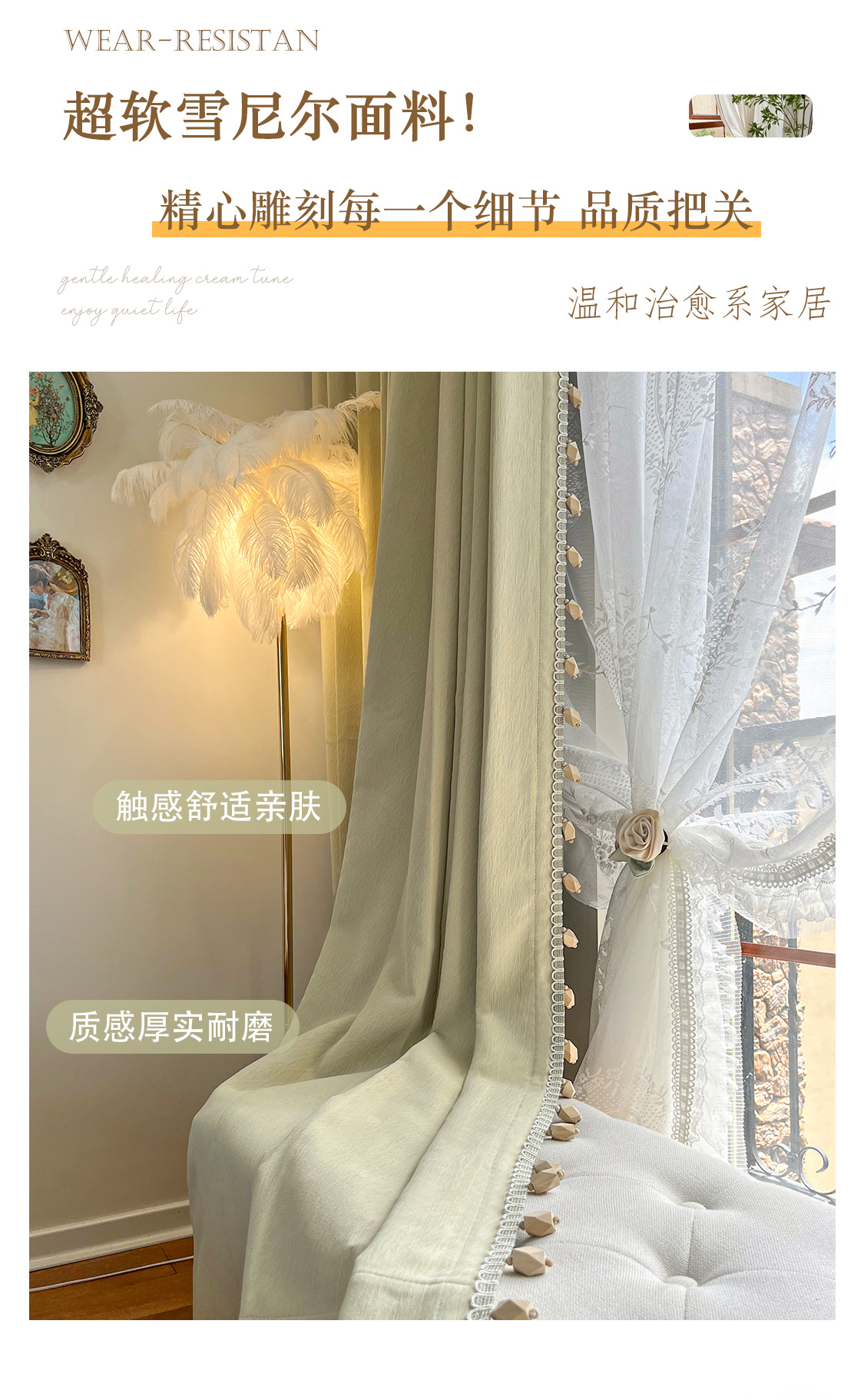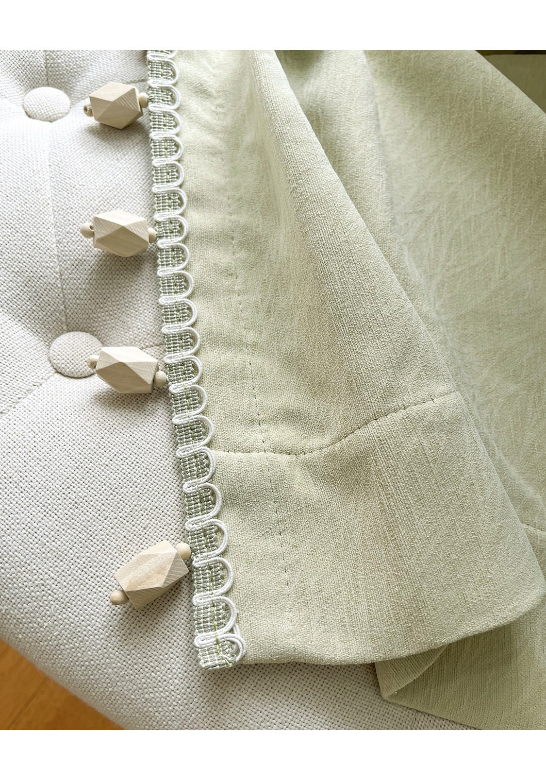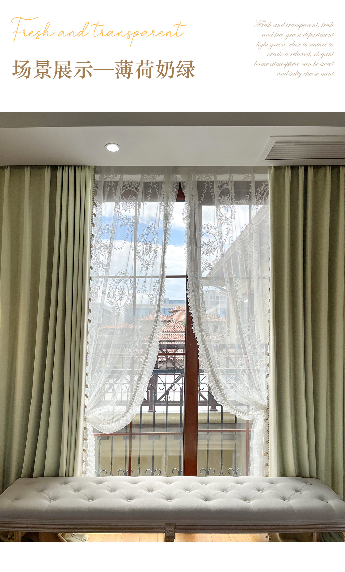 밀크 그린 프렌치 솔리드 컬러 정맥 짜임새 치닐 치즈 캐시미어 커튼 베이 창 작은 신선한 감각스토어 가기