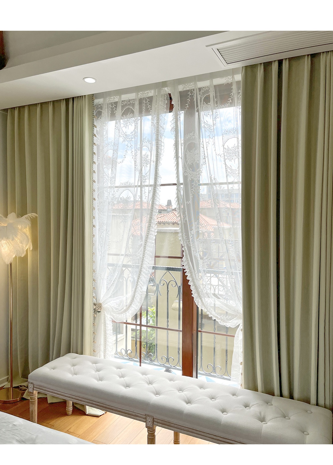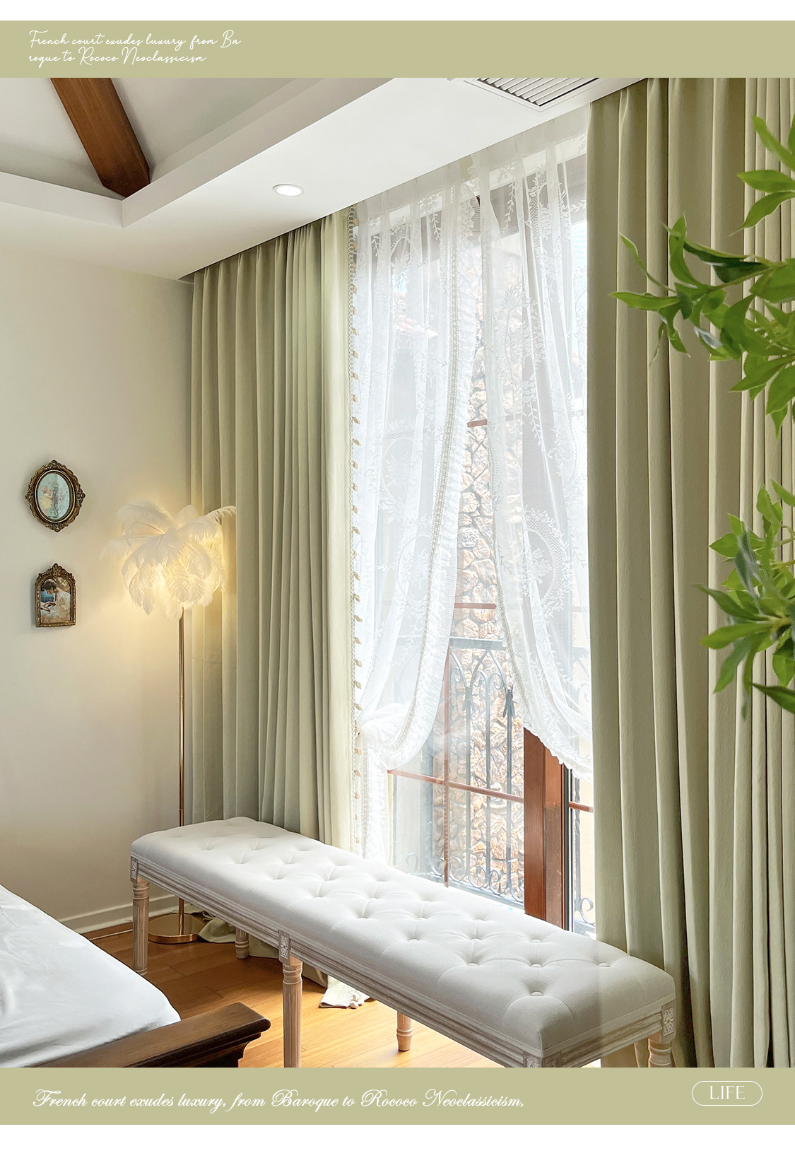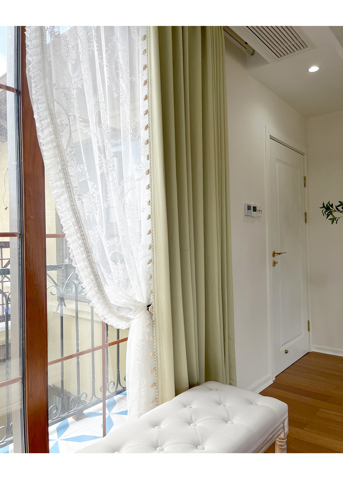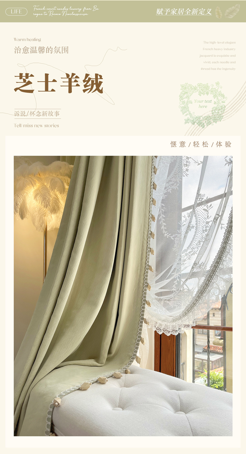 밀크 그린 프렌치 솔리드 컬러 정맥 짜임새 치닐 치즈 캐시미어 커튼 베이 창 작은 신선한 감각스토어 가기