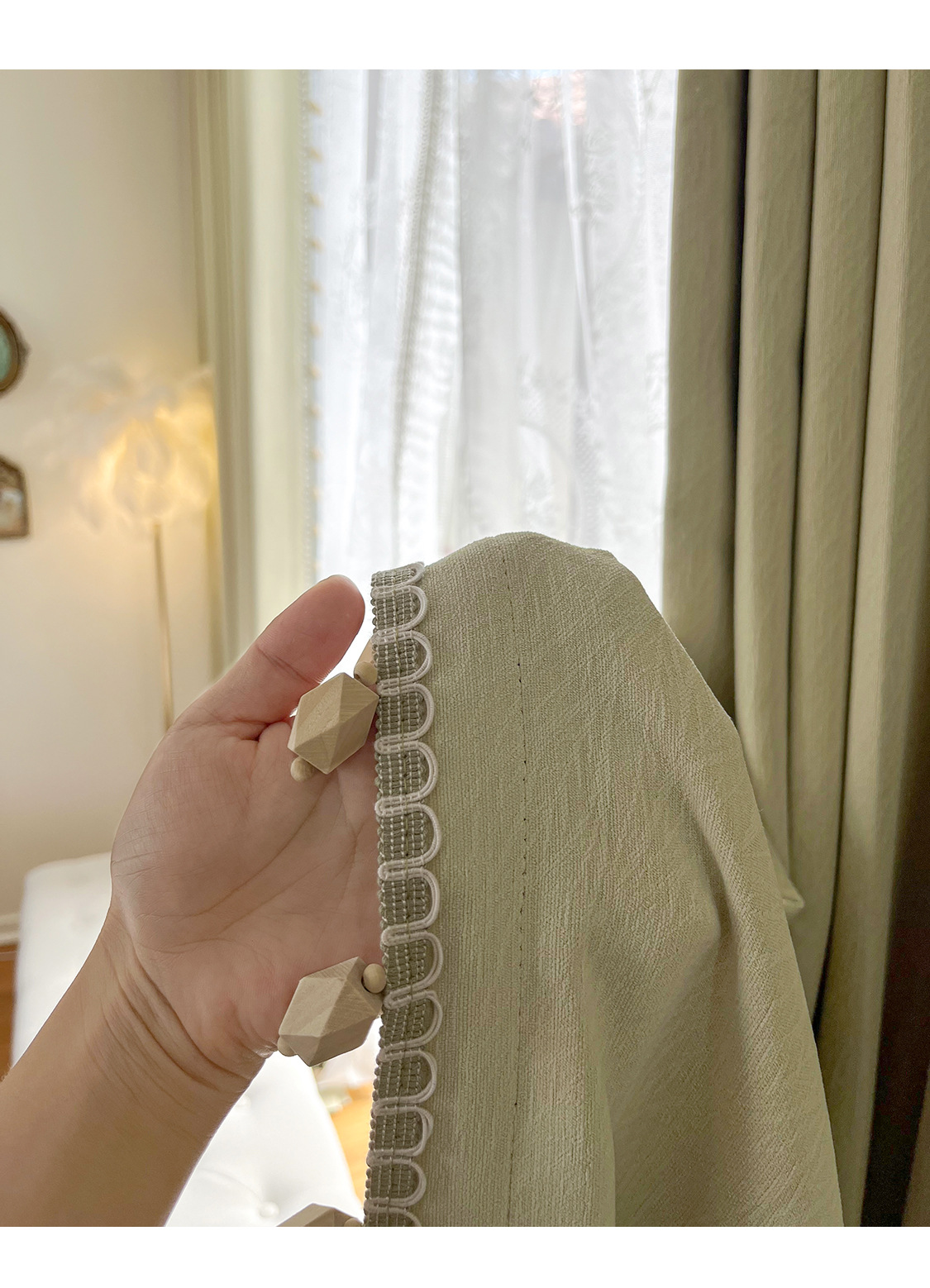 • 사진 속 나무구슬 레이스는 추가 35위안/미터입니다.