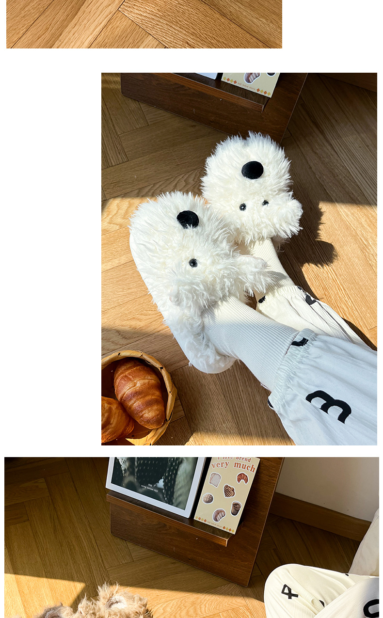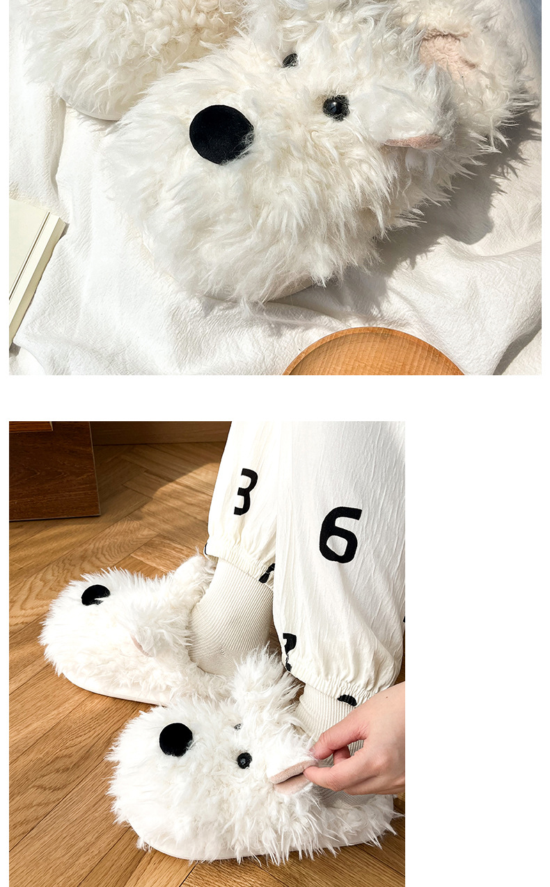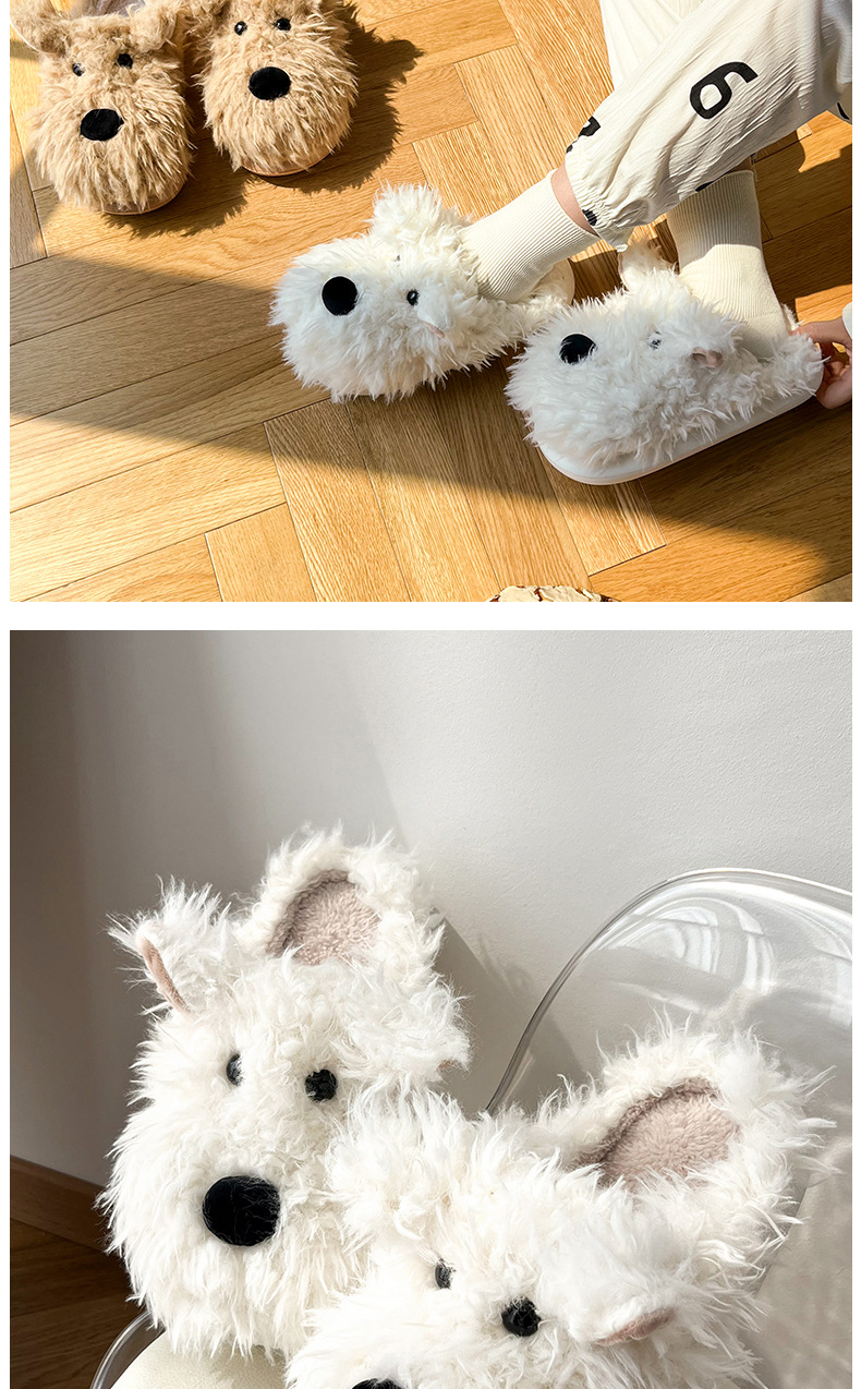 Scribbbled Puppy Cotton 슬리퍼 여성의 겨울 실내 비 슬립 따뜻한 하프 힐 플러시 문 부드러운 바닥 마오 마오 마오 슬리퍼스토어 가기