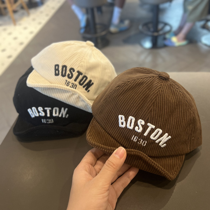 어린이 모자 봄 가을과 겨울 소프트 브림 캡 아기 한국 스타일 올 매치 코듀로이 방풍 야구 모자 소년 소녀를위한 유행스토어 가기