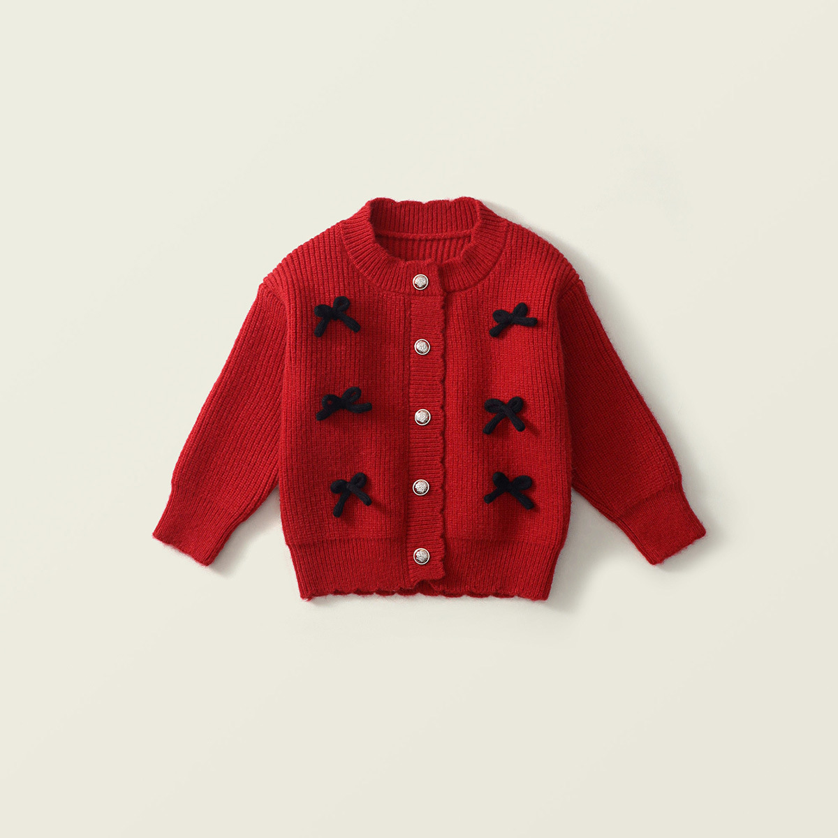재고정리 상품 여아 레드 니트 가디건 2025 가을 겨울 신상품 한국 스타일 리본 장식 긴팔 스웨터