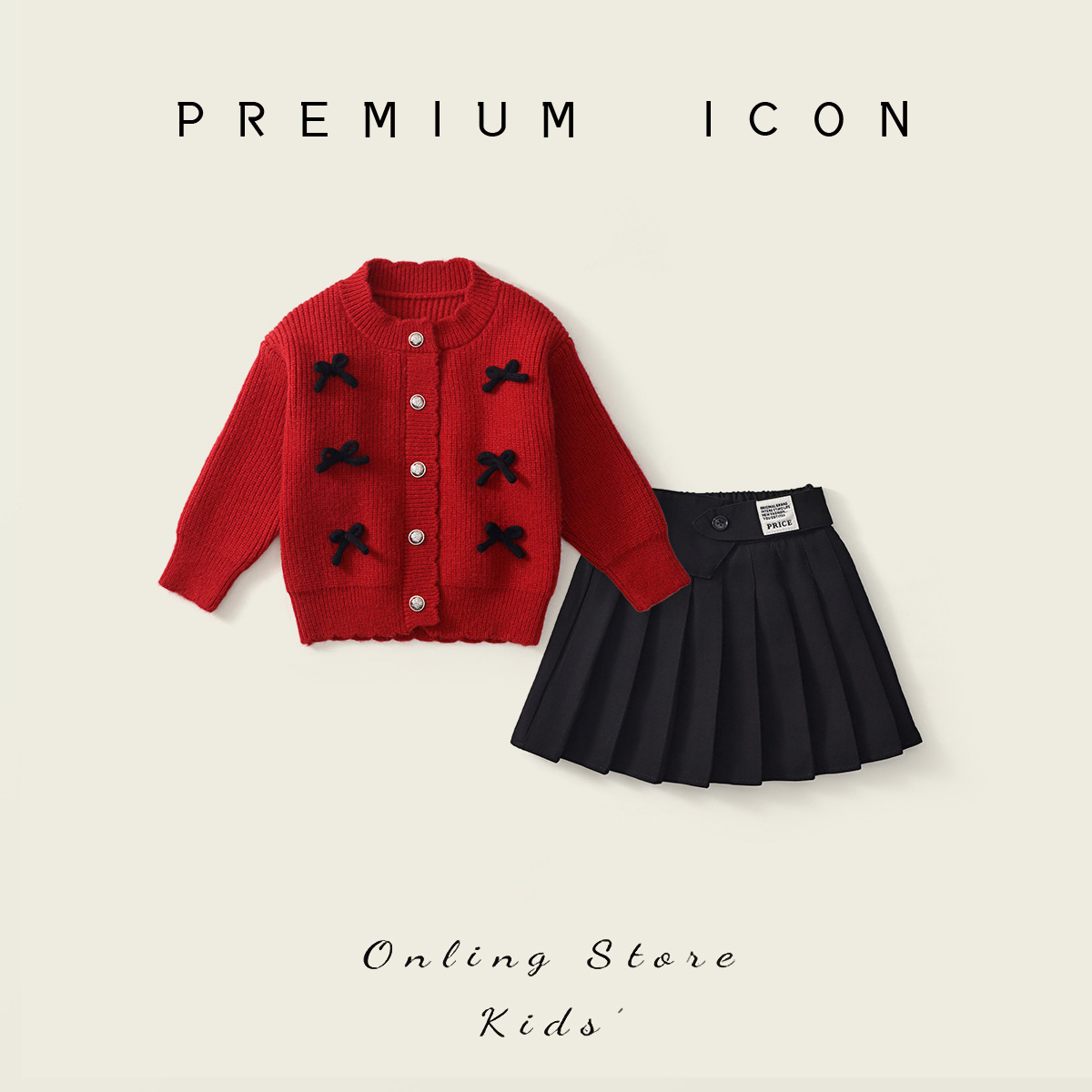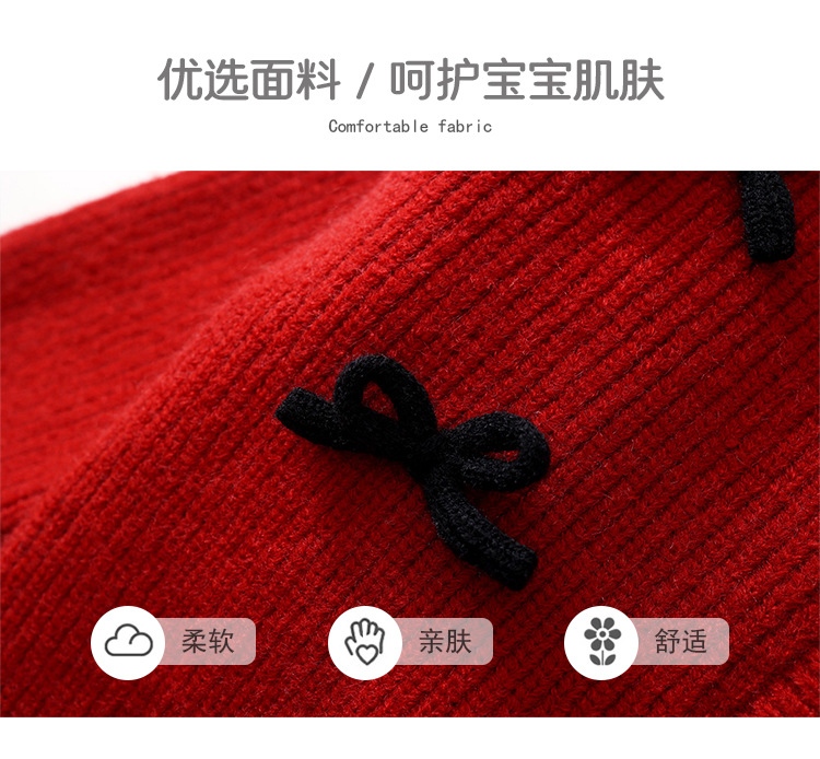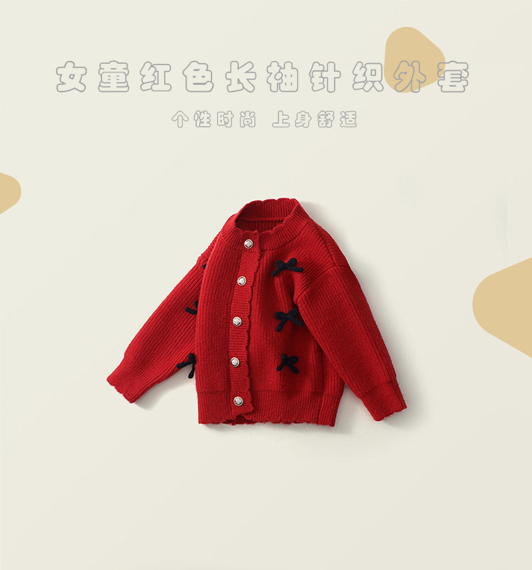 재고정리 상품 여아 레드 니트 가디건 2025 가을 겨울 신상품 한국 스타일 리본 장식 긴팔 스웨터스토어 가기