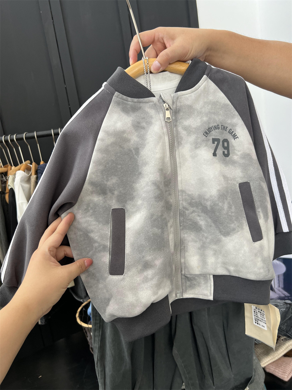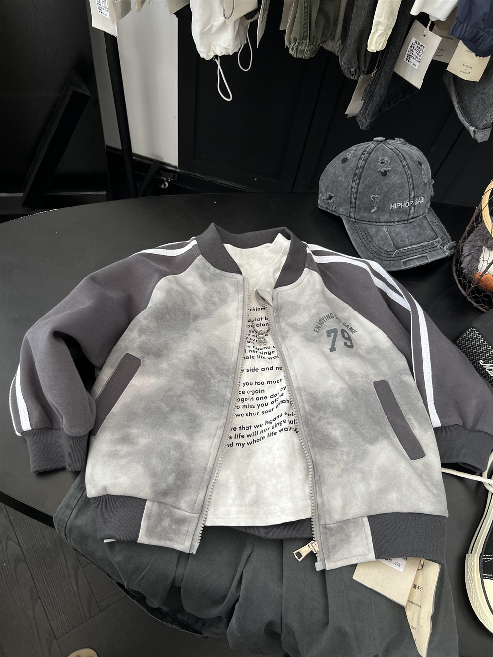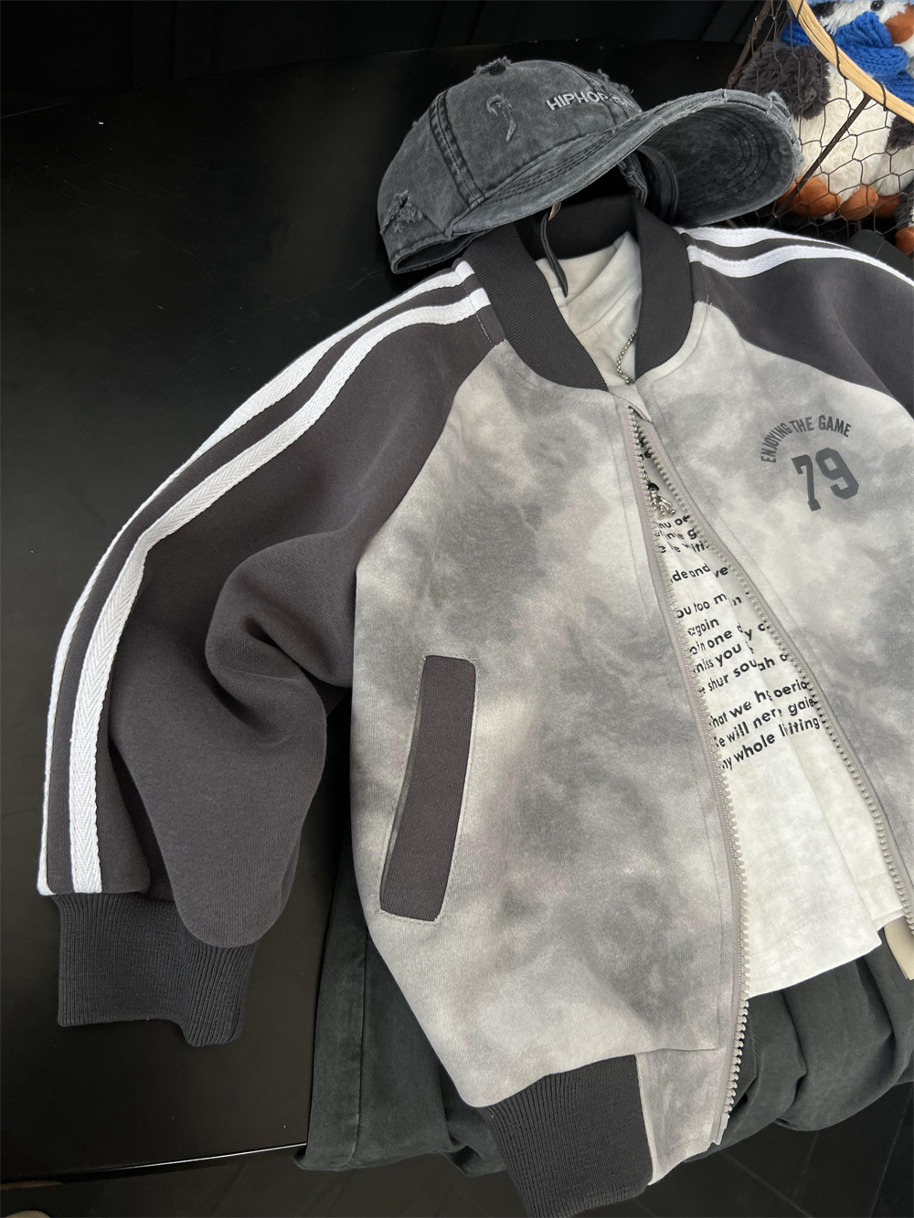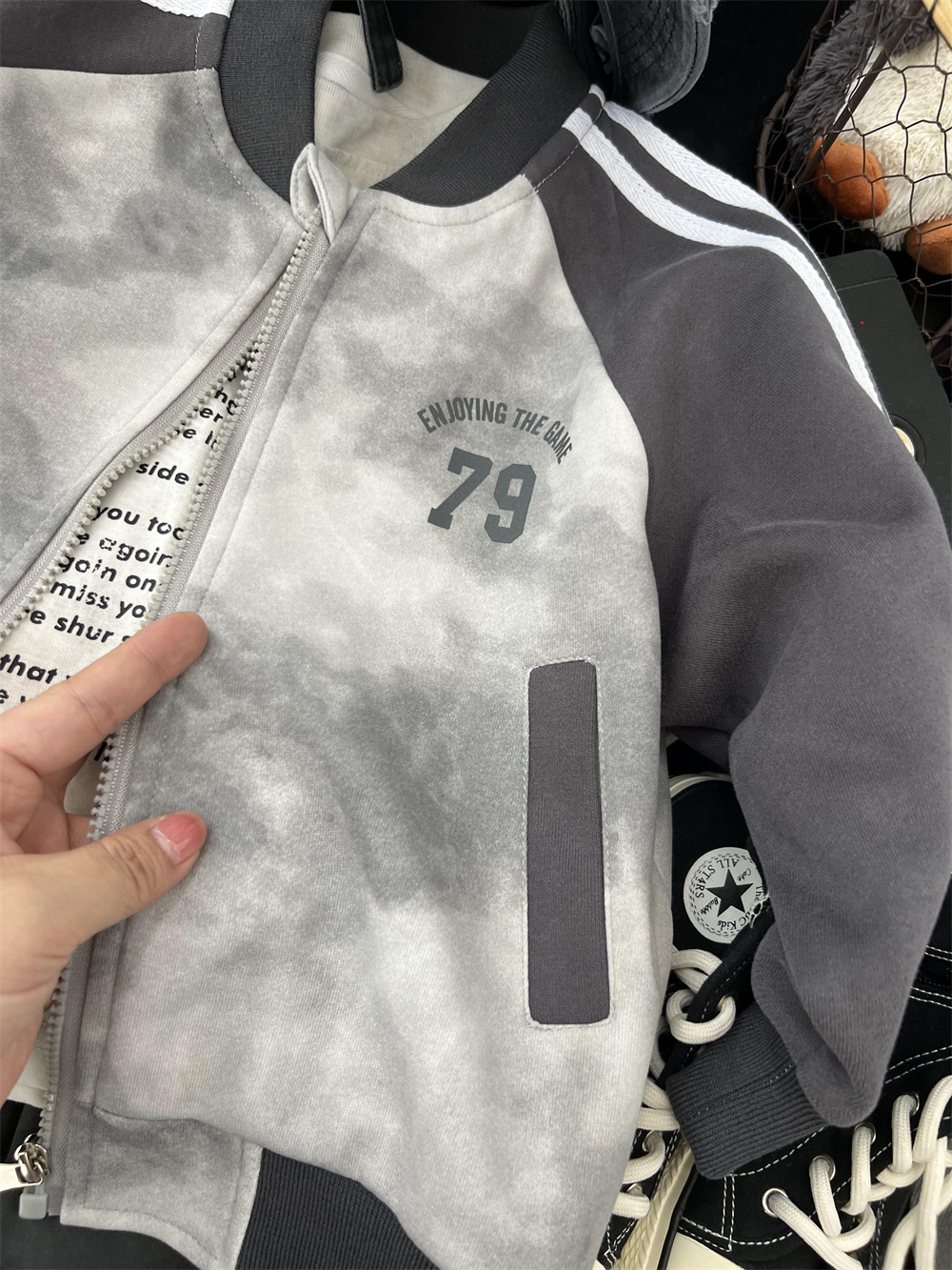 儿童秋季扎染拼色棒球服