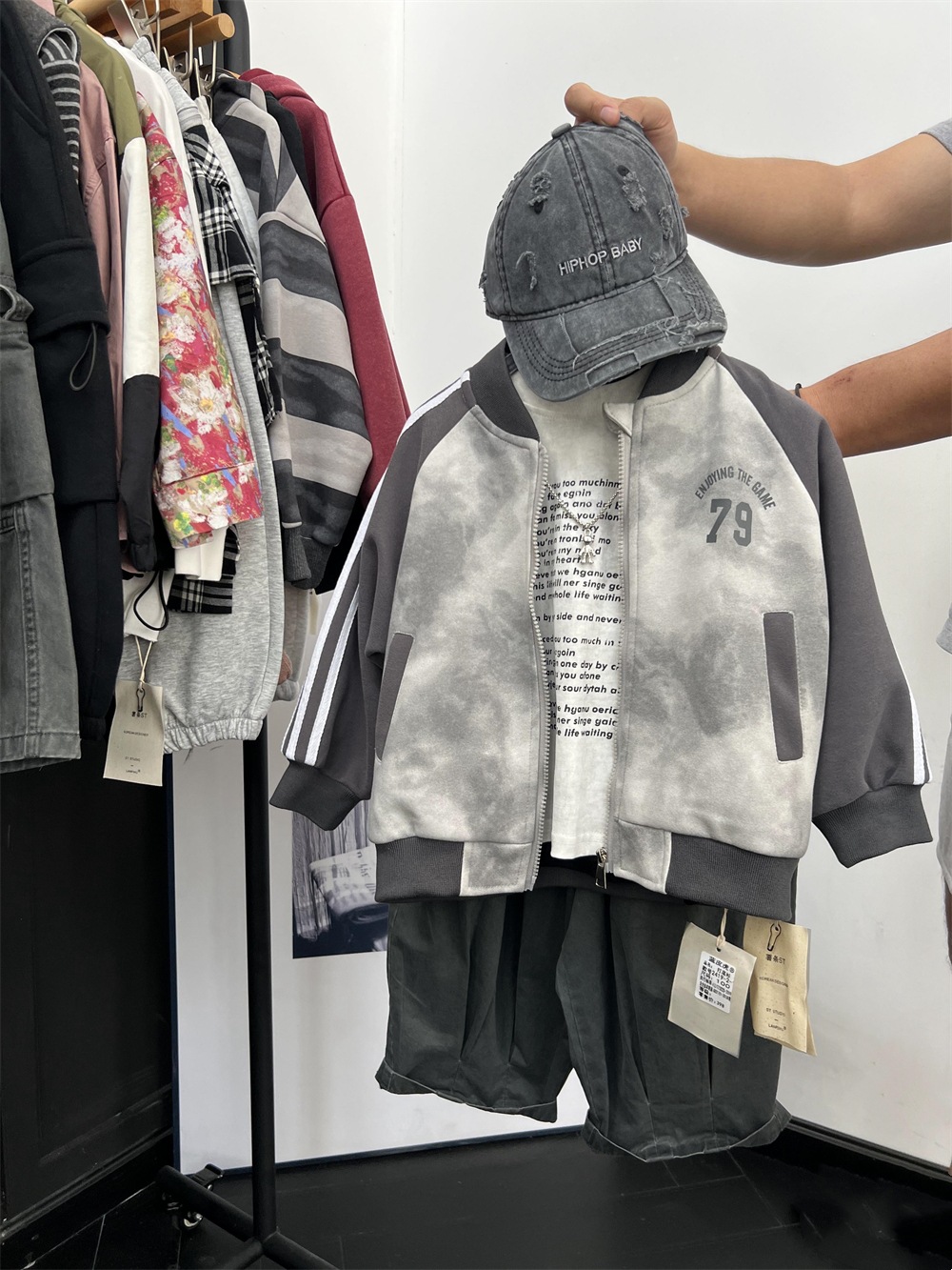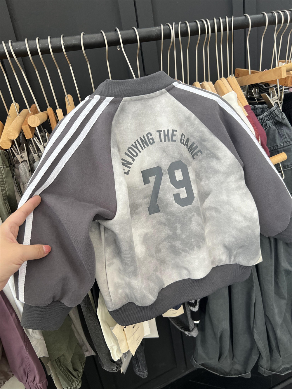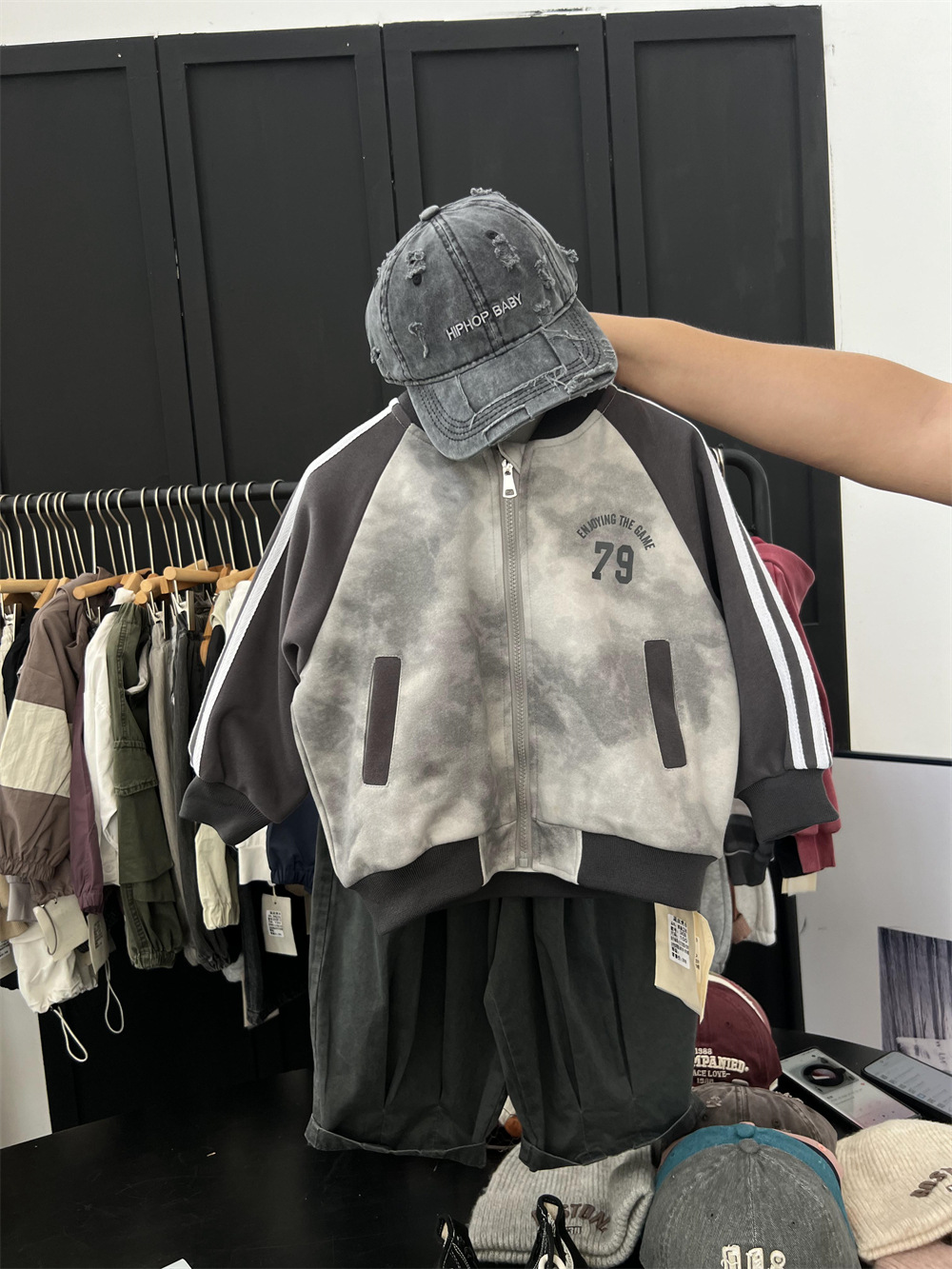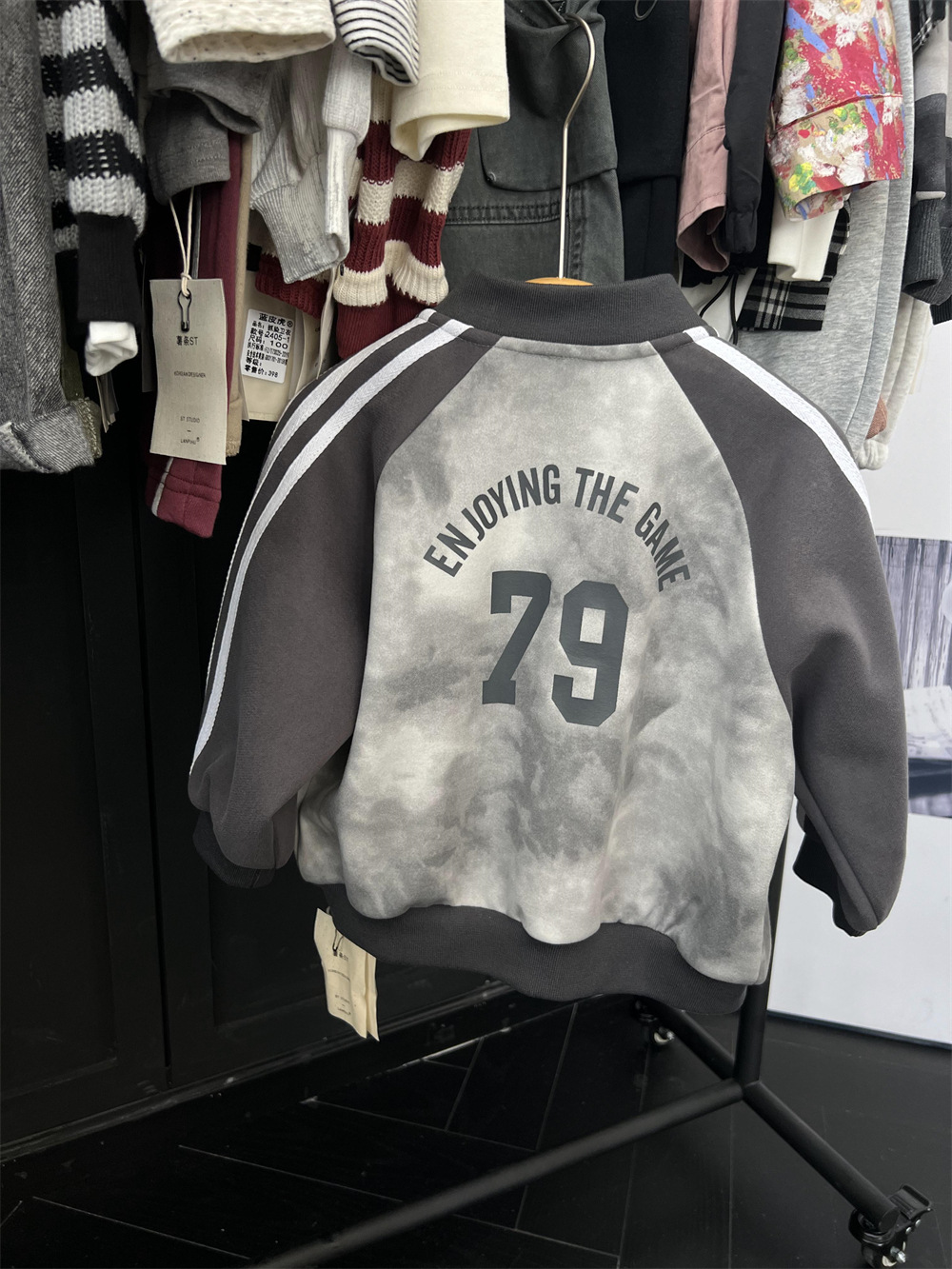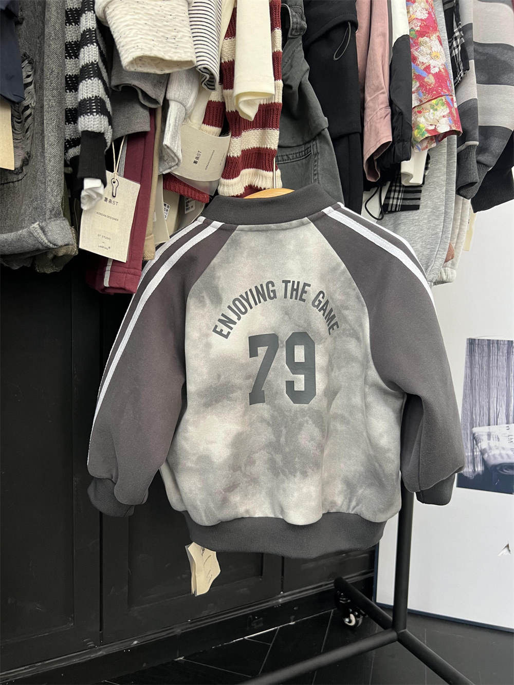 儿童秋季扎染拼色棒球服