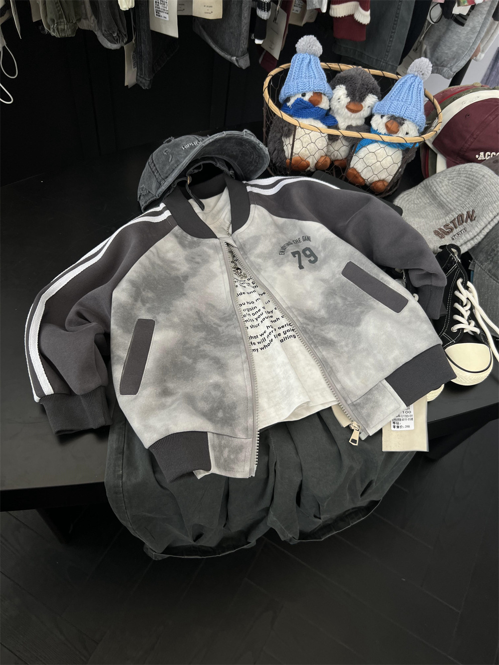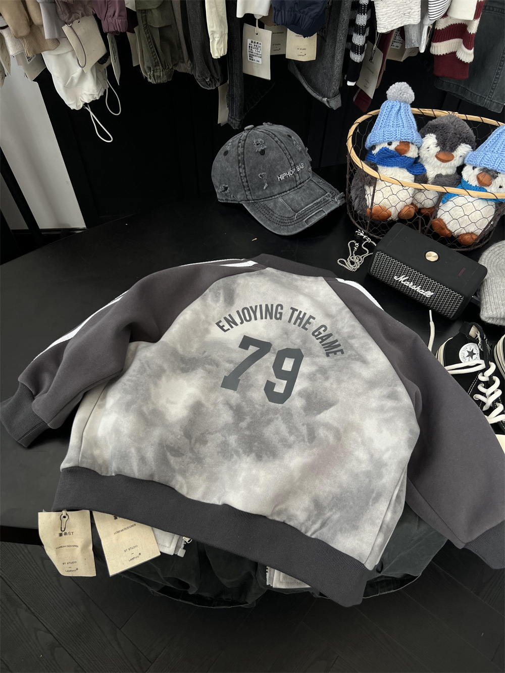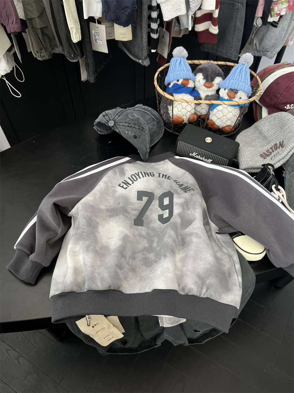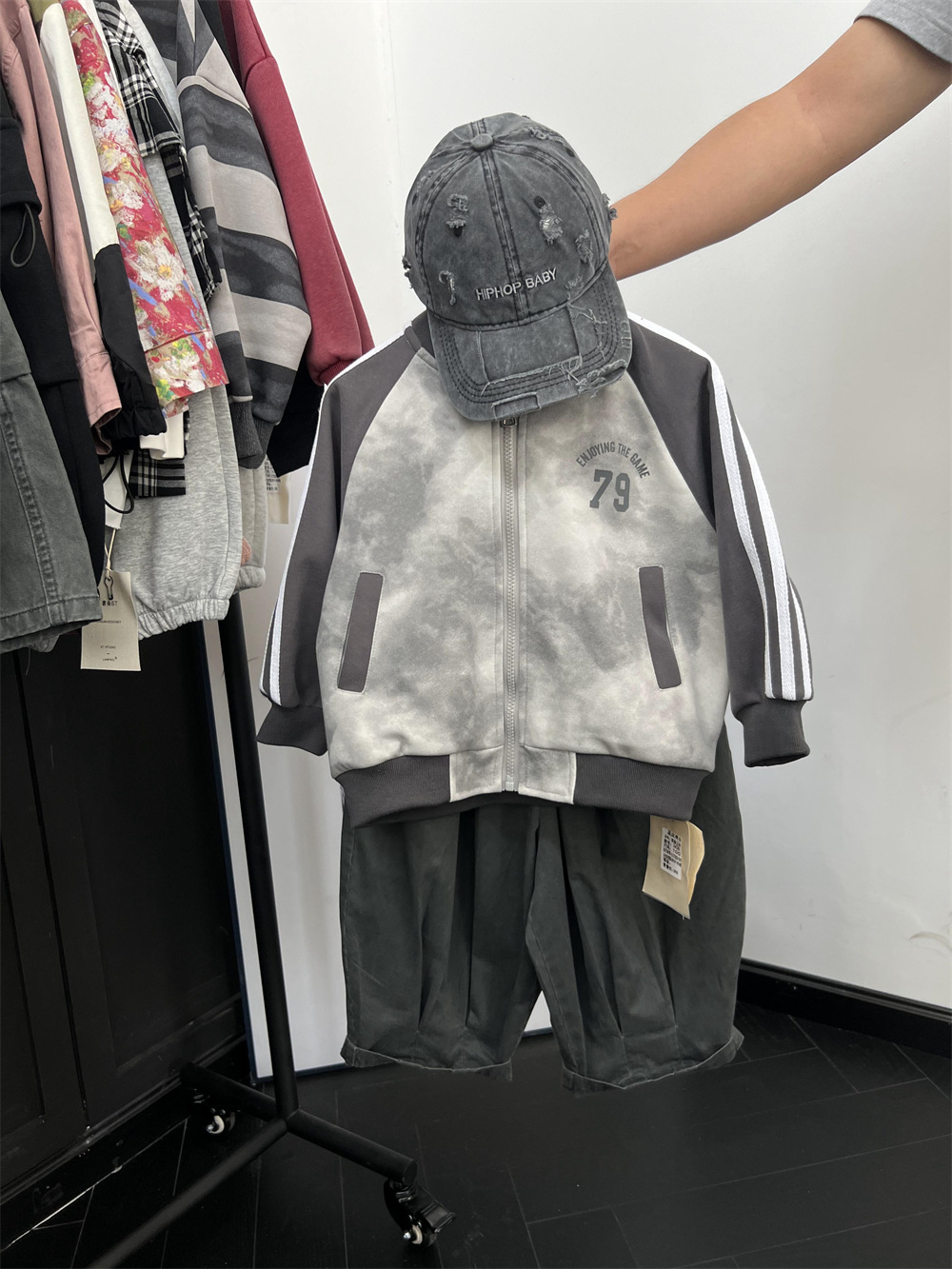 儿童秋季扎染拼色棒球服