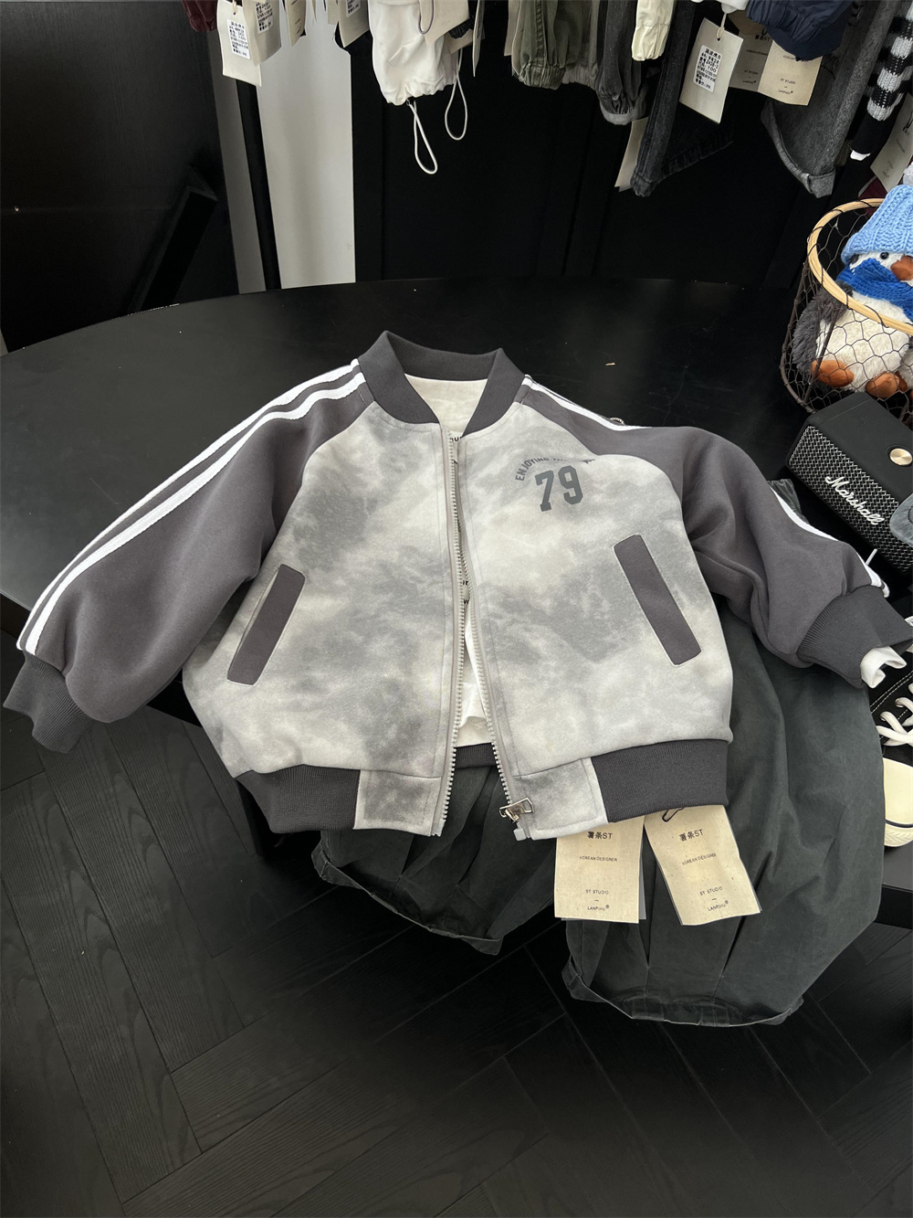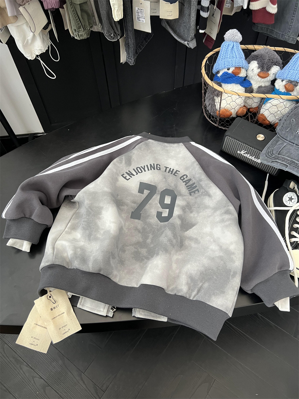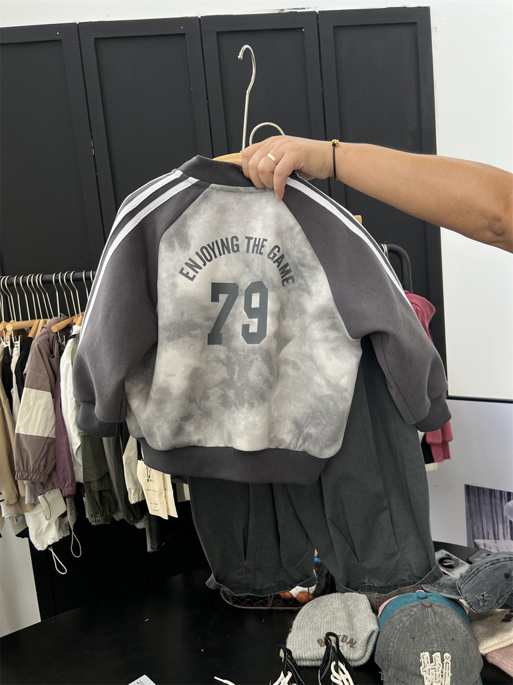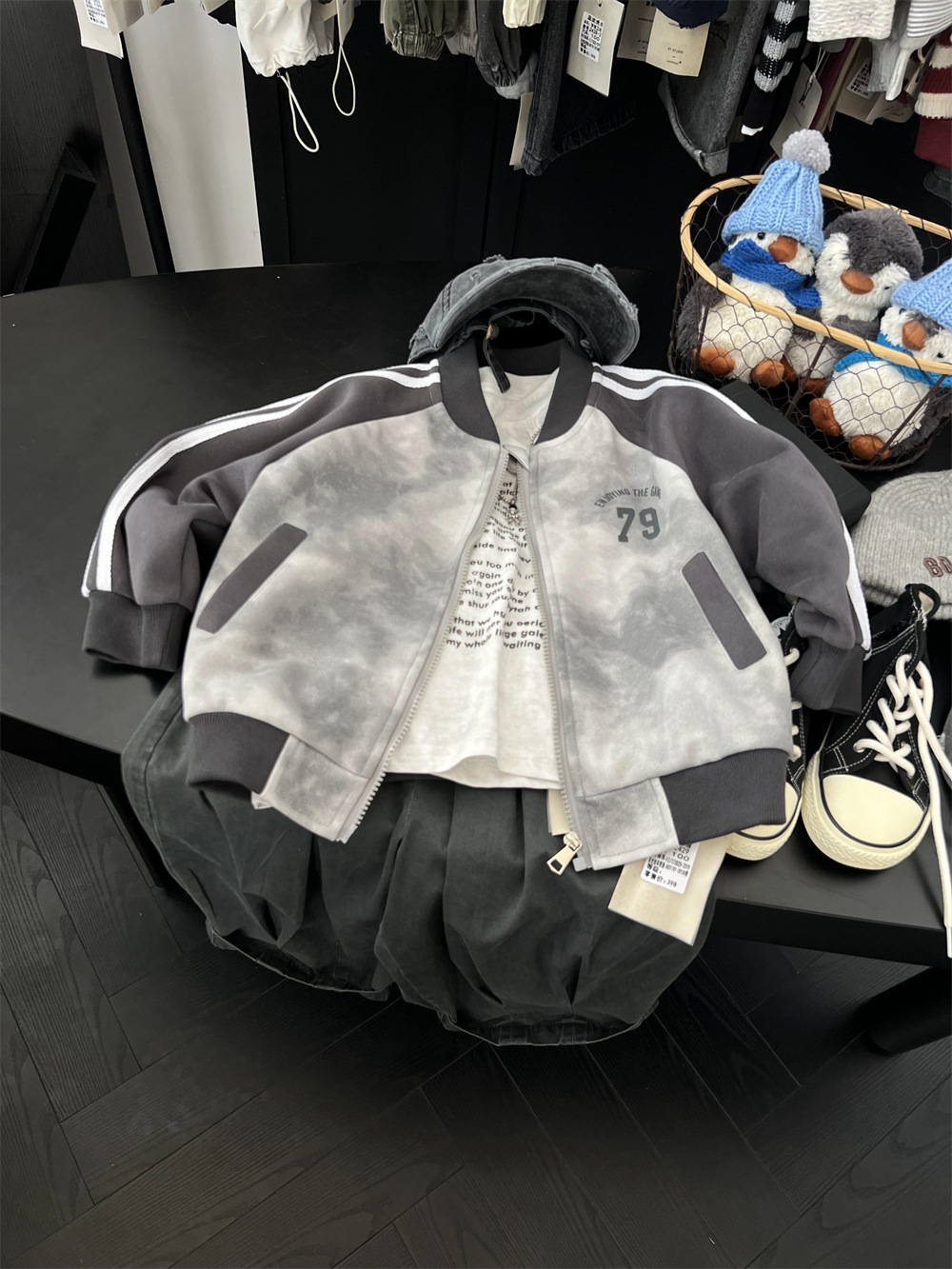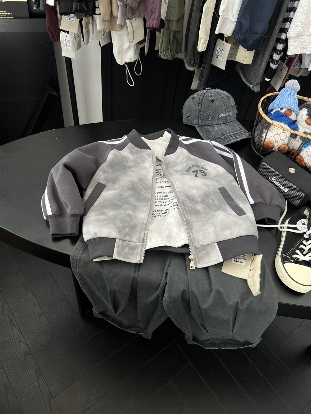 儿童秋季扎染拼色棒球服