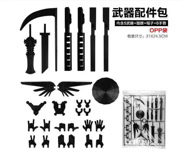 • 자석 검정색과 노란색(무기 4개, 손 3개 포함) OPP 가방