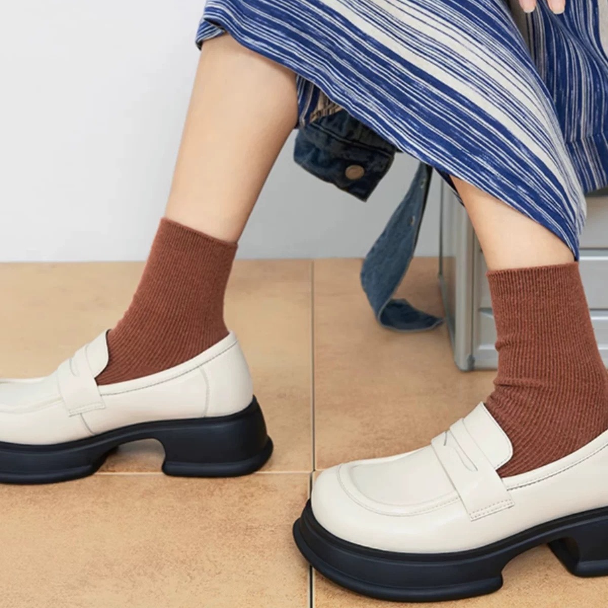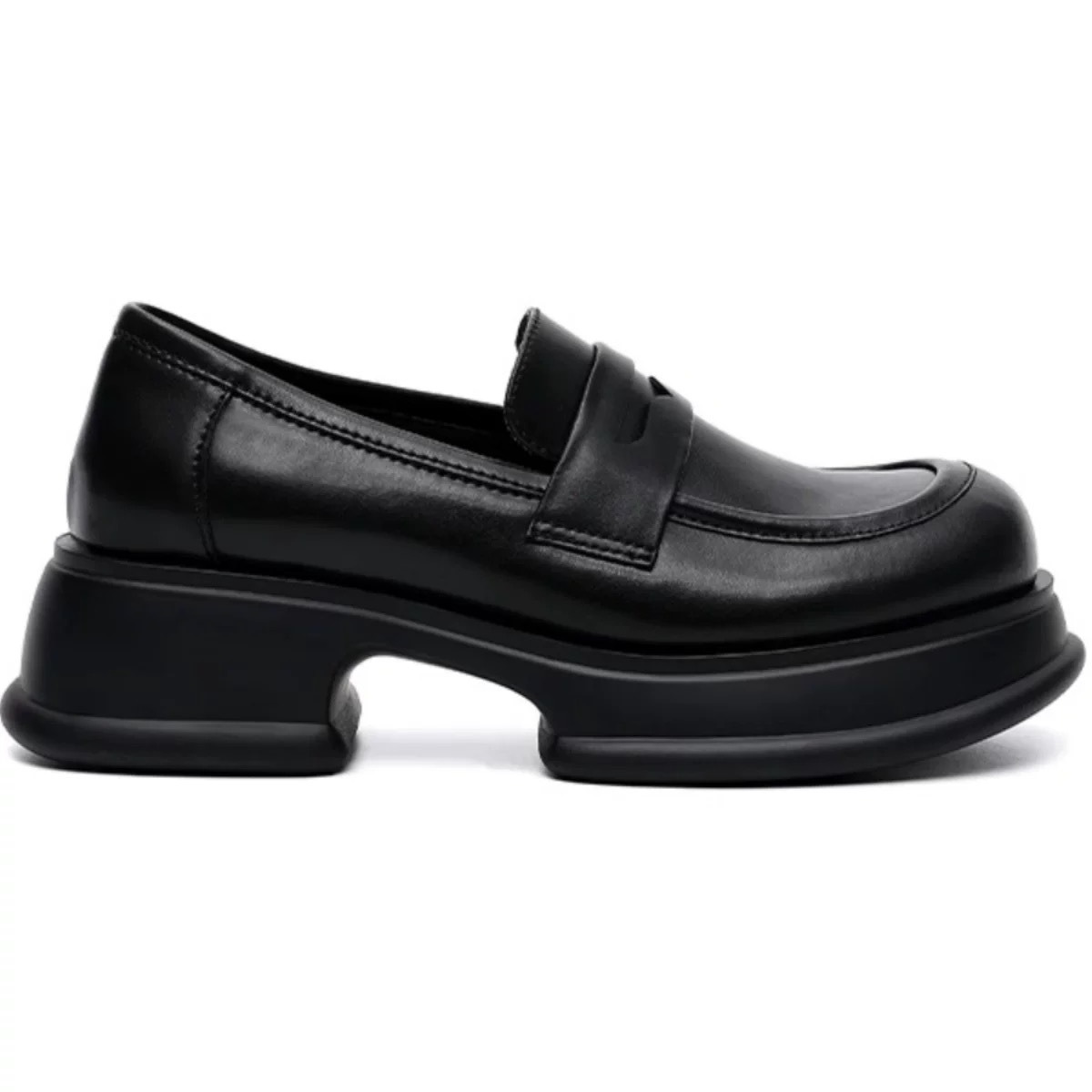 여성용 천연 가죽 두꺼운 밑창 작은 가죽 신발 2025년 신상 가을 슬립온 블랙 단화 여성용 영국 스타일 로퍼스토어 가기
