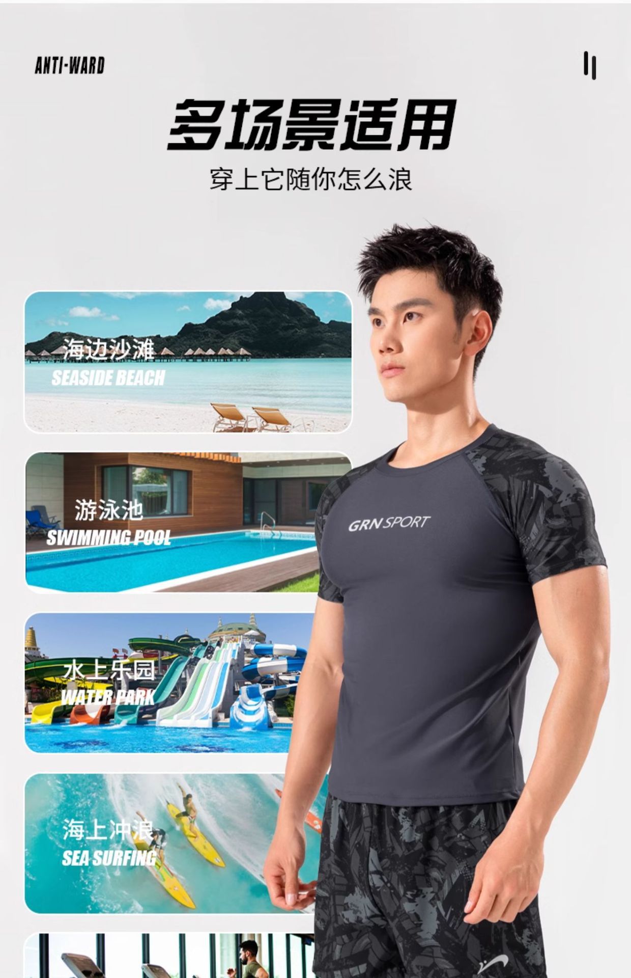 • 블랙앤그레이 투피스세트 [탑+수영팬츠]