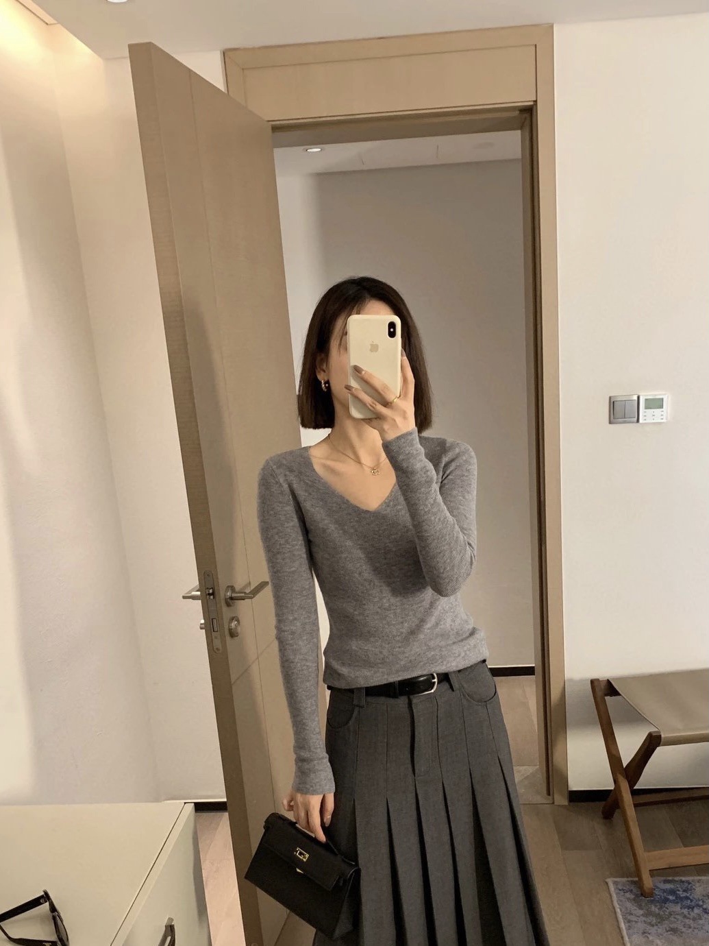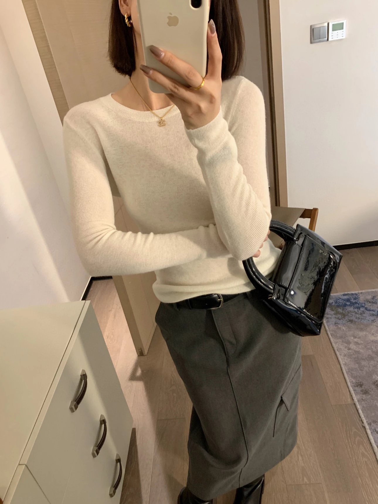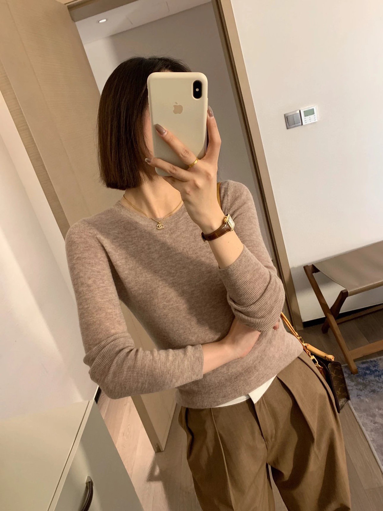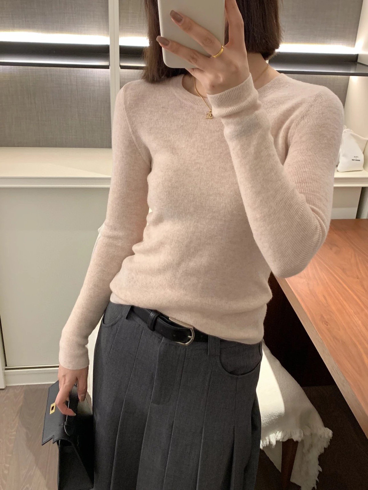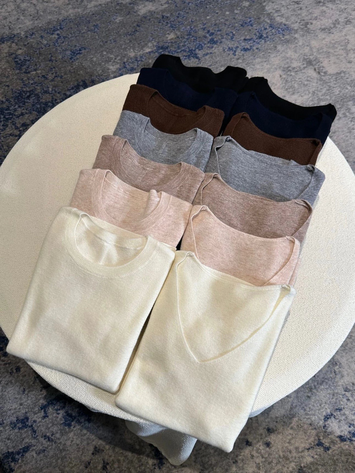 가을과 겨울 2024 새로운 컬러 독일 양쯔 원사 양털 클래식 슬림베이스 크루 넥/V 넥 울 스웨터 082