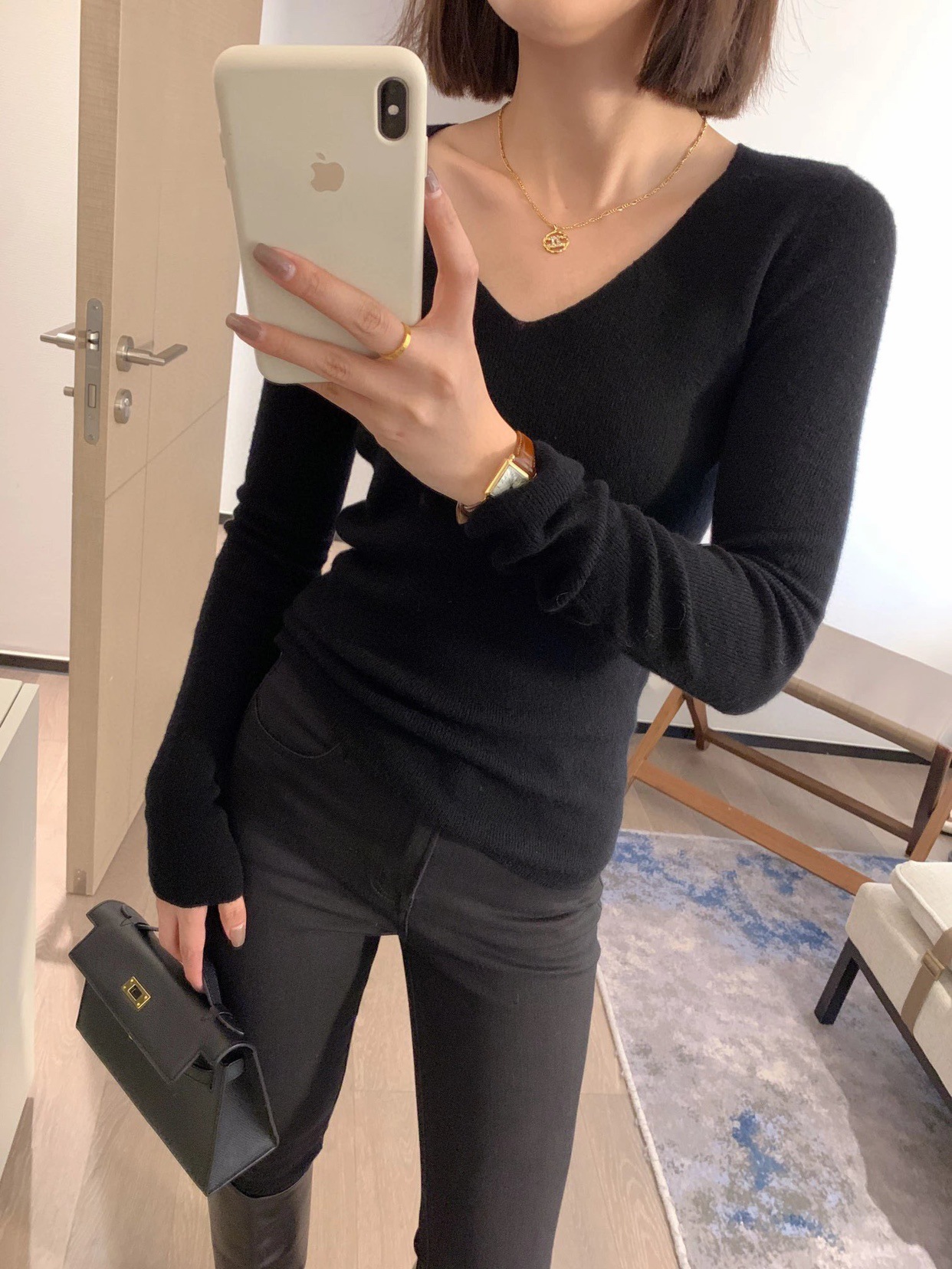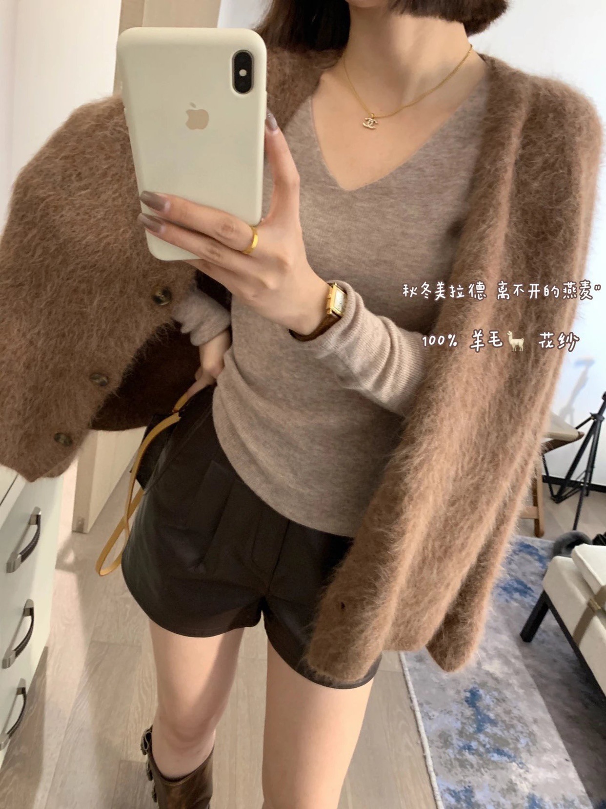 가을과 겨울 2024 새로운 컬러 독일 양쯔 원사 양털 클래식 슬림베이스 크루 넥/V 넥 울 스웨터 082스토어 가기
