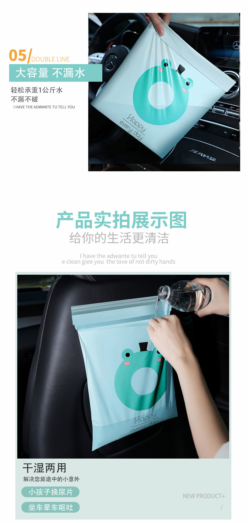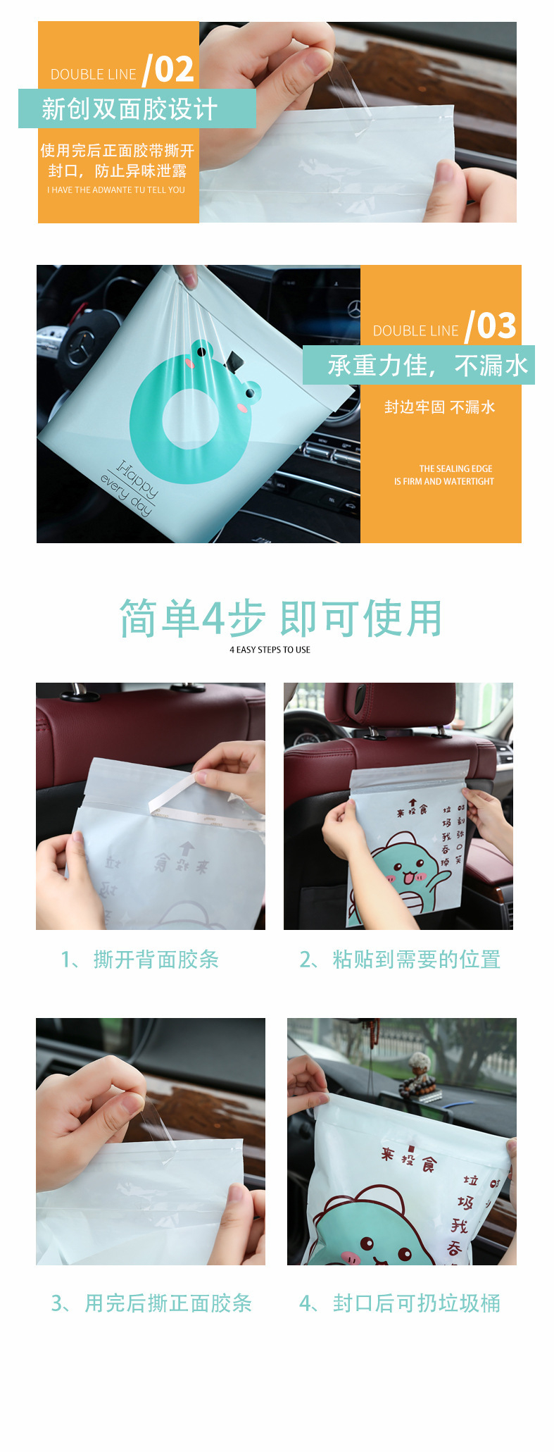 [두꺼운 자동차 쓰레기 봉투 자체 접착] 휴대용 자동차 스티커 바프 가방 만화 데스크탑 쓰레기 봉투