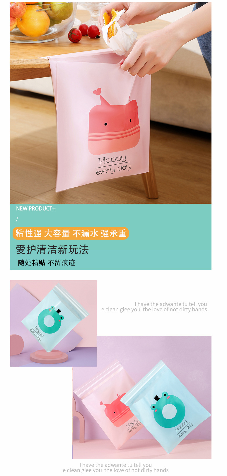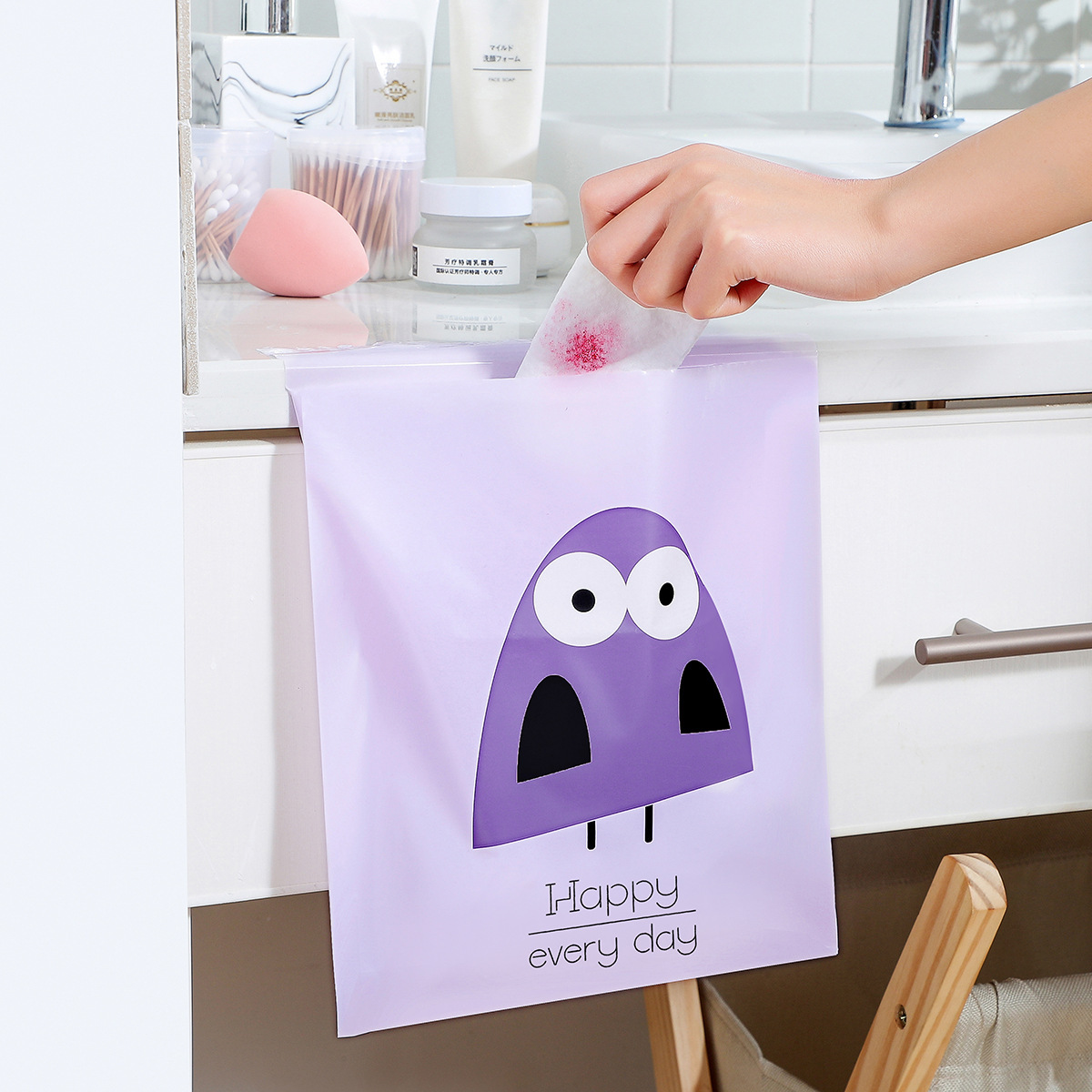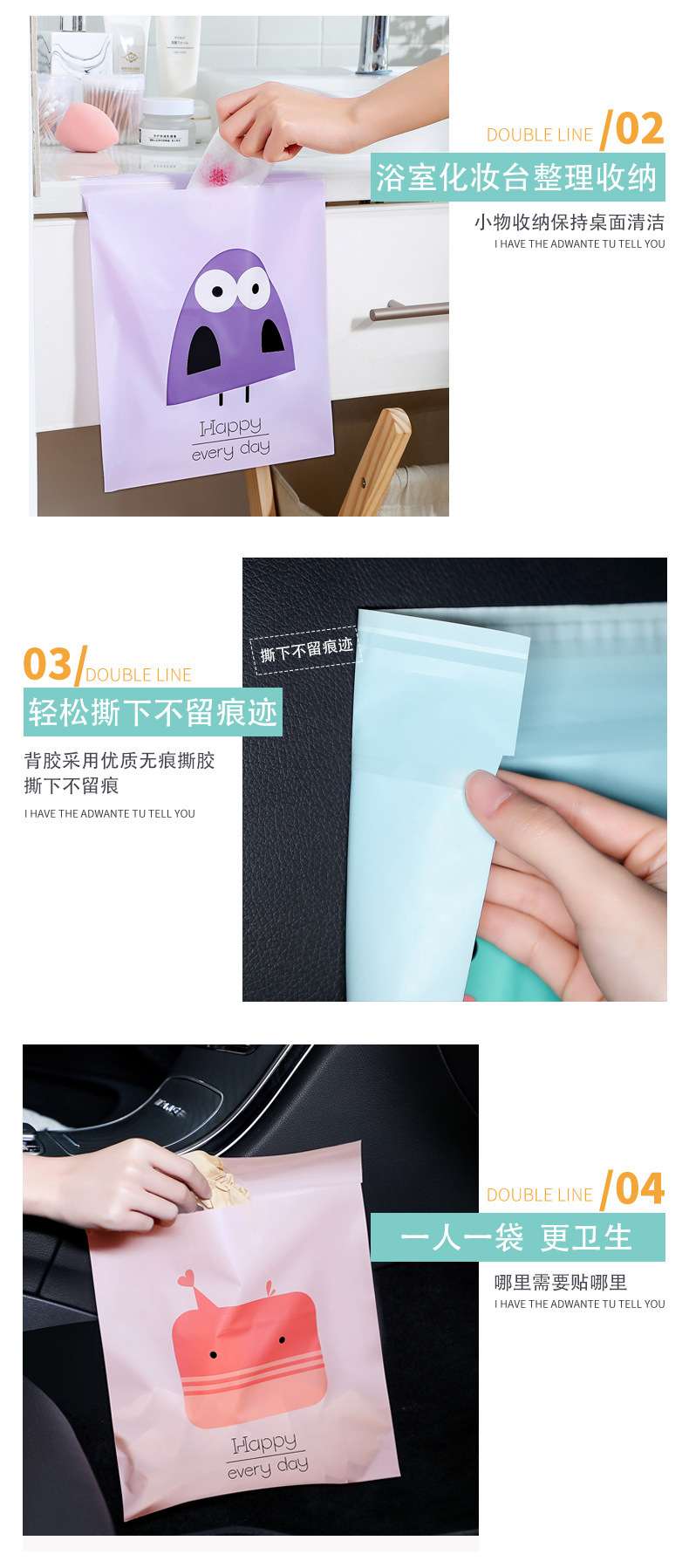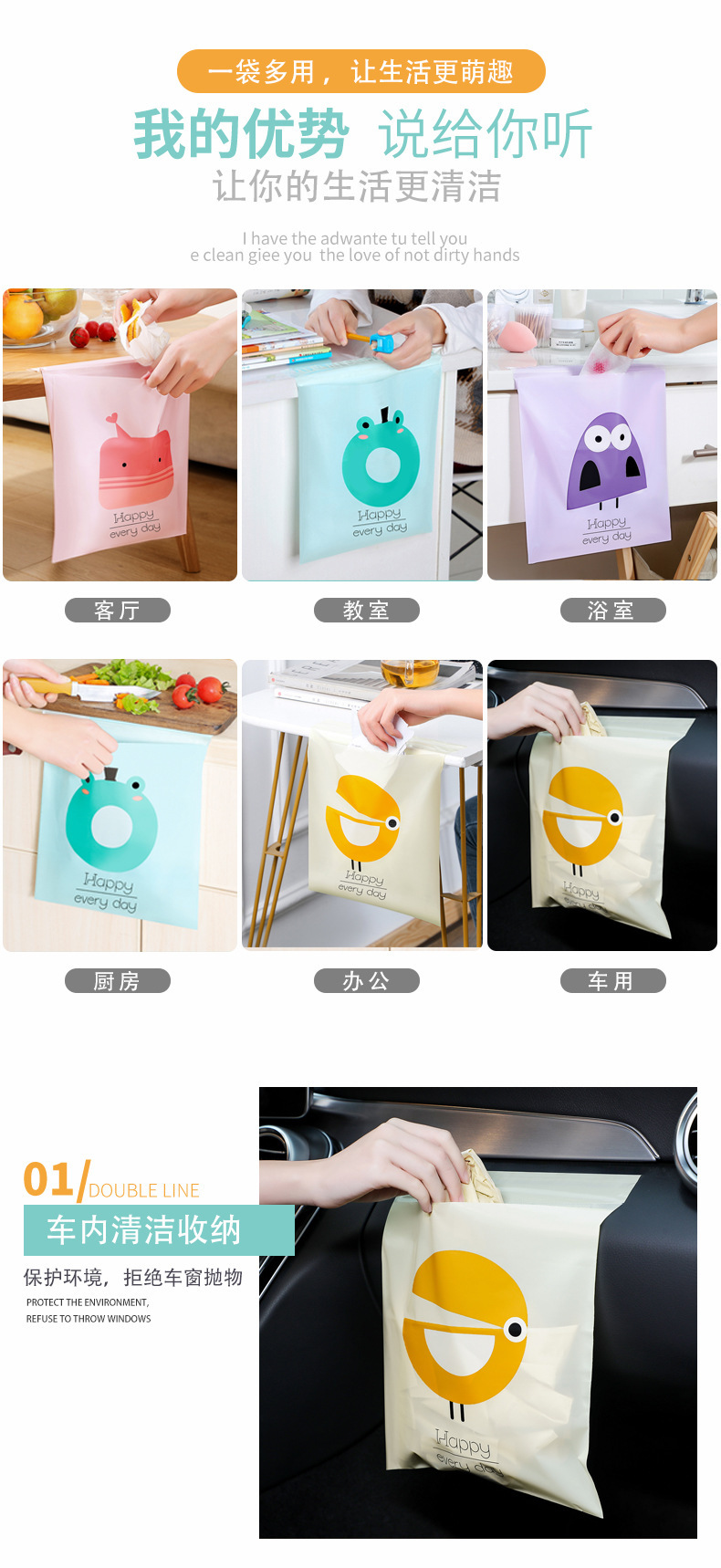 [두꺼운 자동차 쓰레기 봉투 자체 접착] 휴대용 자동차 스티커 바프 가방 만화 데스크탑 쓰레기 봉투스토어 가기