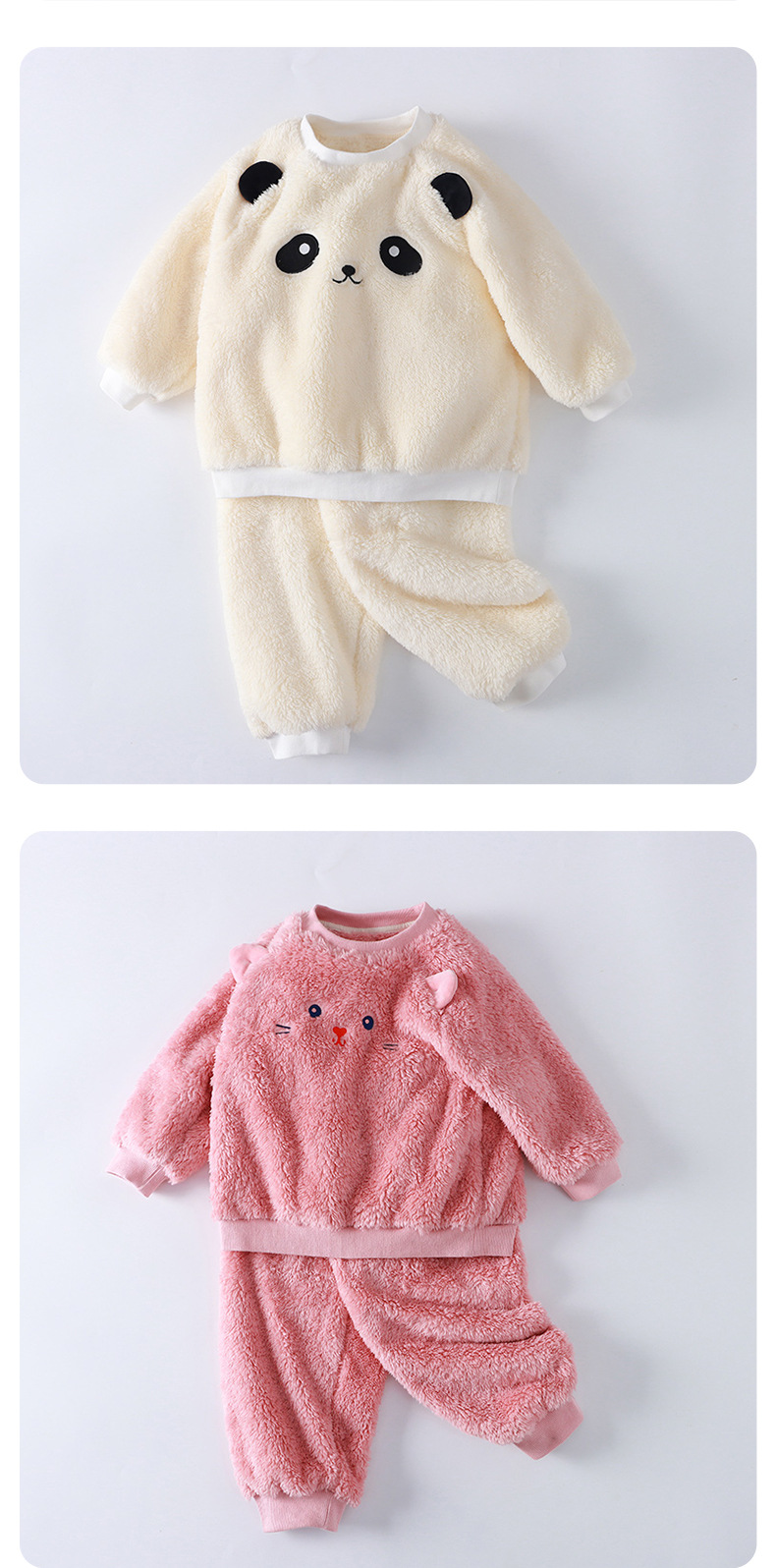어린이 플란넬 잠옷 세트 가을과 겨울 따뜻한 크루 넥 풀오버 스웨터 큰 어린이 홈 옷 아기 새로 두껍게