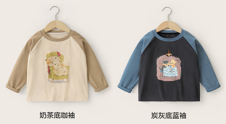 소년 항균 벨벳 긴팔 티셔츠 겨울 의류 가을, 겨울 새로운 아동 의류 아동용 베이비 셔츠 탑 겨울 트렌드스토어 가기