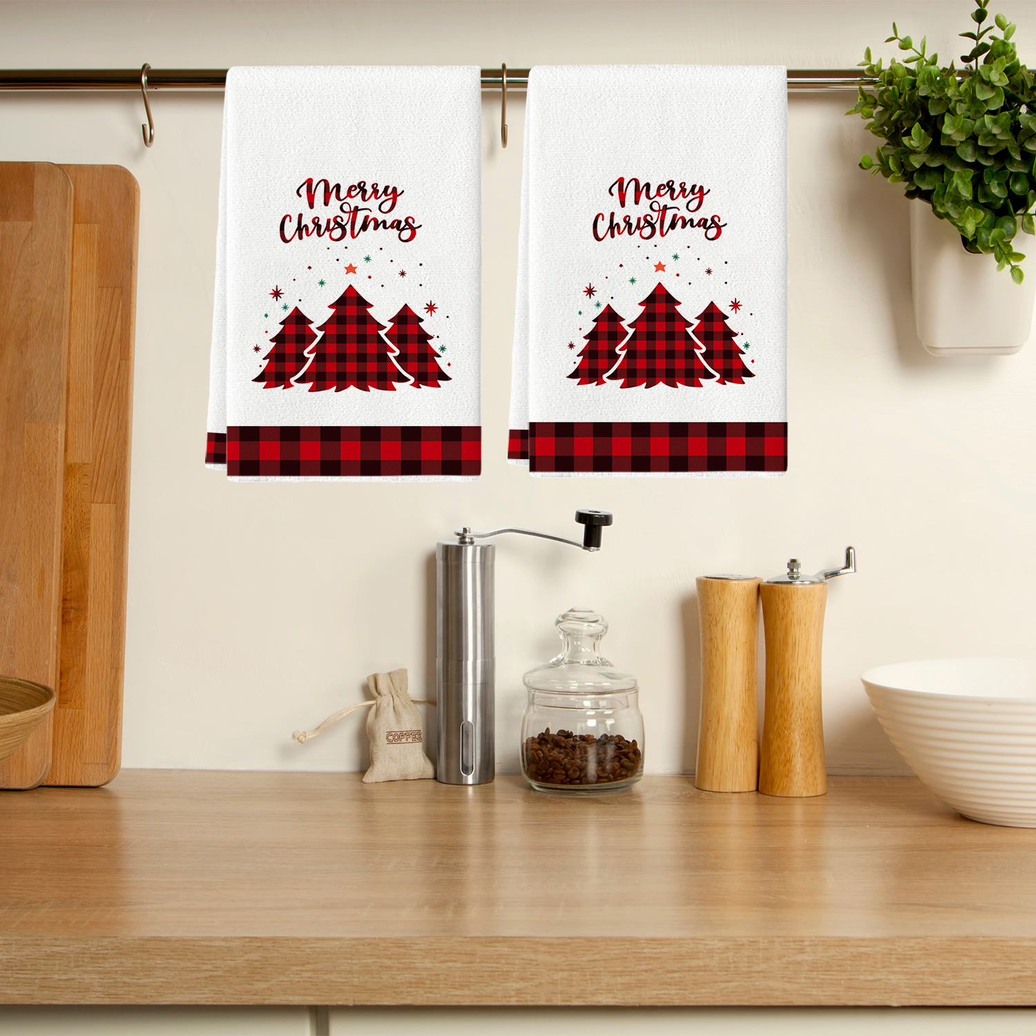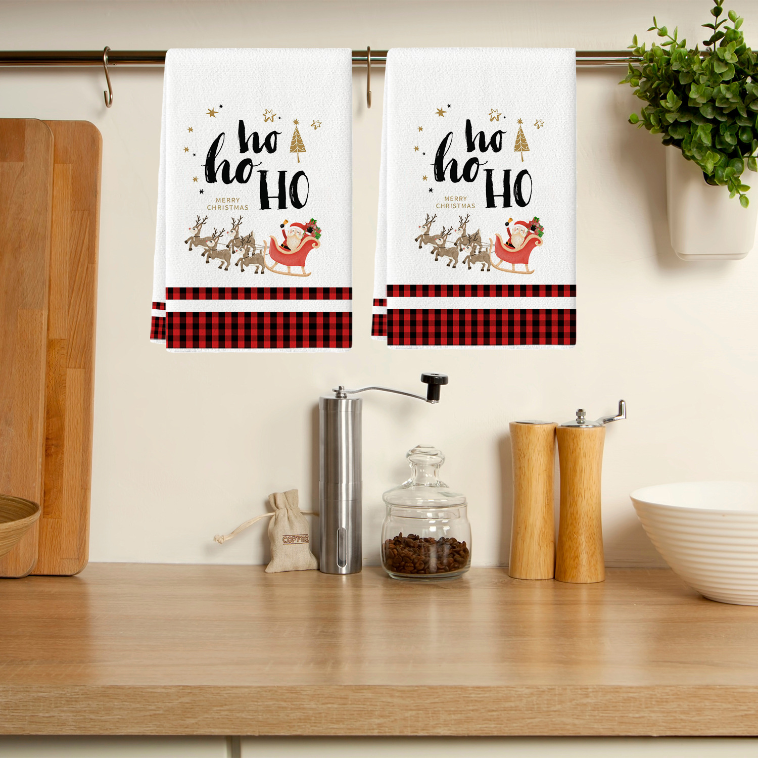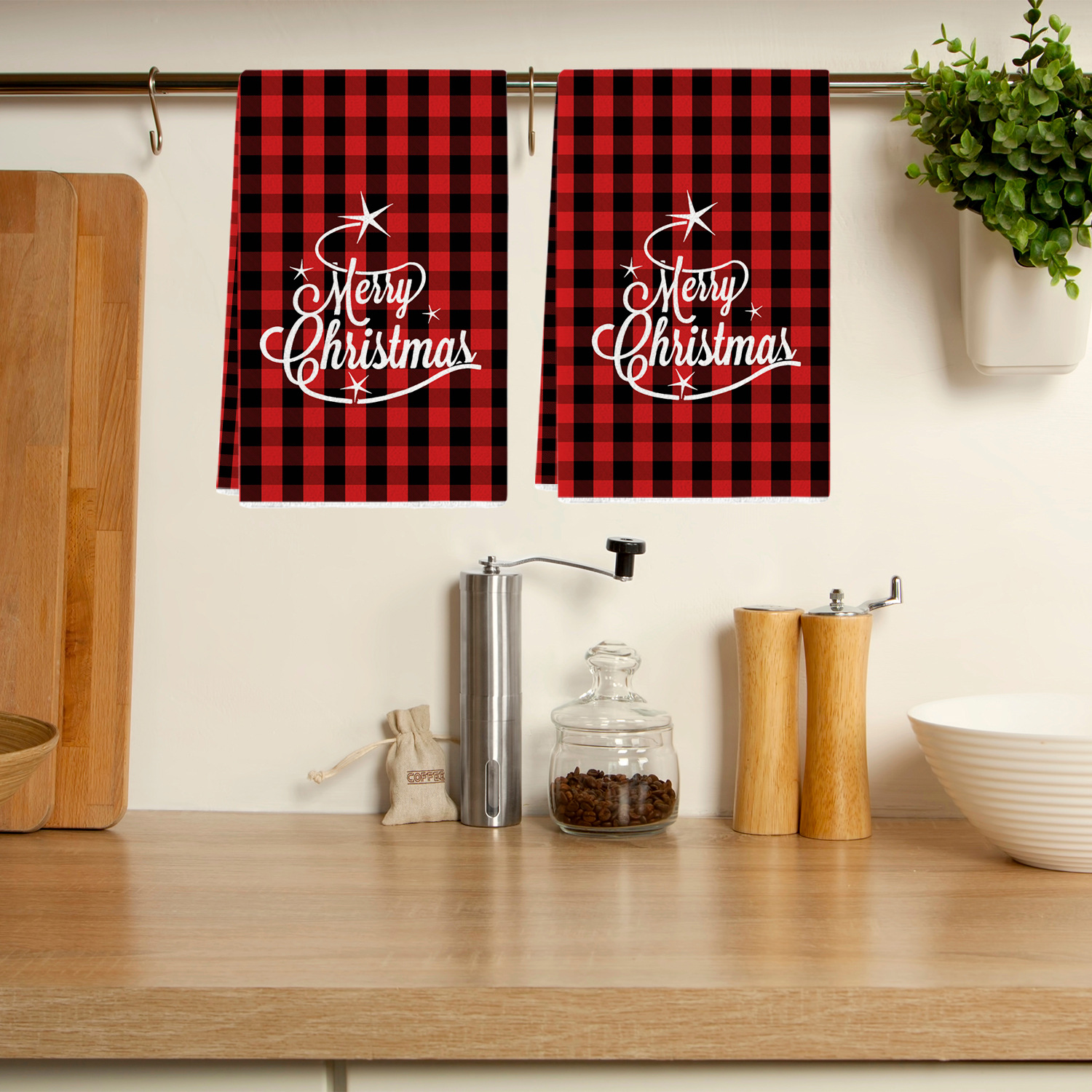 크리스마스 주방 수건 장식 레드 버팔로 격자 무늬 벨 접시 수건 주방 워시 핸드 타월스토어 가기