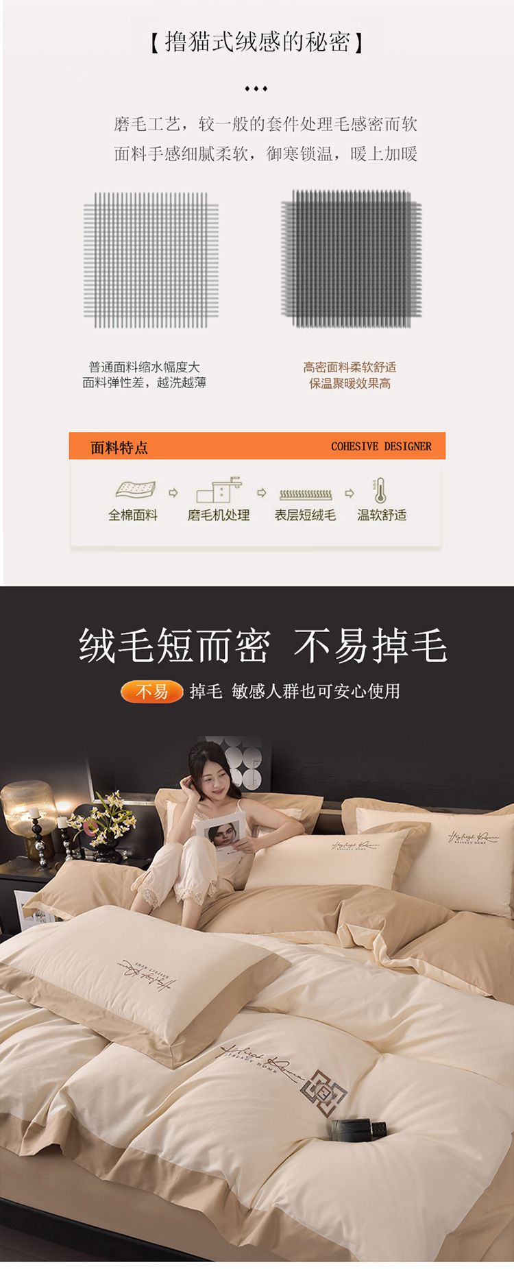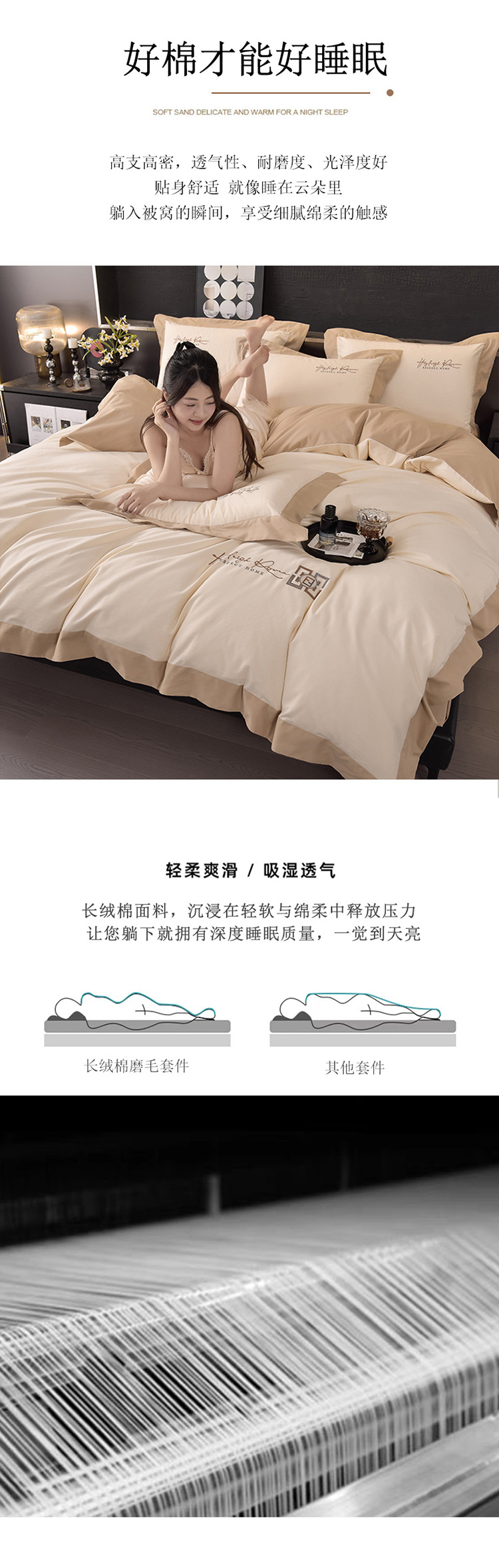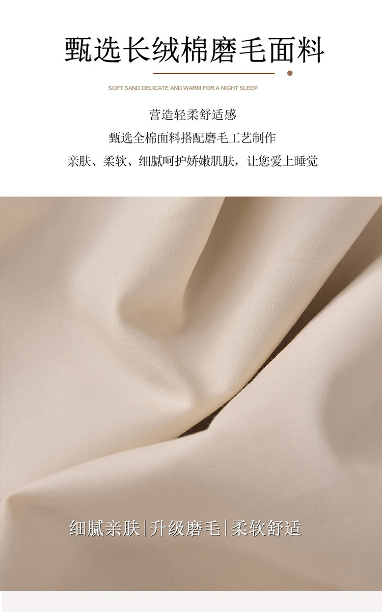 2024 년 새로운 100S 긴 스테이플 코튼 샌딩 4 피스 침대 모자 두꺼운 시트 가을과 겨울 침구 키트