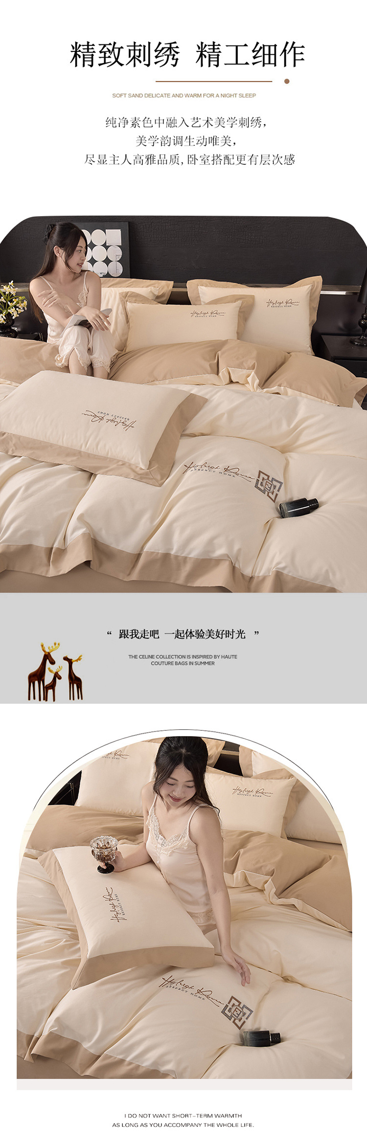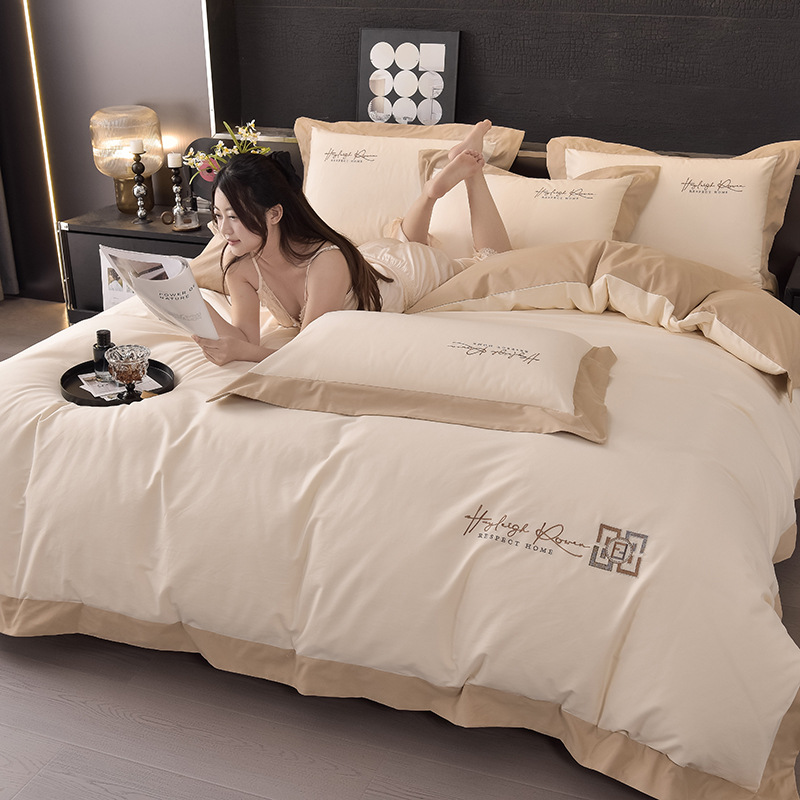 2024 년 새로운 100S 긴 스테이플 코튼 샌딩 4 피스 침대 모자 두꺼운 시트 가을과 겨울 침구 키트스토어 가기