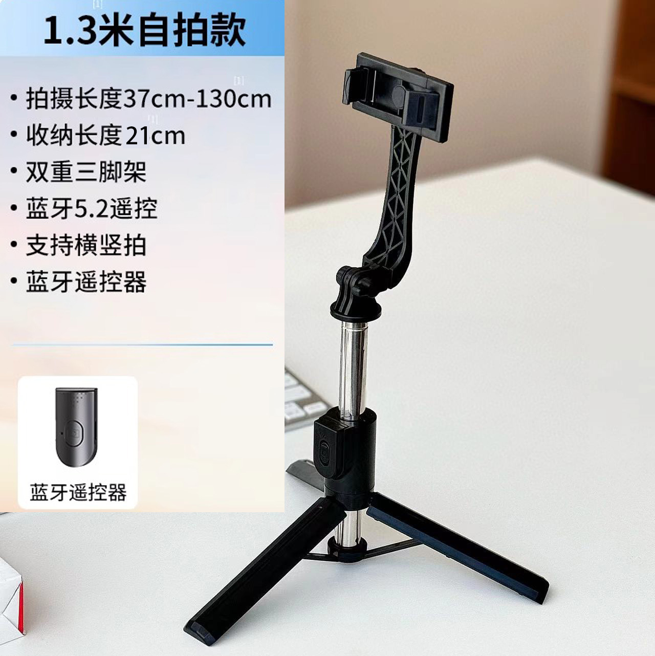 • 1.3m 블랙 [통합 접이식 + 이중 안정 삼각대 지지대] + 10m 블루투스 리모컨.
