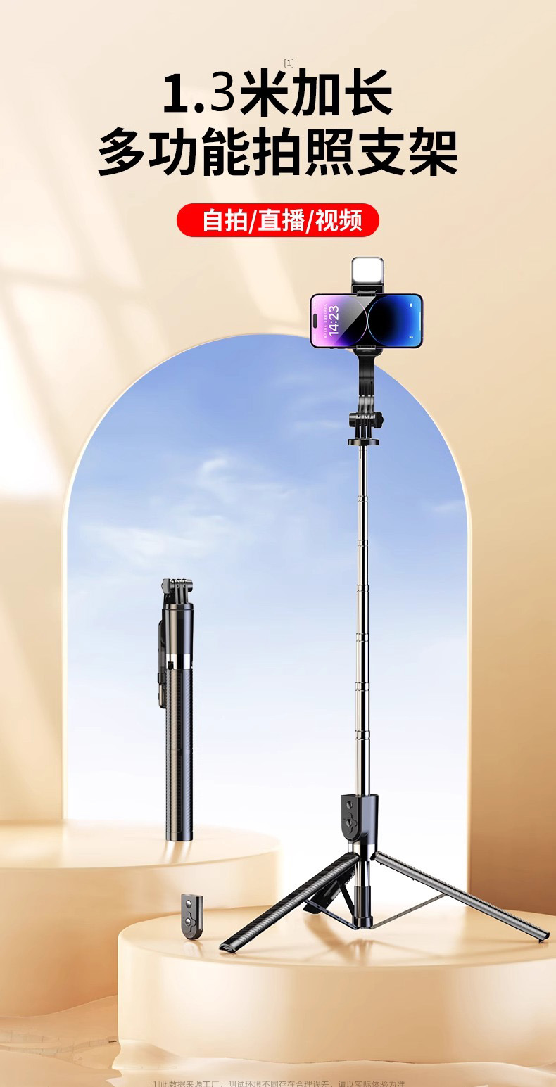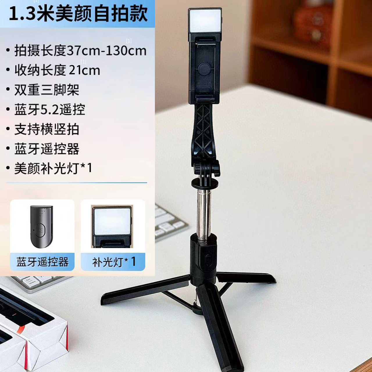 • 1.3m 블랙 더블 필 라이트 모델 [일체형 접이식 + 이중 안정 삼각대 지지대] + 10m 블루투스 리모콘.